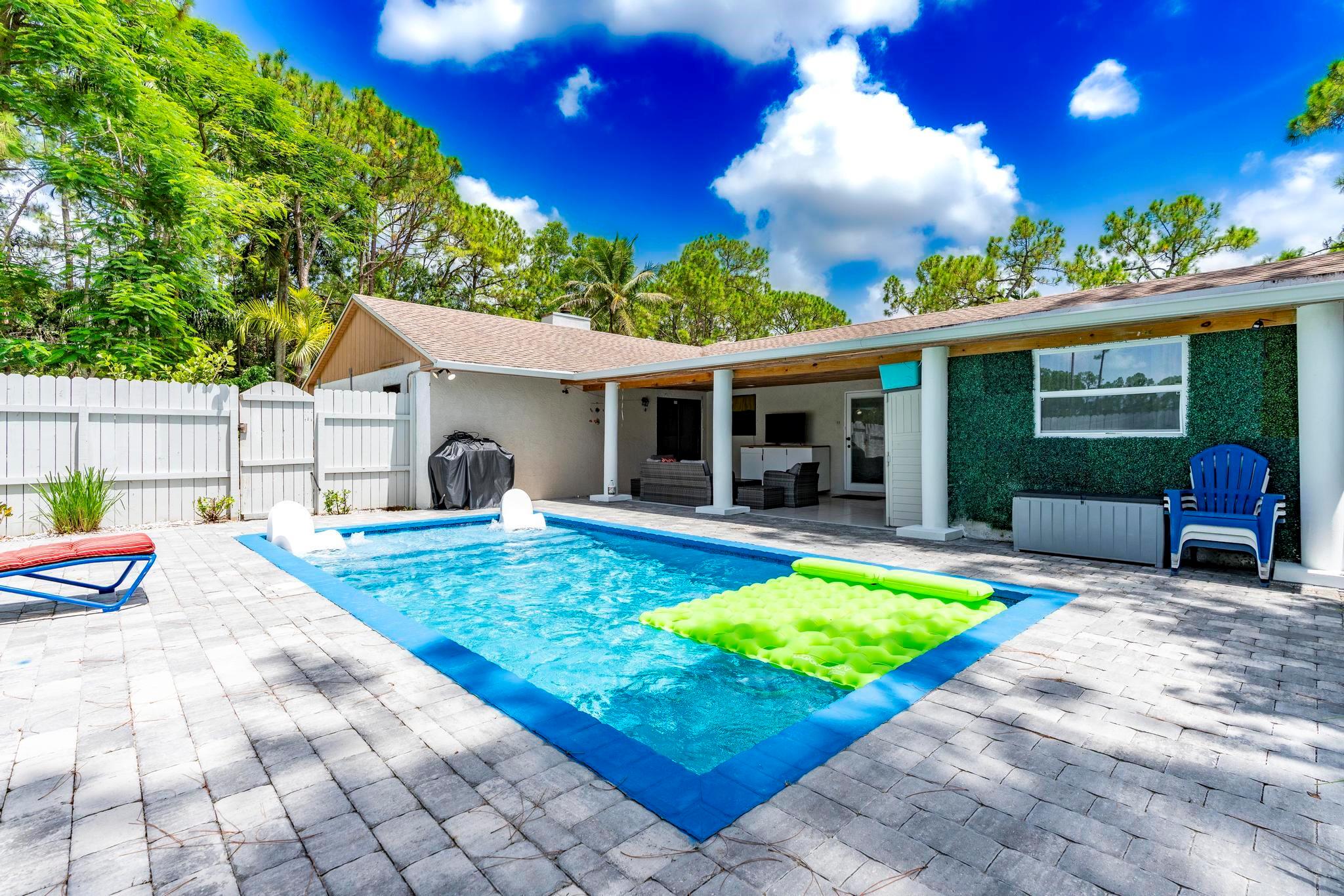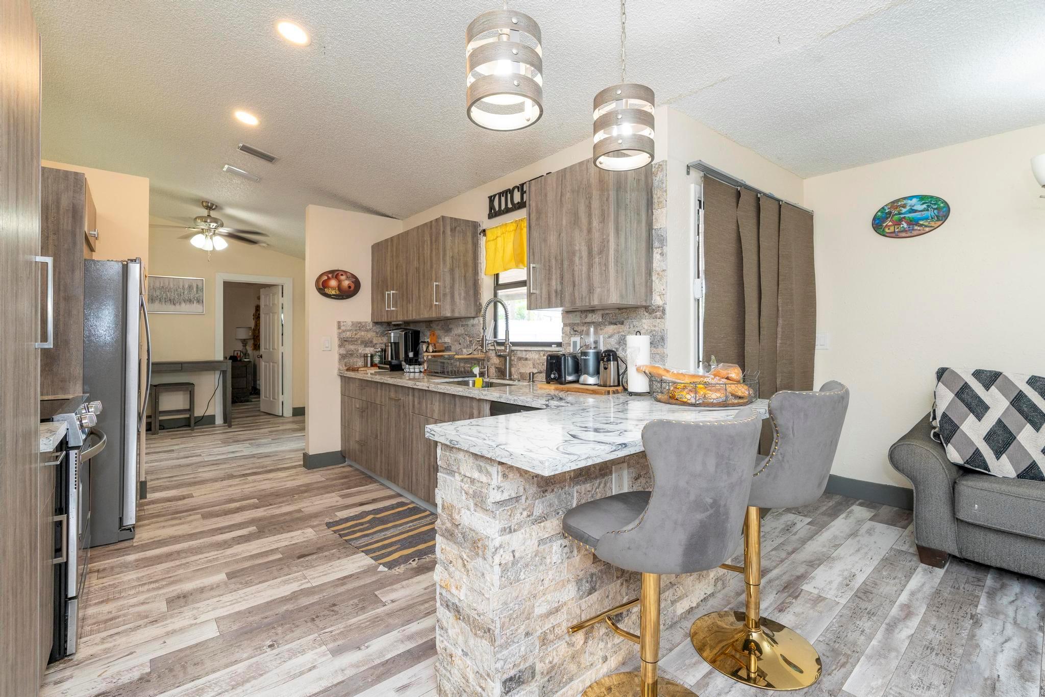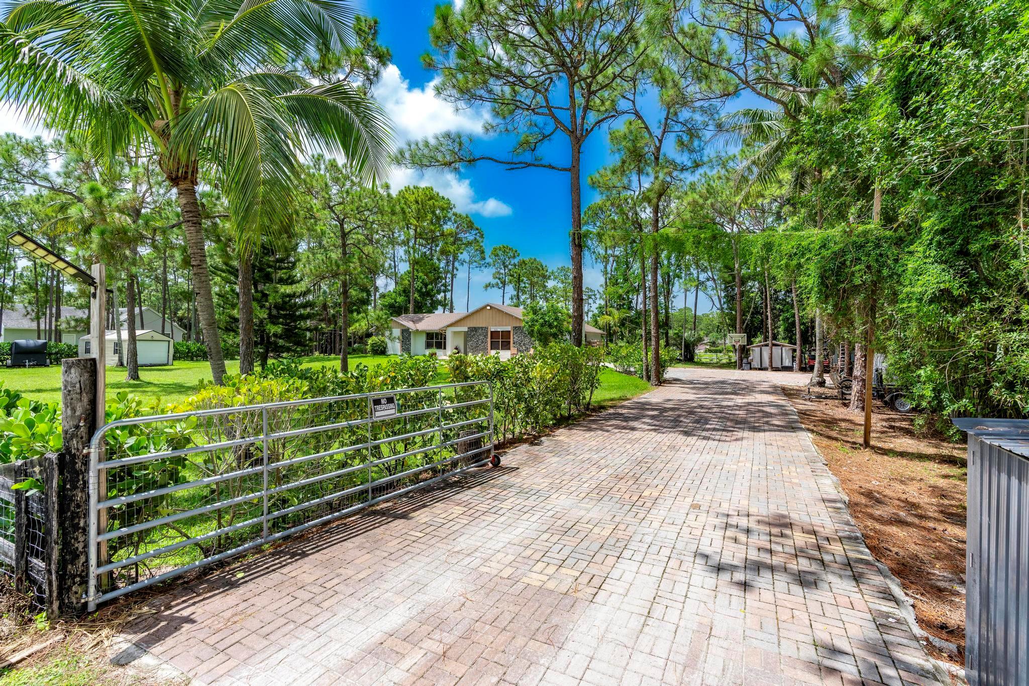 Stunning fully renovated 3BR/2BA + office single-family home on 1.3 gated acres with NO HOA! New heated saltwater pool with sundeck, covered patio, new pavers throughout property. New RO system and Roof under 4 years old! Interior upgrades include paint, new flooring, new cabinets, new SS appliances, and completely updated bathrooms. Has a working fireplace, metallic epoxy garage floors in the 2-car garage, and gated dual entrances. The expansive lot includes 3 sheds, a dog kennel, chicken coop, and a brand-new well. Plenty of room to live, work, and play--move-in ready! This property offers the perfect blend of privacy, modern finishes, and functionality, this home checks all the boxes. Rare opportunity to own a fully upgraded home with land and freedom, bring your chickens and toys!