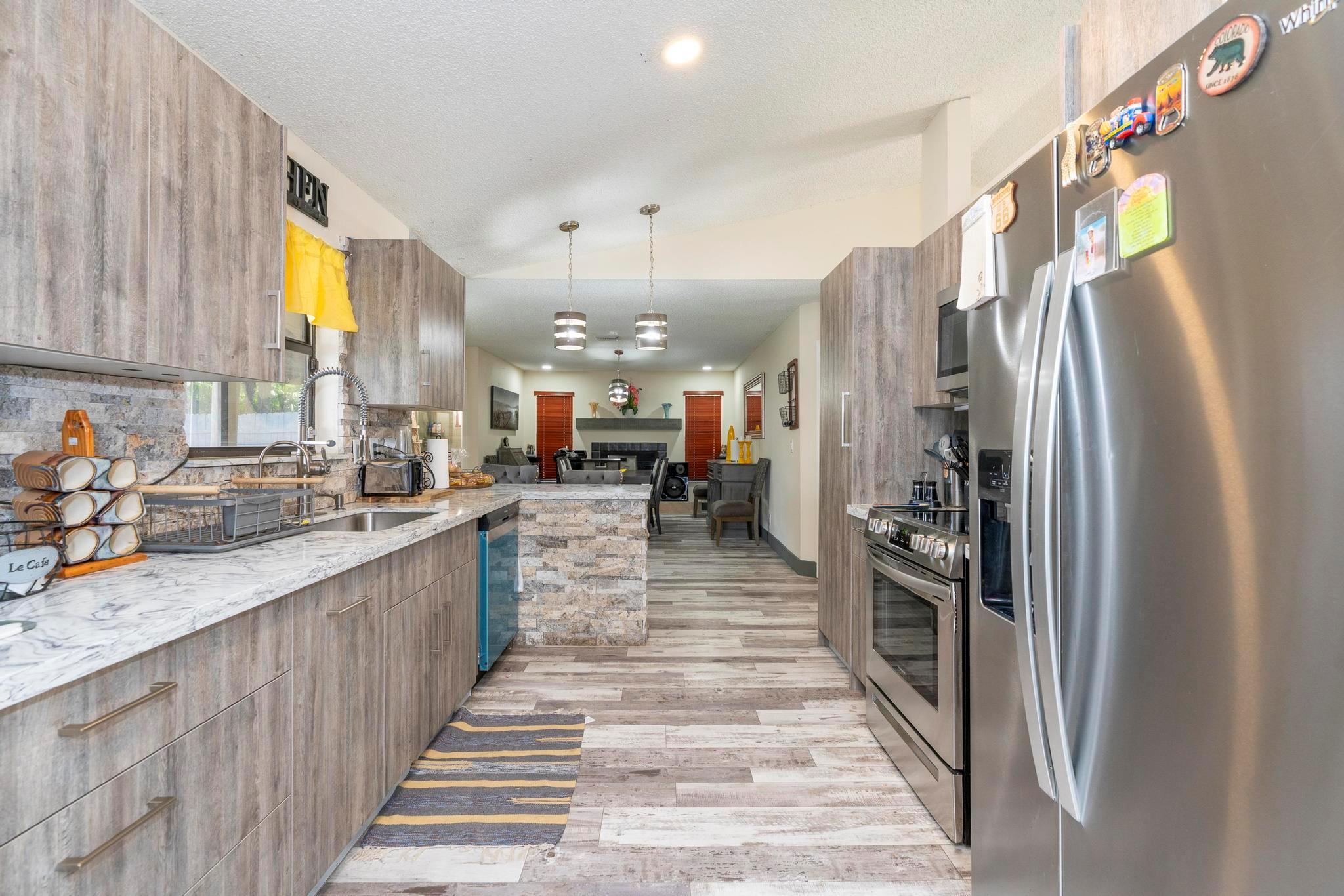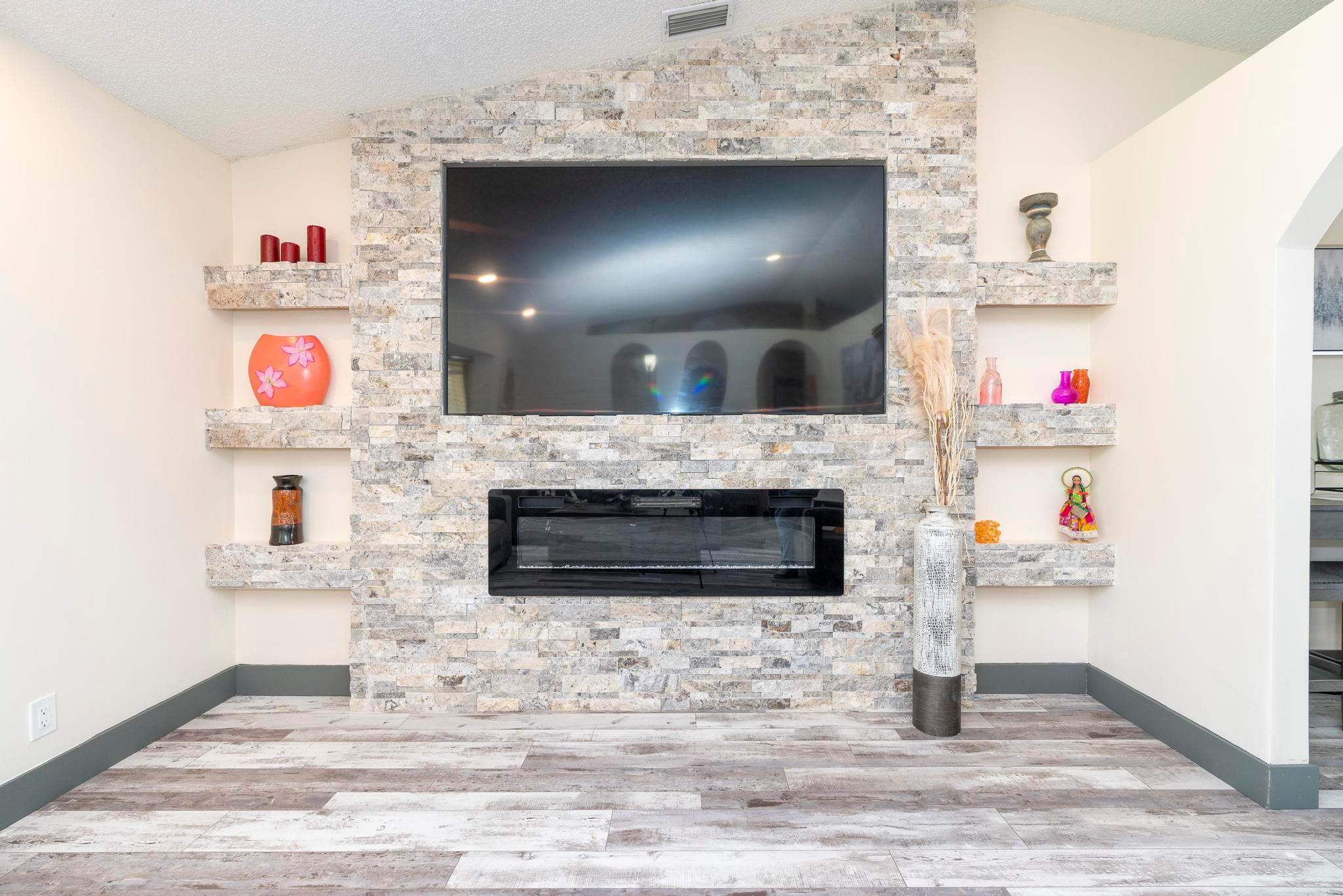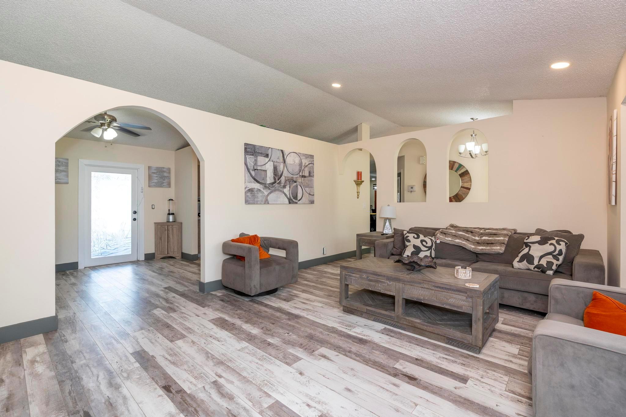 Stunning fully renovated 3BR/2BA + office single-family home on 1.3 gated acres with NO HOA! New heated saltwater pool with sundeck, covered patio, new pavers throughout property. New RO system and Roof under 4 years old! Interior upgrades include paint, new flooring, new cabinets, new SS appliances, and completely updated bathrooms. Has a working fireplace, metallic epoxy garage floors in the 2-car garage, and gated dual entrances. The expansive lot includes 3 sheds, a dog kennel, chicken coop, and a brand-new well. Plenty of room to live, work, and play--move-in ready! This property offers the perfect blend of privacy, modern finishes, and functionality, this home checks all the boxes. Rare opportunity to own a fully upgraded home with land and freedom, bring your chickens and toys!