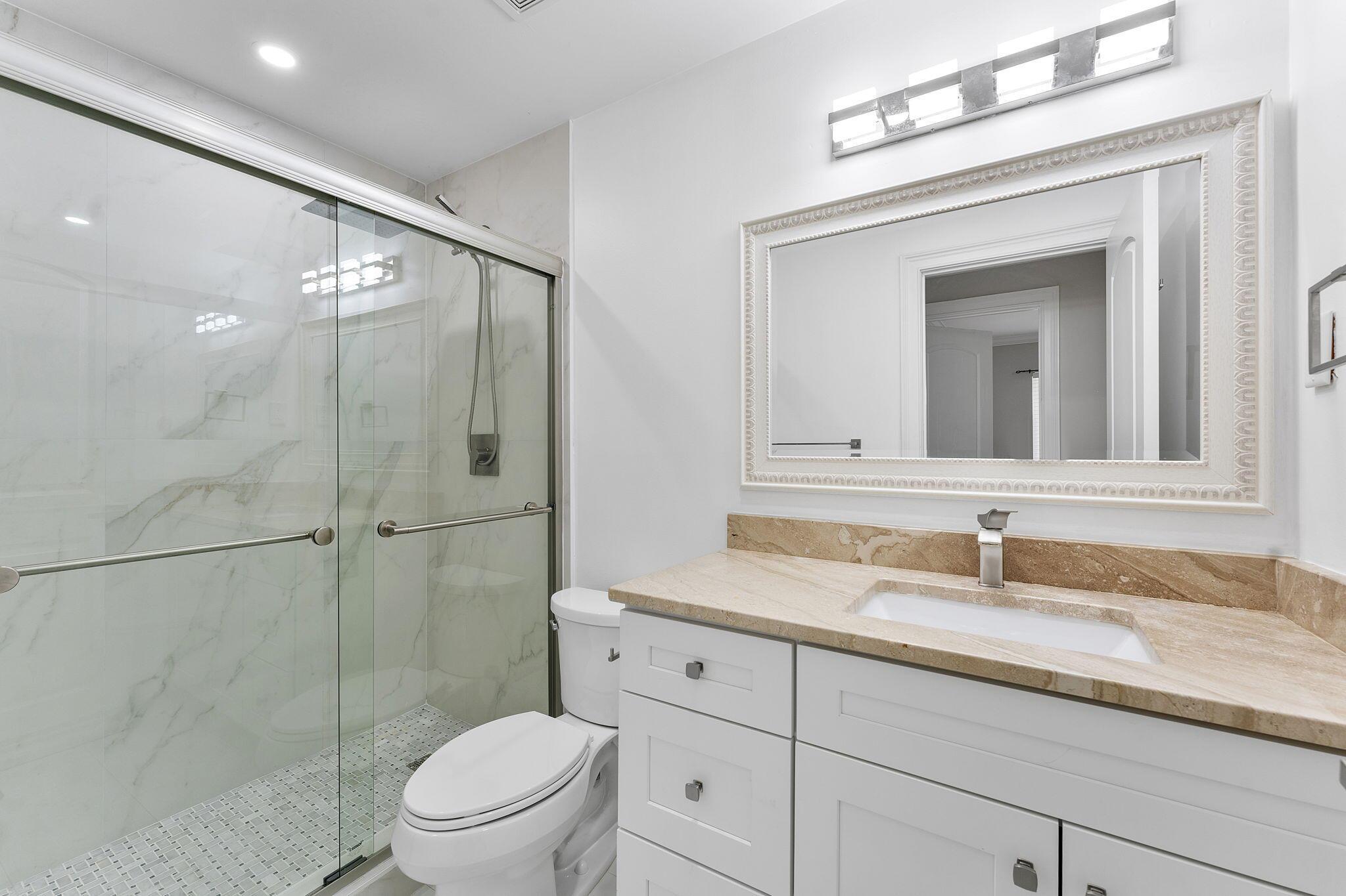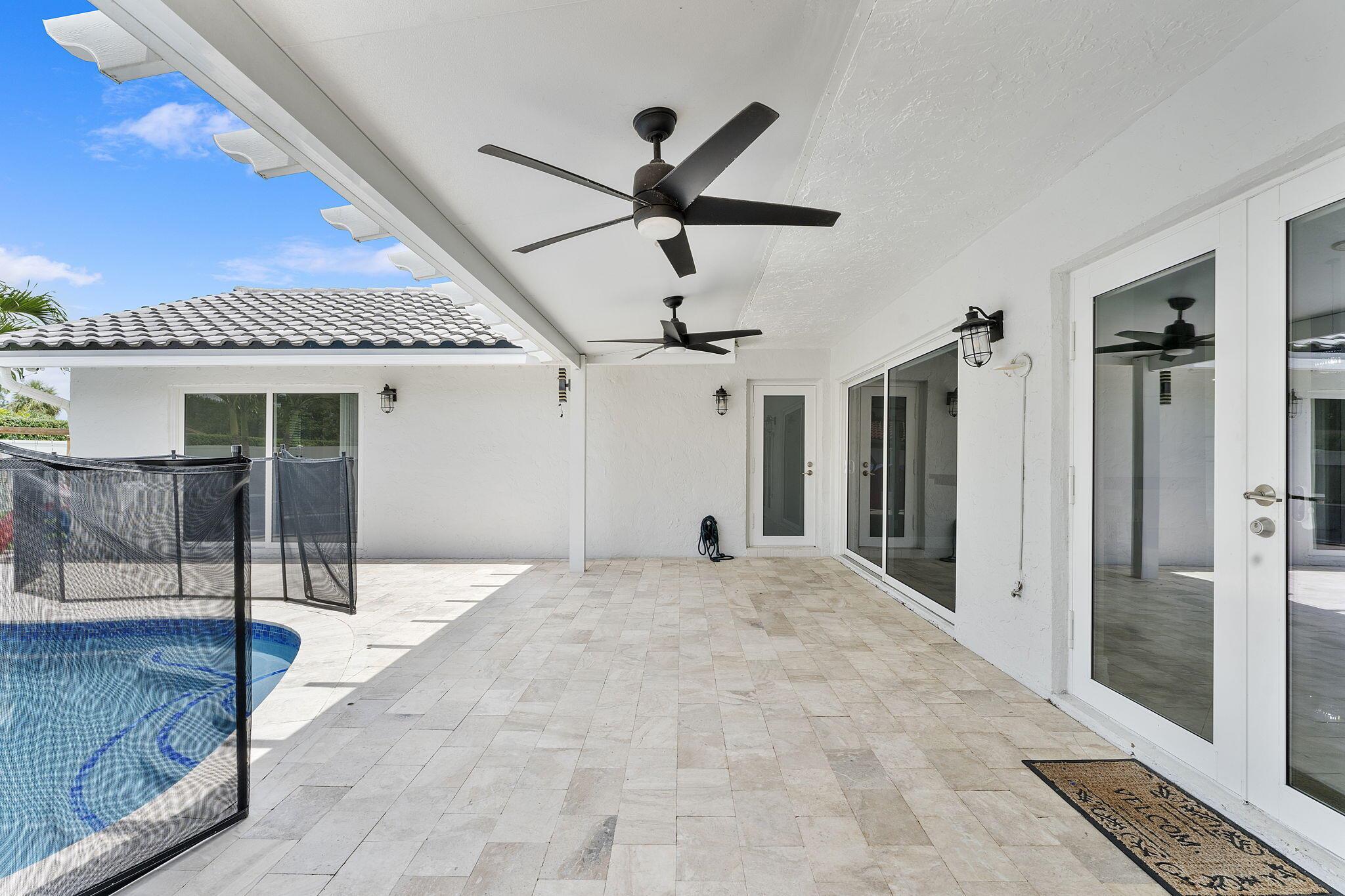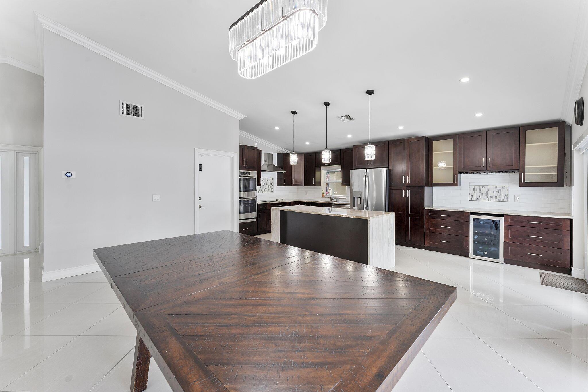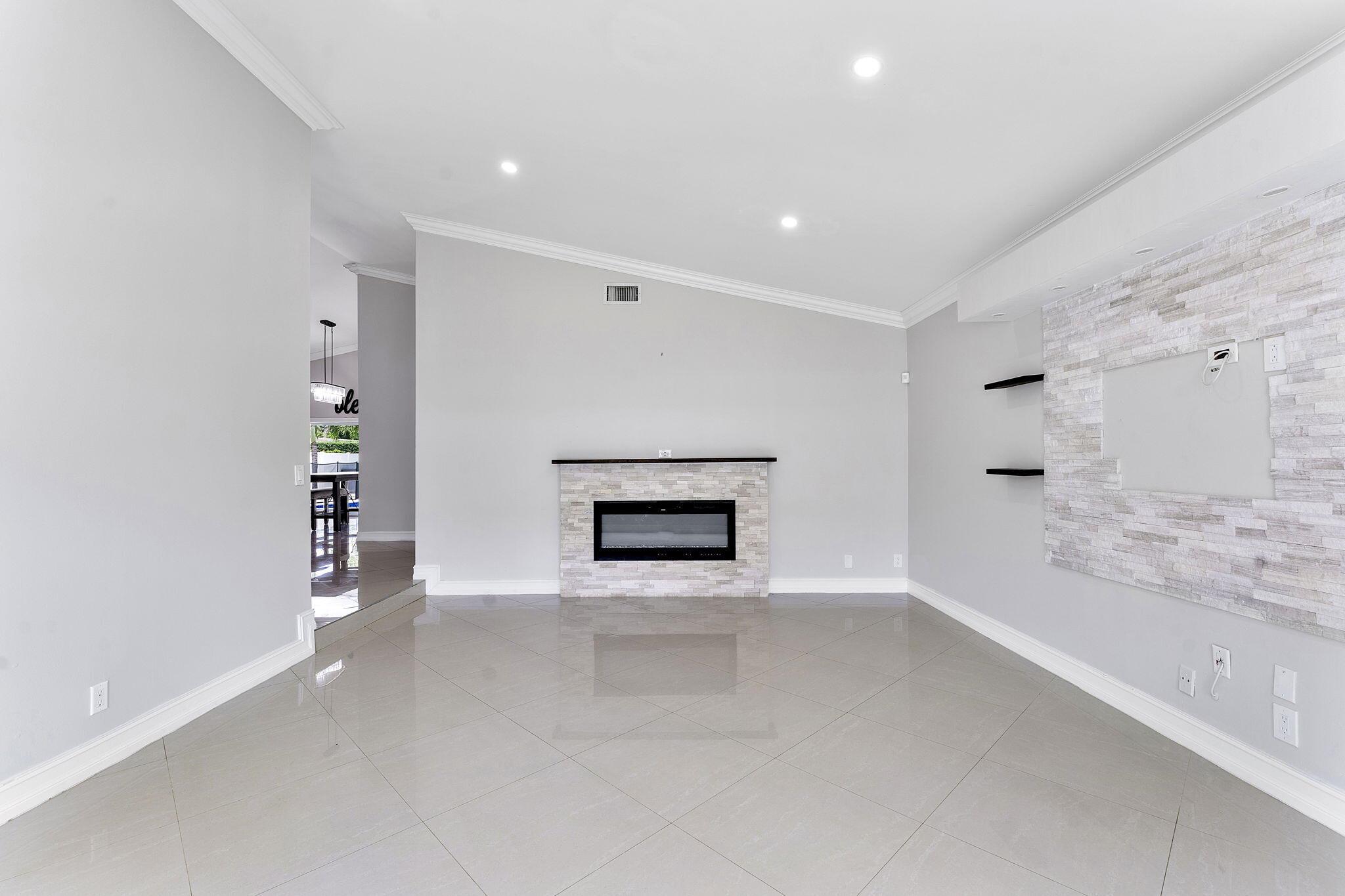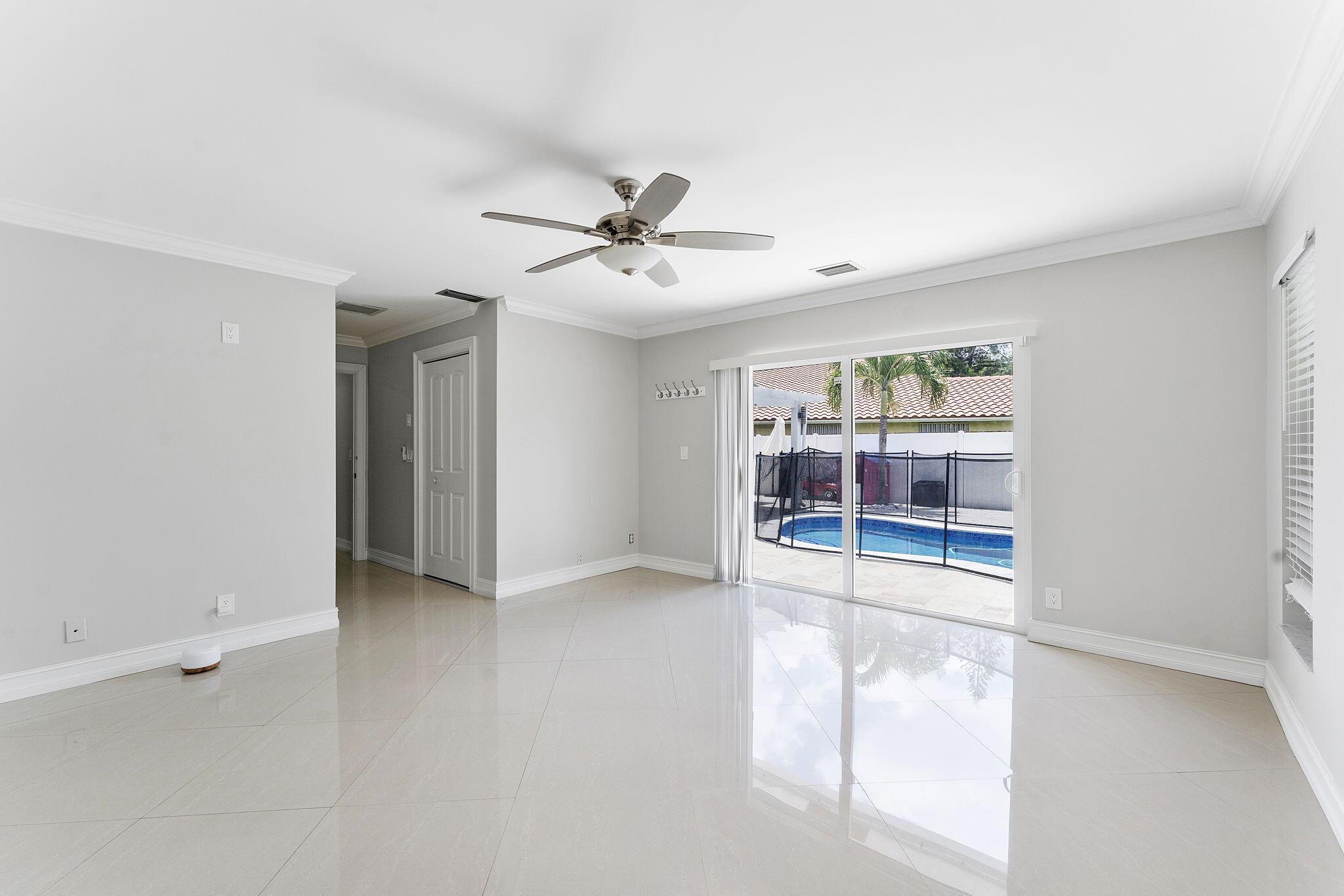 Welcome to this impressive 4-bedroom, 2.5-bathroom pool home with a 2-car garage, perfectly situated on an ultra-private lot just steps from top-rated Del Prado Elementary. Completely renovated from top to bottom with no expense spared, this stunning residence offers refined elegance and modern comfort in the heart of Central Boca Raton. Discover an open and airy layout with soaring vaulted ceilings and sleek porcelain tile flooring throughout. The spacious, chef-inspired kitchen is a true showstopper featuring quartz countertops with a waterfall edge, soft-close cabinetry, and premium stainless steel appliances. Enjoy indoor-outdoor living with a screened patio that opens to a lushly landscaped backyard oasis, complete with a sparkling tropical pool and fully fenced yard