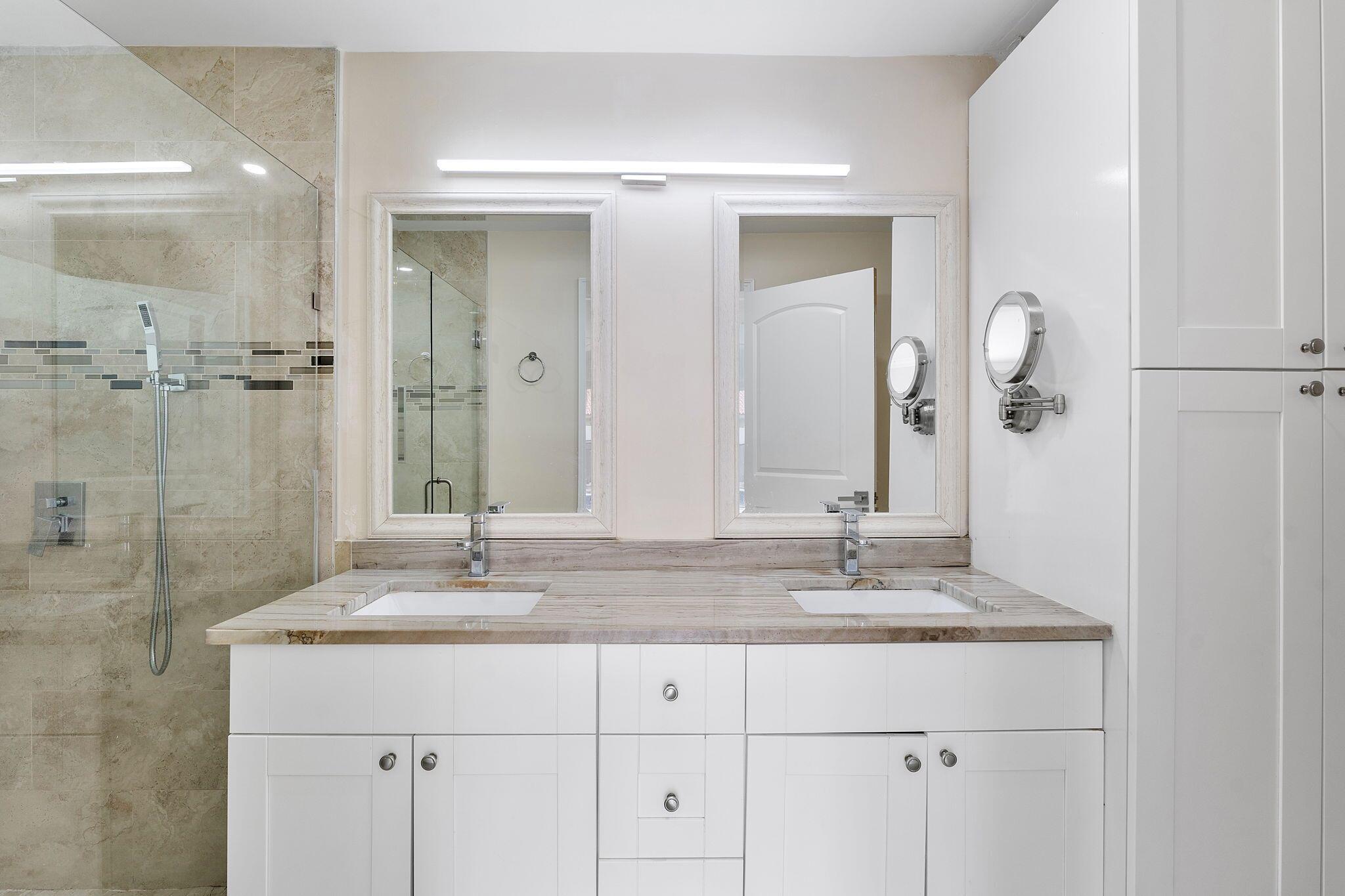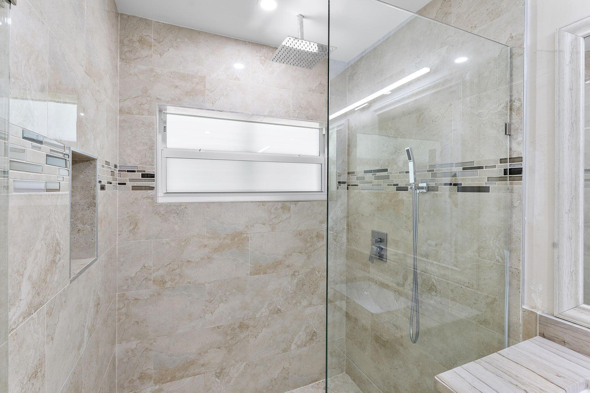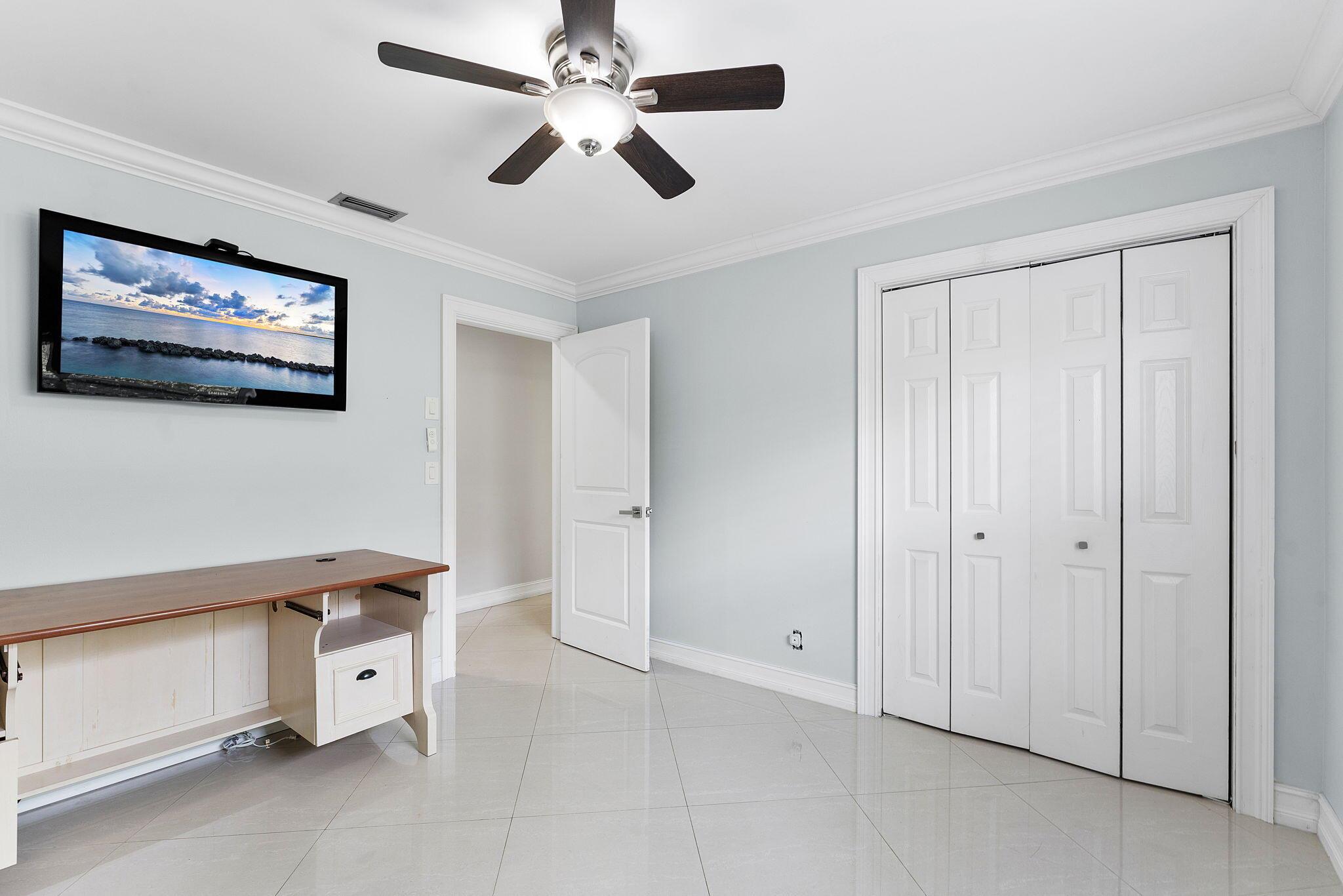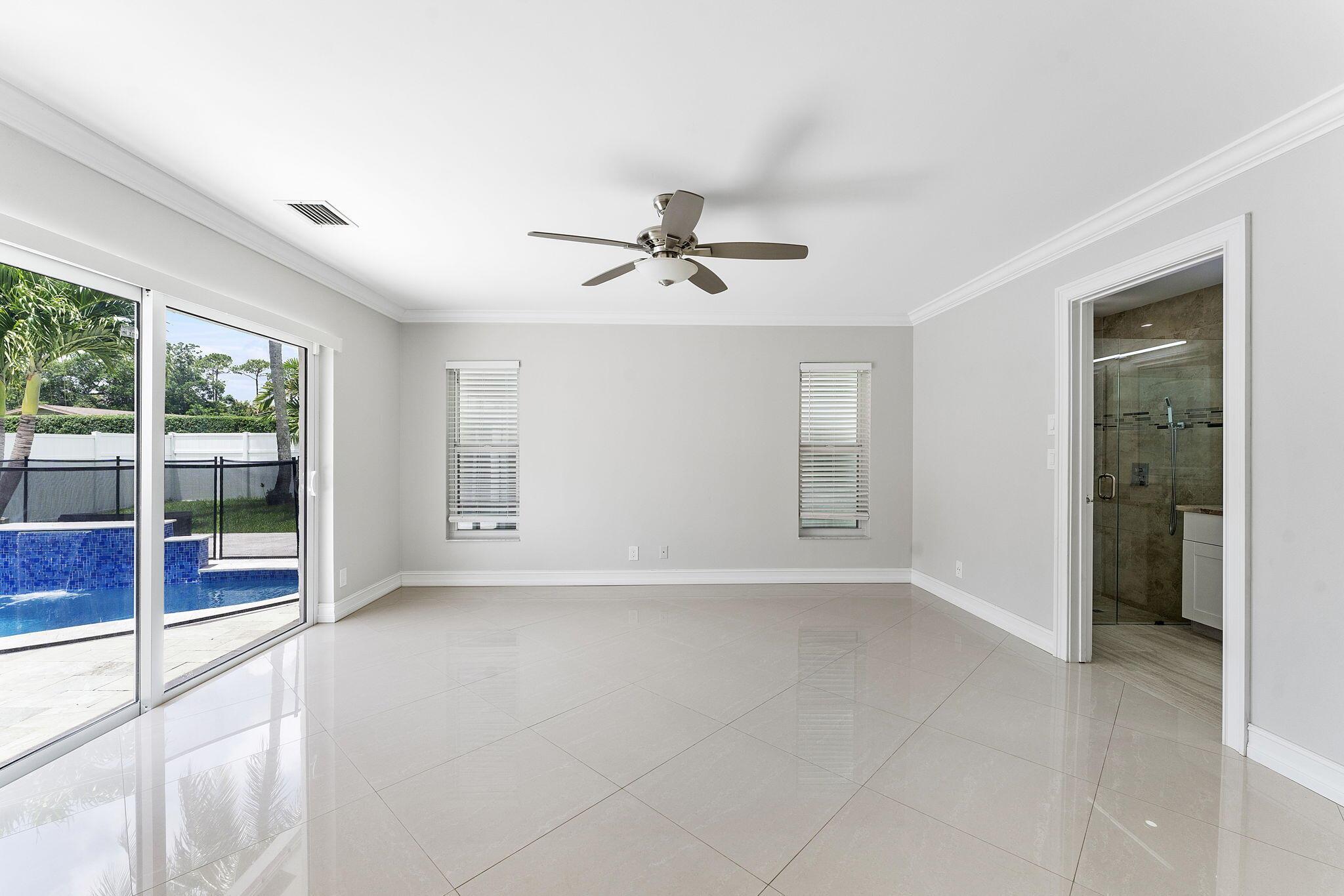 Welcome to this impressive 4-bedroom, 2.5-bathroom pool home with a 2-car garage, perfectly situated on an ultra-private lot just steps from top-rated Del Prado Elementary. Completely renovated from top to bottom with no expense spared, this stunning residence offers refined elegance and modern comfort in the heart of Central Boca Raton. Discover an open and airy layout with soaring vaulted ceilings and sleek porcelain tile flooring throughout. The spacious, chef-inspired kitchen is a true showstopper featuring quartz countertops with a waterfall edge, soft-close cabinetry, and premium stainless steel appliances. Enjoy indoor-outdoor living with a screened patio that opens to a lushly landscaped backyard oasis, complete with a sparkling tropical pool and fully fenced yard