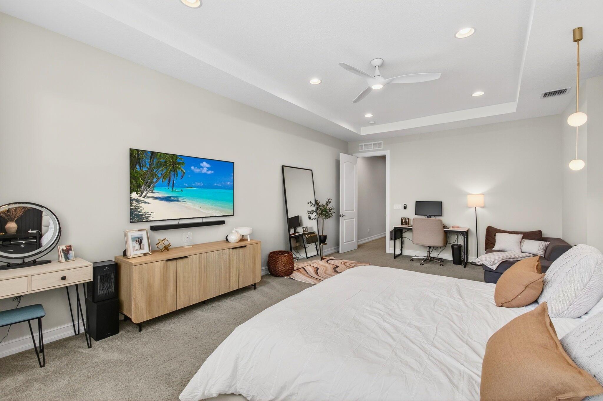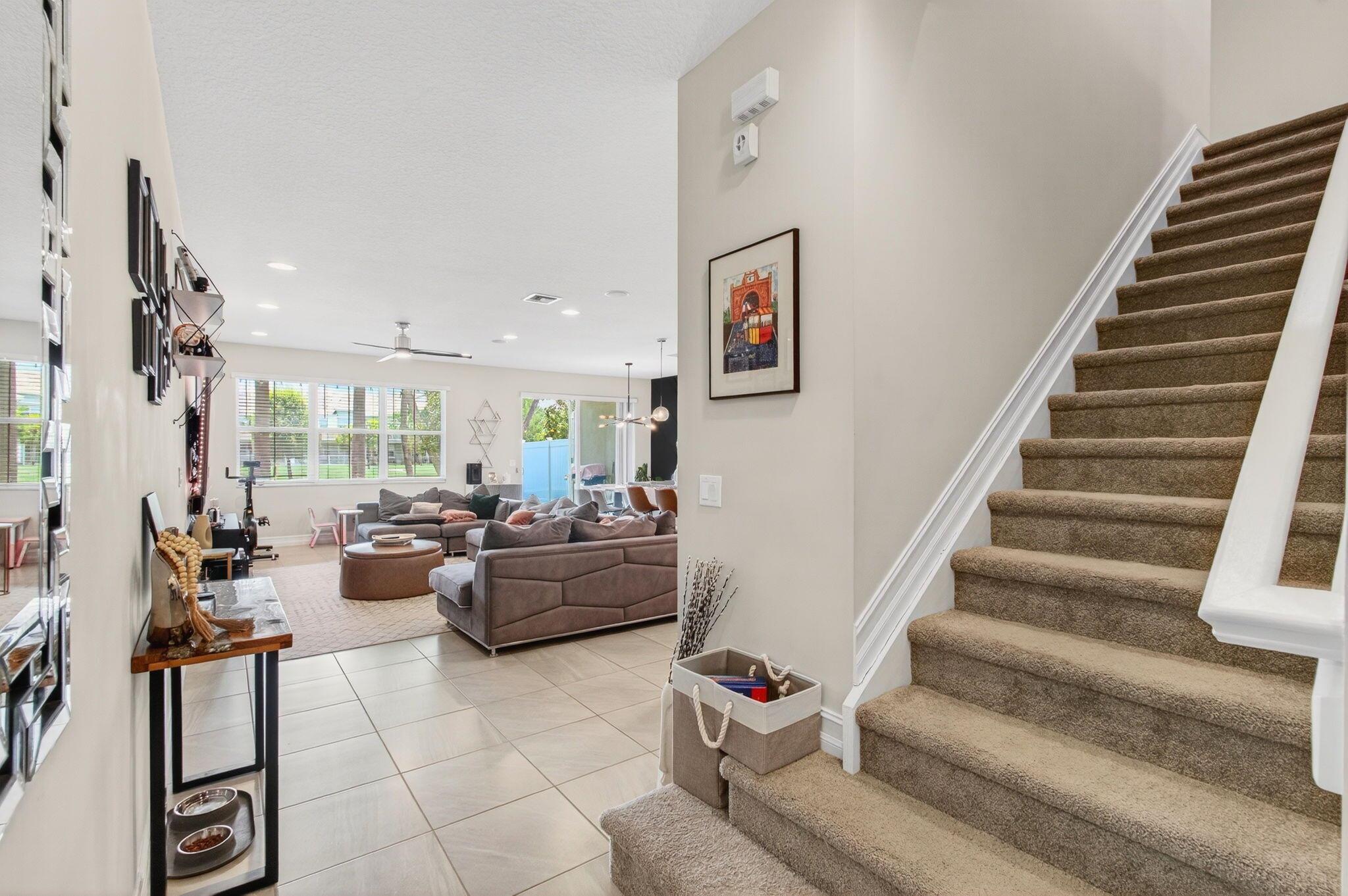 2.25% ASSUMABLE FHA LOAN on This beautifully maintained 3-bed, 2.5-bath townhome with OVER 2,200 LIV SQ FT of thoughtfully designed living space with CEILING SPEAKERS for ambient or home theatre sound. Enjoy a BRIGHT, open layout with great natural light, stylish finishes, and a spacious kitchen, REVERSE OSMOSIS system for filtered drinking/cooking water, a large island and ample cabinetry. Upstairs features a huge master bedroom, two additional bedrooms, a laundry room, and a versatile landing--perfect for a desk, reading nook, or play area. BUILT IN 2019 with impact windows, a 2-car garage, and plenty of storage. Located in a community with walking paths and convenient access to shopping, dining, and the Turnpike, Dont Miss Out!