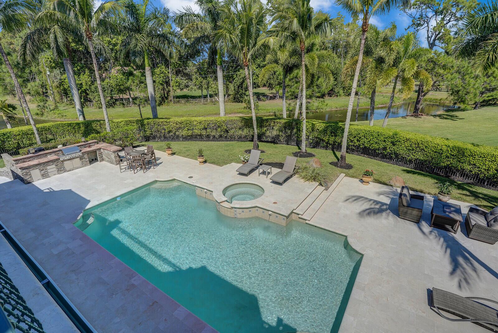 GardensExperience the ultimate in luxury equestrian living at 14639 Crazy Horse Lane, a 10-acre estate in the prestigious Caloosa community. This meticulously maintained property offers unparalleled facilities for horse enthusiasts alongside a private main house with a pool and a charming guest house--ideal for family, staff, or guests.Equestrian Features:Arena: 220' x 110', IDA Premier Footing (2022) with a covered viewing pavilionHorse Exerciser: Six-horse capacity with new Equine flooring (2022)8 Pastures: Water access, 6 Tiki hut run-ins (2 with field stalls), 2 medical paddocksFencing: White PVC, fenced and cross-fencedBarn Features:6 Stalls: Four 14' x 12', two 8' x 10'Aisle: Rubber paver flooringRooms: A/C tack room/office, feed room, 5 grooming stalls