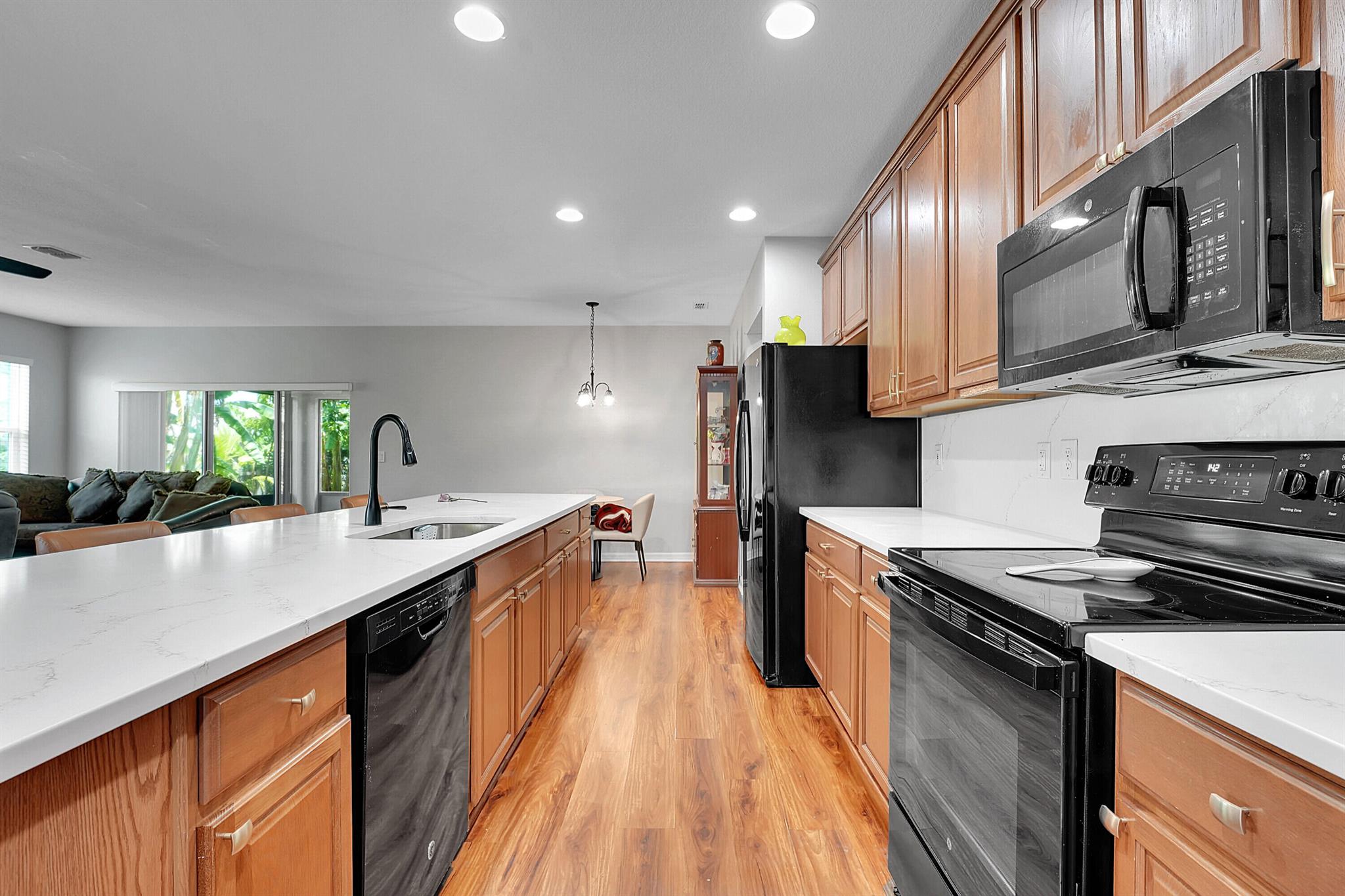 Beautifully Updated 4BR/3BA Home with 3-Car Garage in Port St. Lucie! This 2016-built home features over $30K in upgrades, including new interior/exterior paint, reverse osmosis system, new laminate flooring, and a newly screened oversized patio. Spacious 2,500+ sq. ft. split floor plan with a brand-new kitchen island, ideal for entertaining! Enjoy lush landscaping, mature fruit trees, and a private tropical feel in the backyard. Located near Becker Rd & the Turnpike for easy access.
