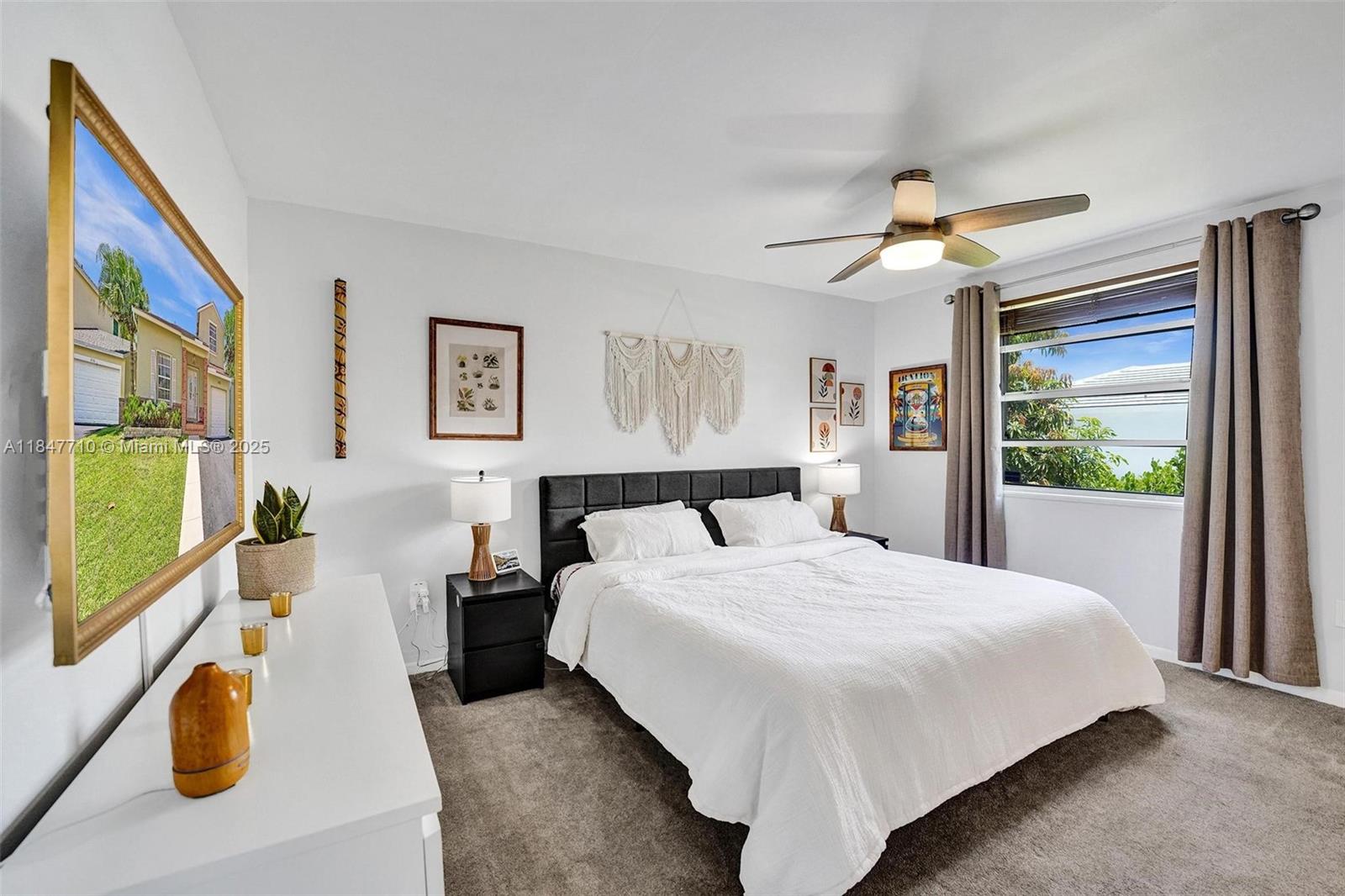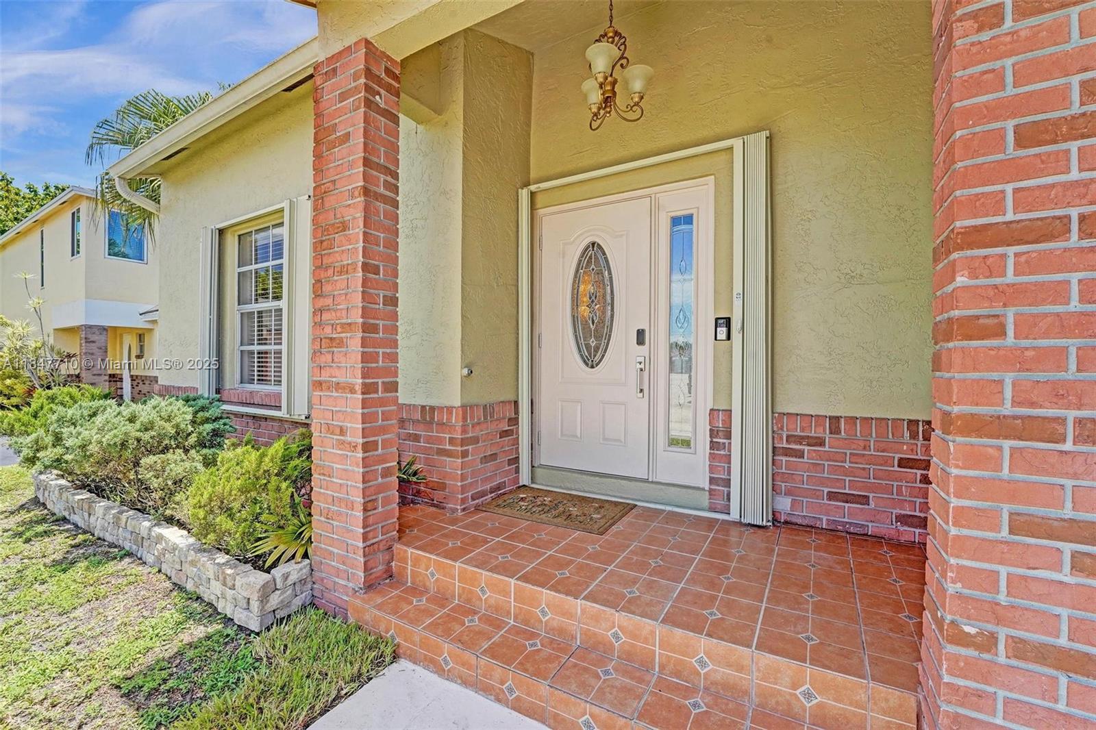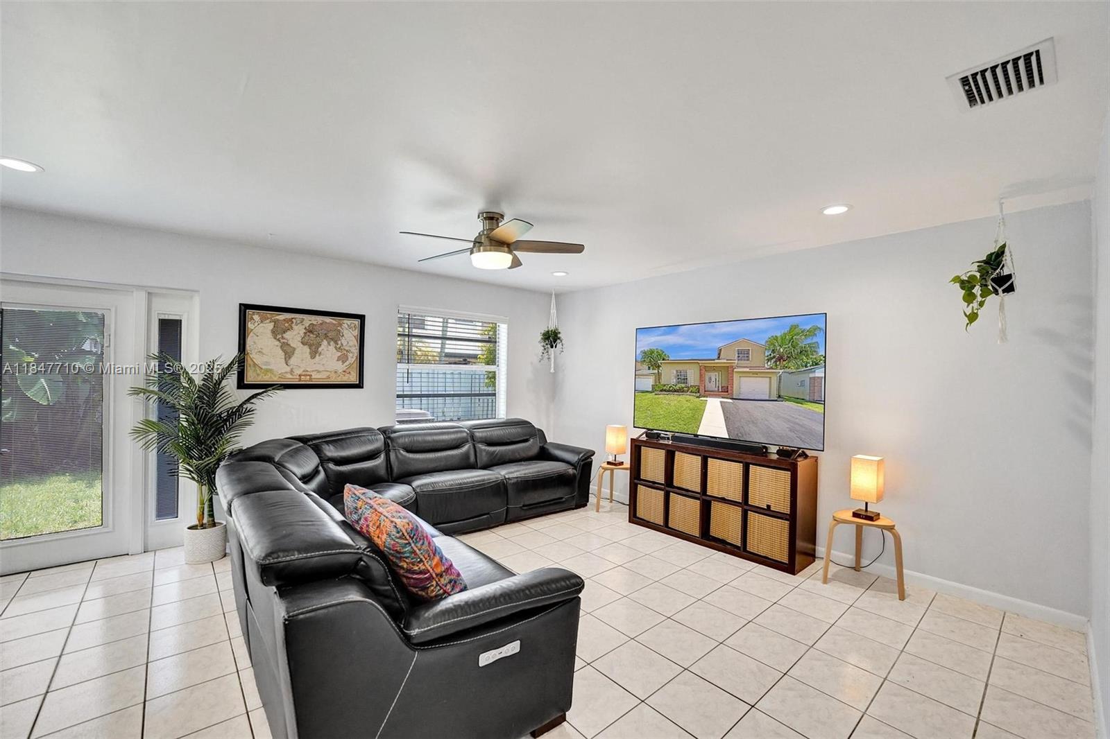 This beautiful and spacious home home sits in a peaceful cul-de-sac on a large lot, offering abundant natural light and vaulted ceilings. The main living areas feature tile and laminate flooring, while the newly updated bathrooms and smooth ceilings add a fresh touch. Enjoy extra storage or office space, and step outside to a fenced yard with your very own mango & banana fruit-bearing trees! Accordion shutters throughout provide extra peace of mind. Additional perks include fresh paint inside and out, ceiling fans, custom closet shelving & new electric panel. Located in beautiful Shenandoah, top-rated schools, easy access to highways, shopping, dining, the airport, and Sawgrass Mills Mall. Low HOA with access to community pool, parks, trails, tennis, and basketball courts. Check it out!