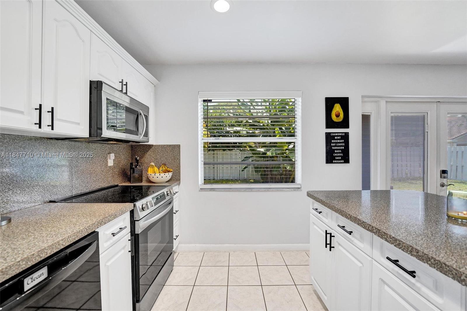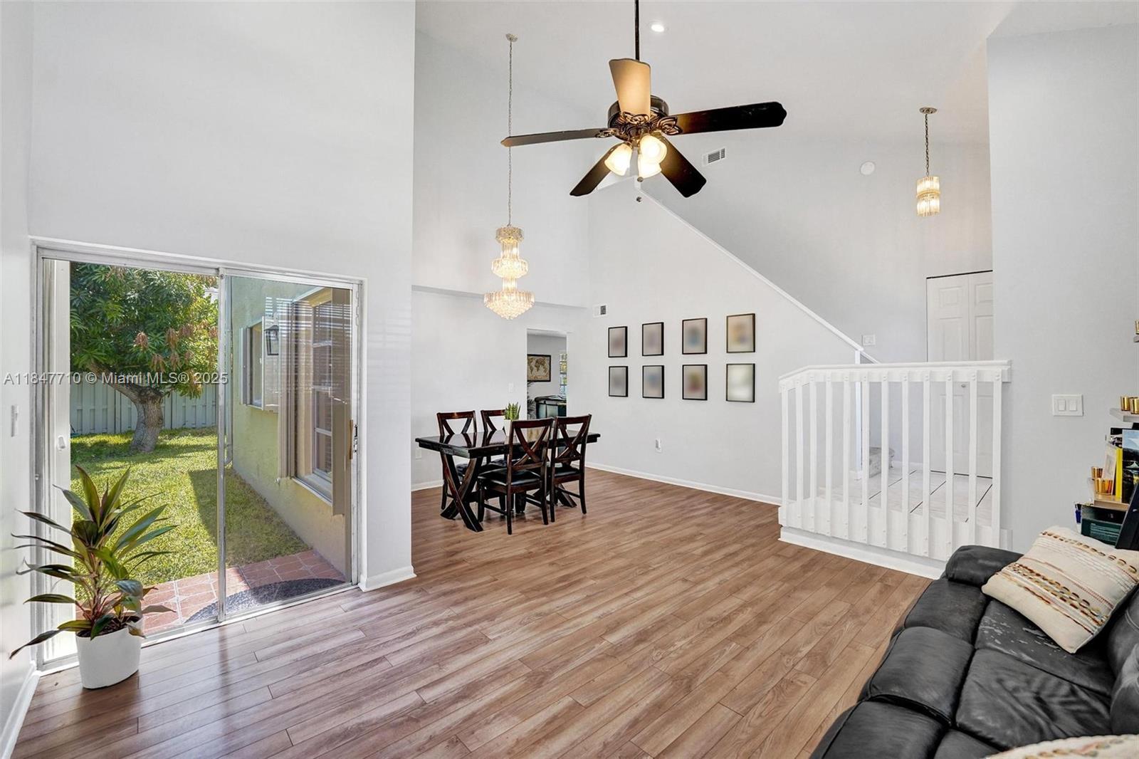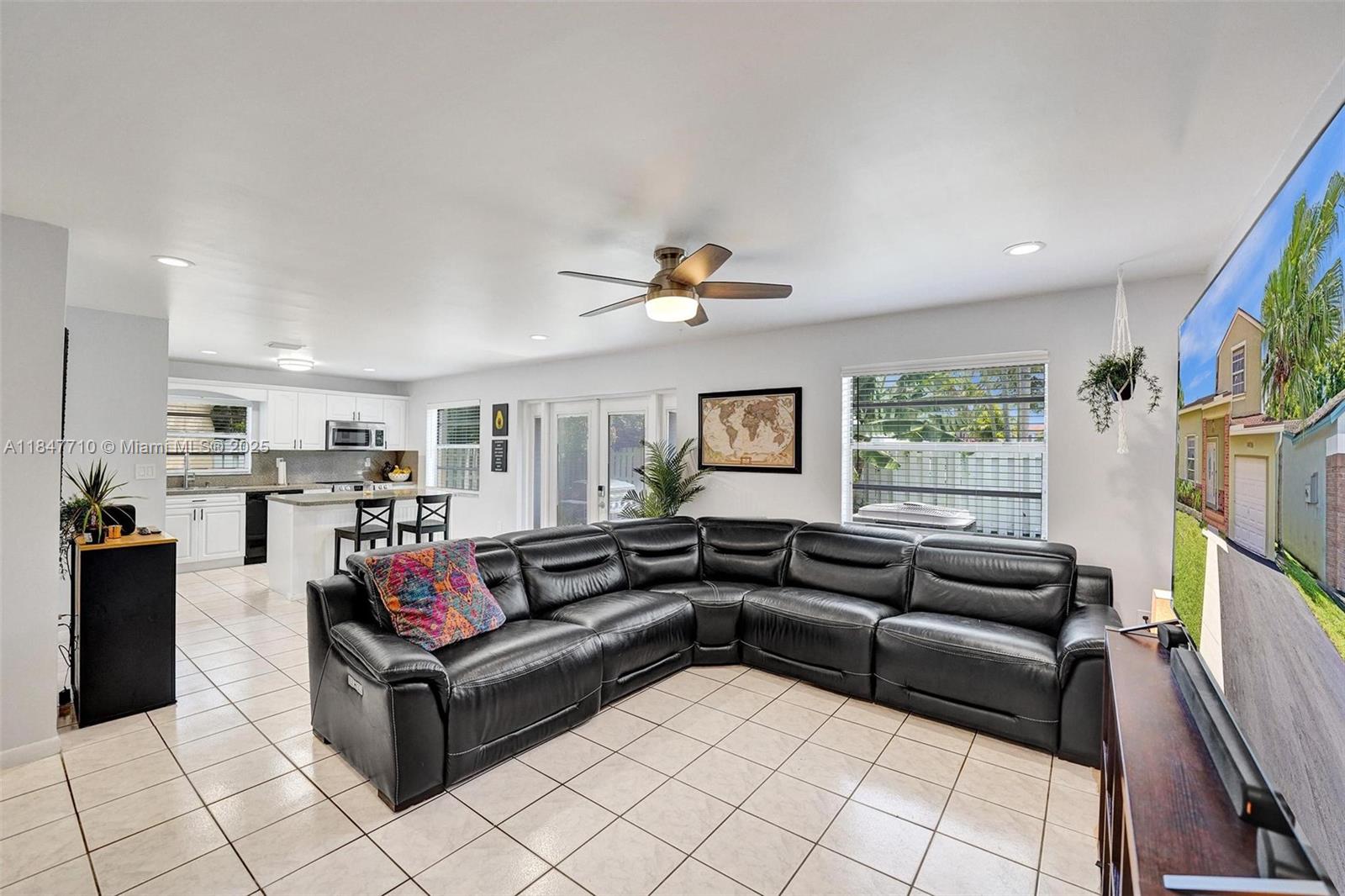This beautiful and spacious home home sits in a peaceful cul-de-sac on a large lot, offering abundant natural light and vaulted ceilings. The main living areas feature tile and laminate flooring, while the newly updated bathrooms and smooth ceilings add a fresh touch. Enjoy extra storage or office space, and step outside to a fenced yard with your very own mango & banana fruit-bearing trees! Accordion shutters throughout provide extra peace of mind. Additional perks include fresh paint inside and out, ceiling fans, custom closet shelving & new electric panel. Located in beautiful Shenandoah, top-rated schools, easy access to highways, shopping, dining, the airport, and Sawgrass Mills Mall. Low HOA with access to community pool, parks, trails, tennis, and basketball courts. Check it out!