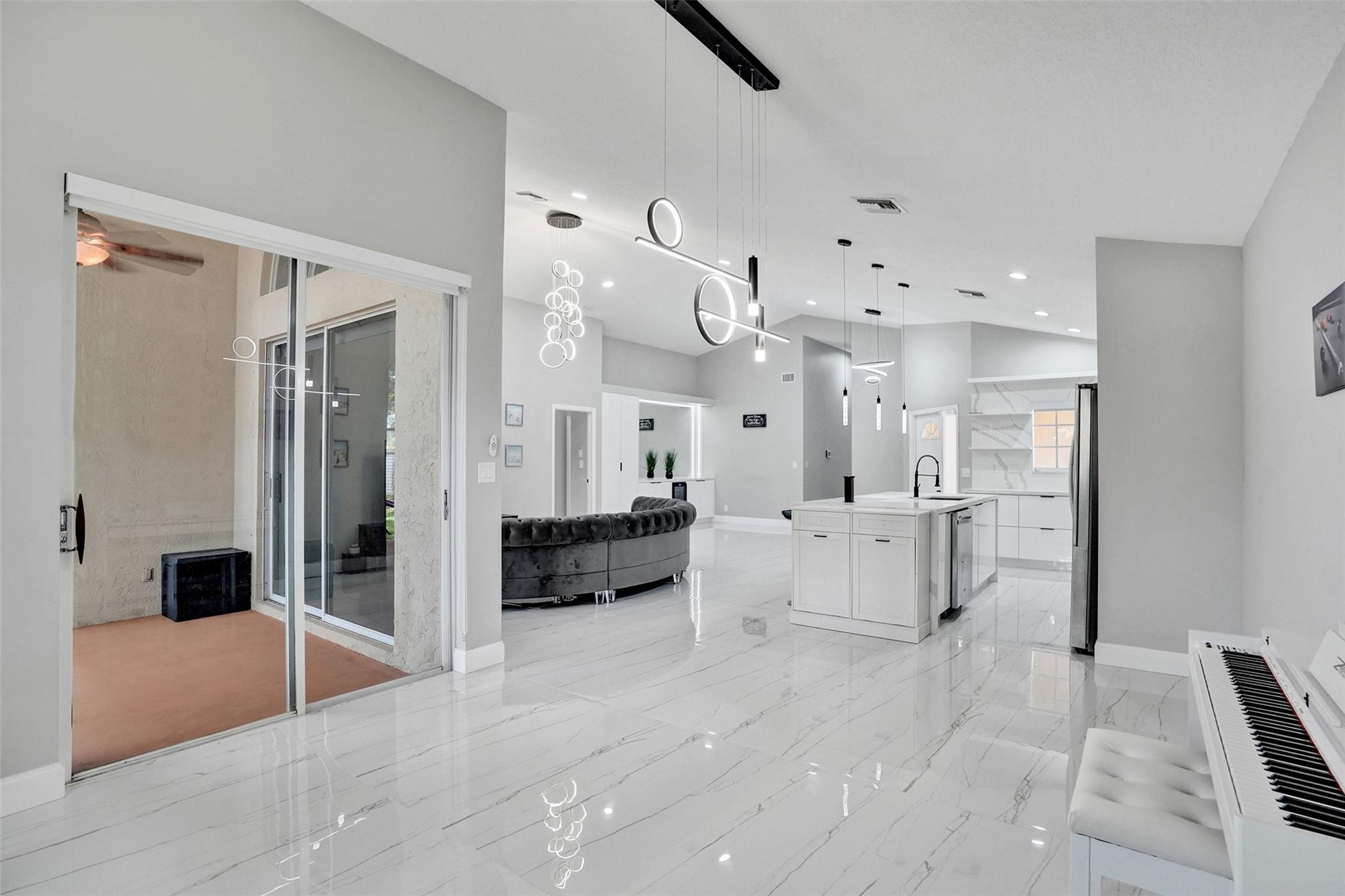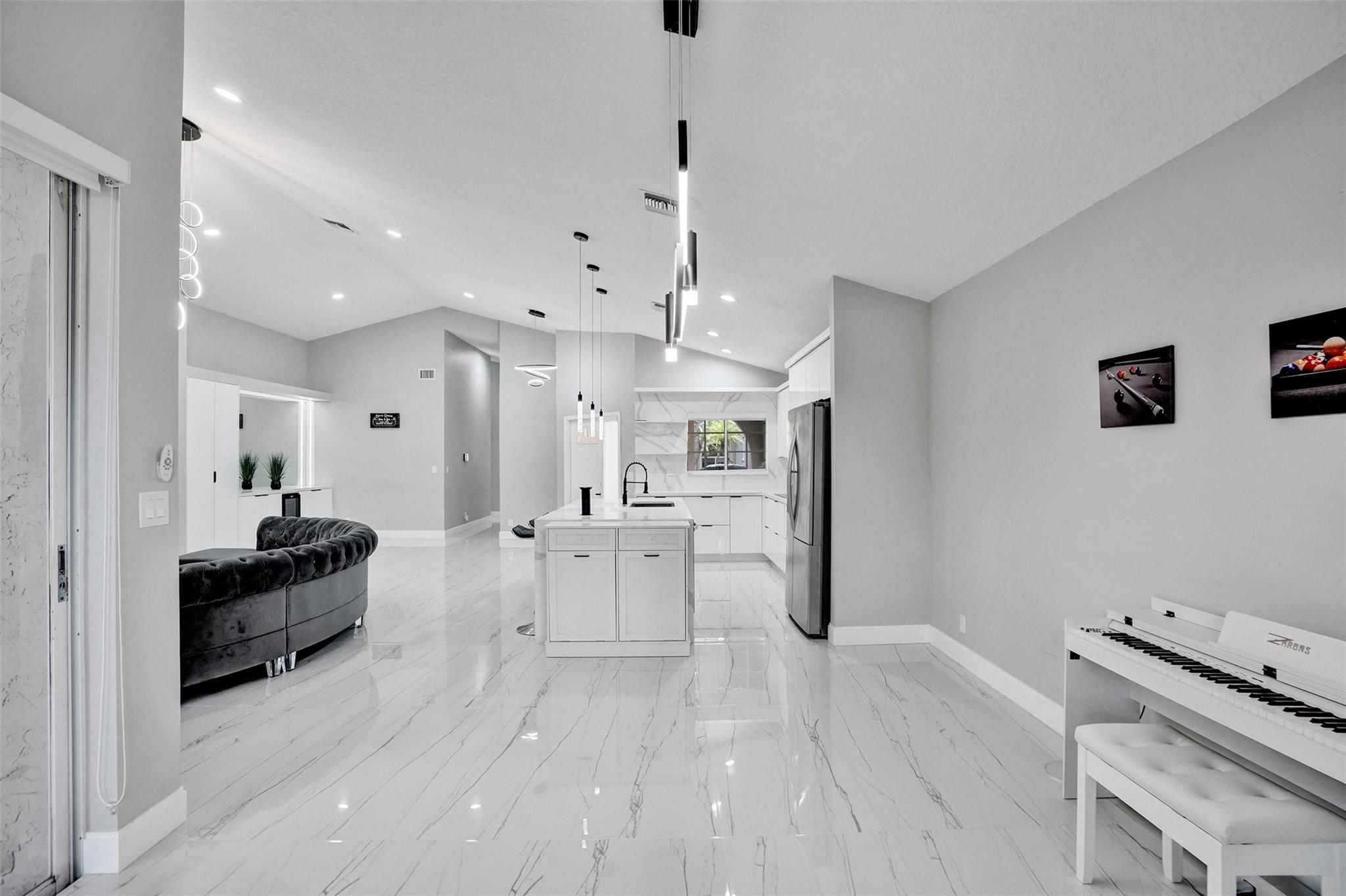Step into this stylishly updated 4-bed, 2-bath home in sought-after North Springs. Located in an area known for A-rated schools, this property blends modern elegance with everyday comfort. Inside, you'll find an open-concept layout, vaulted ceilings, natural light, and a split floor plan. The kitchen stands out with glossy white cabinetry, bold black hardware, an island with seating and storage, and a built-in wine fridge in the bar area. The primary suite includes a spacious layout, custom closet, and a bathroom with dual sinks, soaking tub, and separate shower. Additional perks: recessed LED lights throughout, a separate laundry room with utility sink, and 2-car garage. Enjoy low HOA fees that cover lawn care and access to a community pool. A perfect mix of design, comfort, and location.