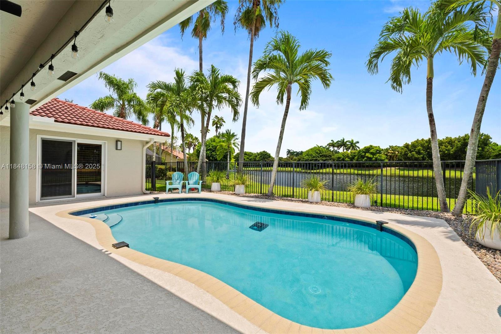 Experience the best of Florida living in this beautifully updated 3-bedroom + office, 2.5-bath waterfront home! Enjoy peaceful lake views from the extended covered patio or take a dip in the sparkling pool, recently resurfaced in 2021. Inside, you'll find a bright, open layout filled with natural light, featuring a modern kitchen with shaker-style cabinetry, quartz countertops, subway tile backsplash, and a cozy breakfast nook that opens to the family room. The spacious primary suite includes a spa-inspired bathroom and custom built-in closets. Additional highlights include renovated bathrooms, a split-bedroom floor plan, and full IMPACT windows and doors. Located in a highly sought-after area with excellent schools, this home offers the perfect blend of comfort, style, and community.