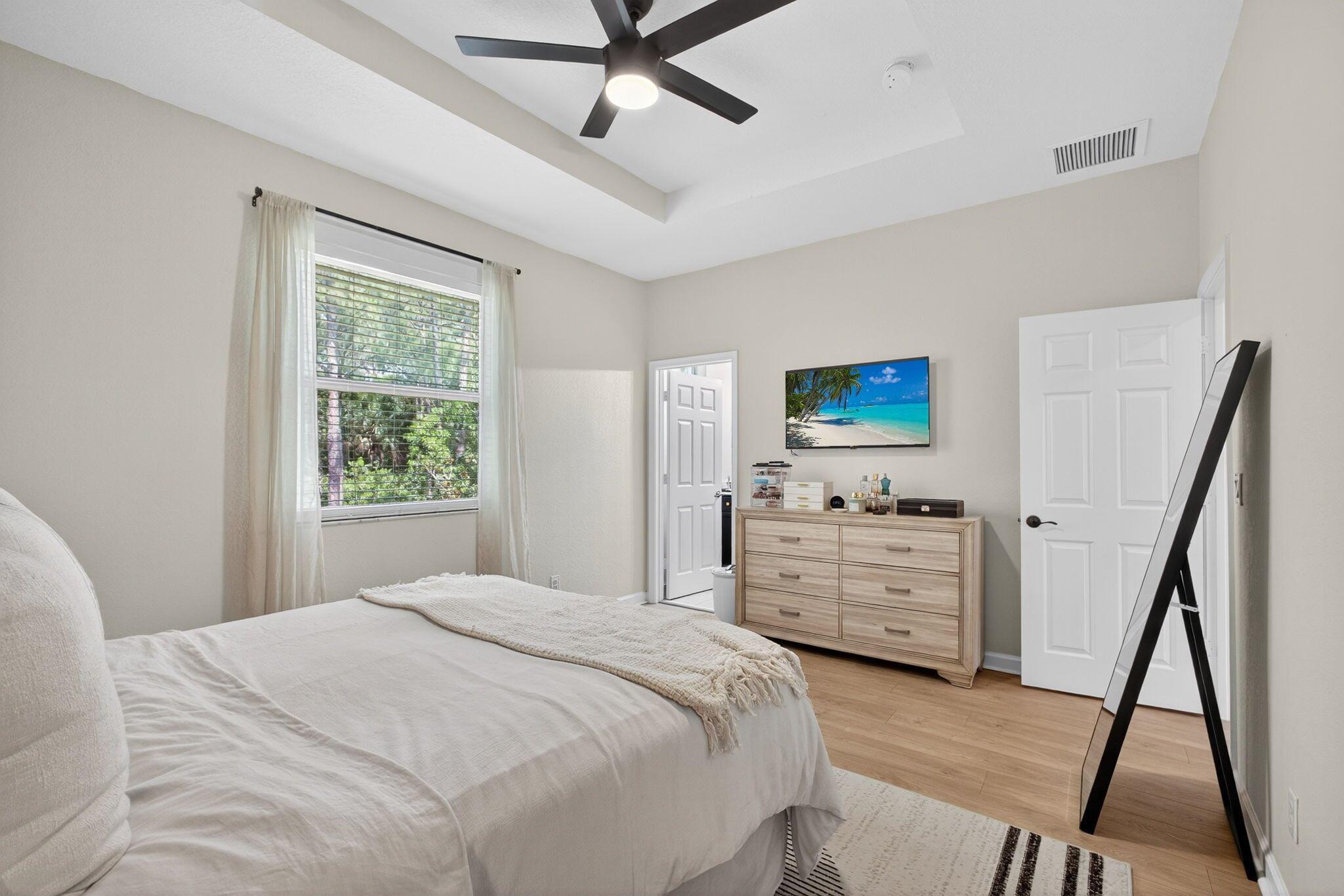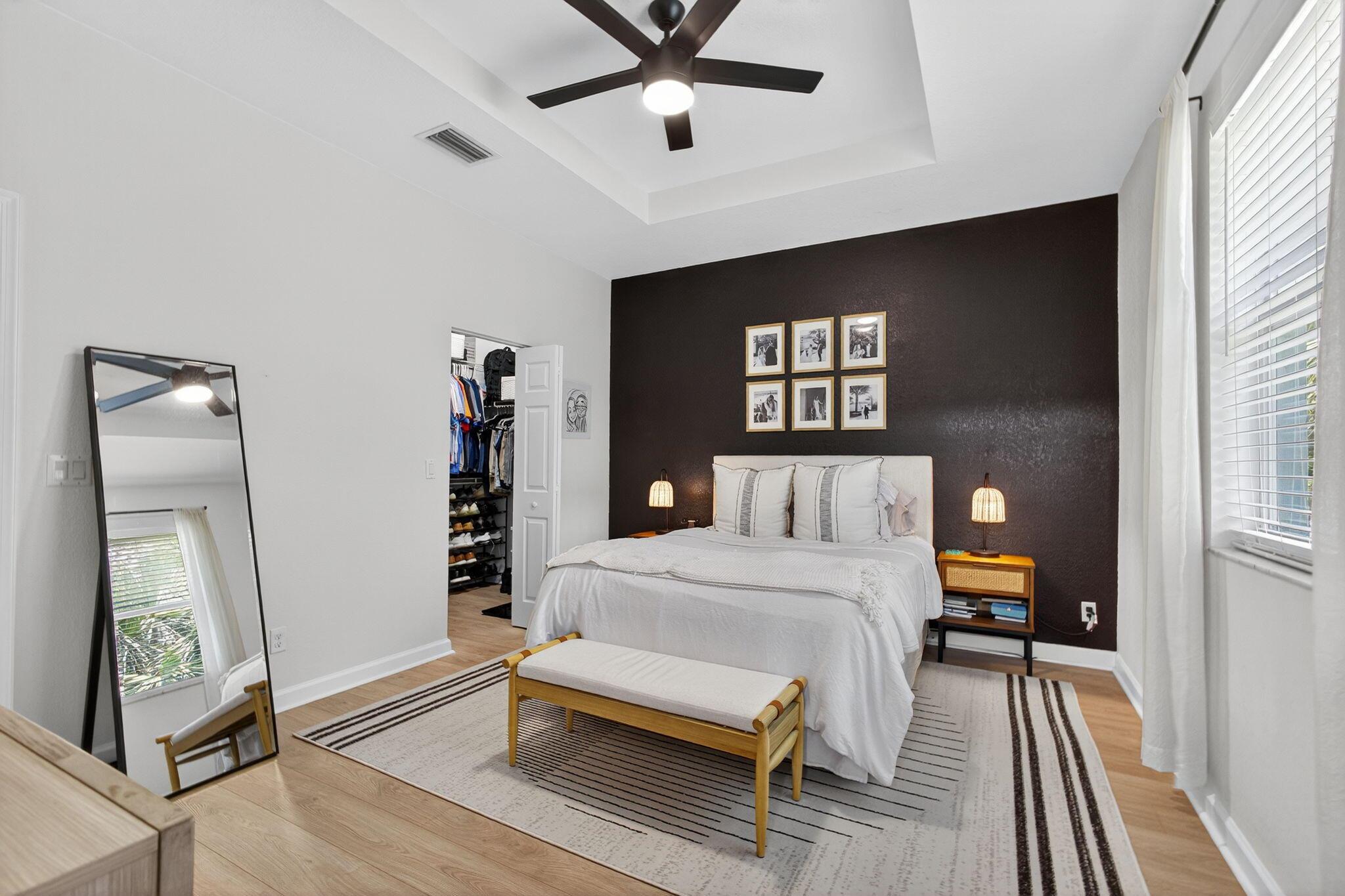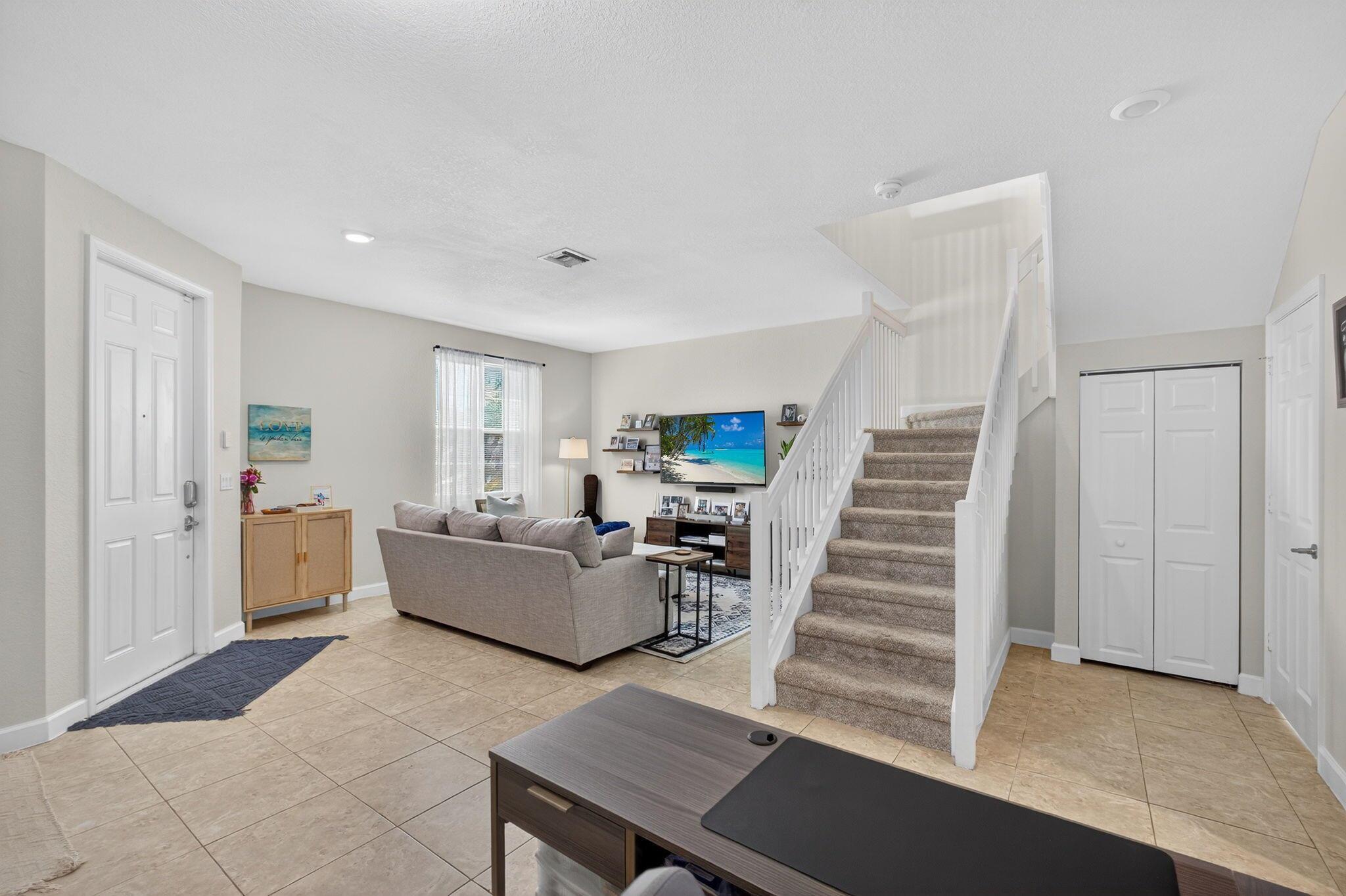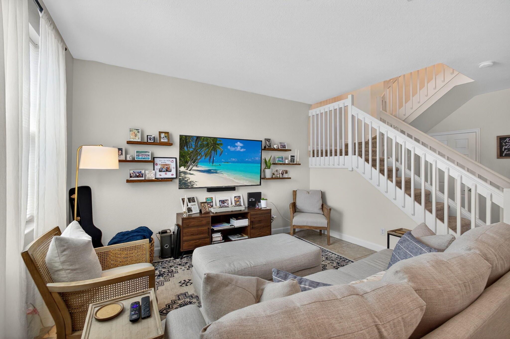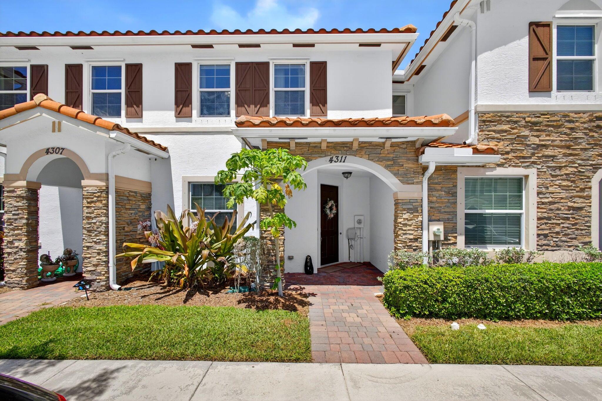 Welcome to 4311 Maybelle Lane - a beautifully maintained townhouse nestled in a desirable gated community in the heart of West Palm Beach. This spacious 3-bedroom, 2.5-bathroom home has brand new flooring on the stairs and second floor, and offers the perfect blend of comfort, style, and modern living. Step inside to find an open-concept layout with soaring 9-foot ceilings on both levels. The kitchen features granite countertops, wood cabinetry, and stainless steel appliances. Upstairs, you'll find three generously sized bedrooms, all offering ample closet space and natural light. Step outside to a back patio with no rear neighbors, providing extra privacy. Enjoy access to community amenities like a pool and playground, all just minutes from premier shopping, dining, and major highways.