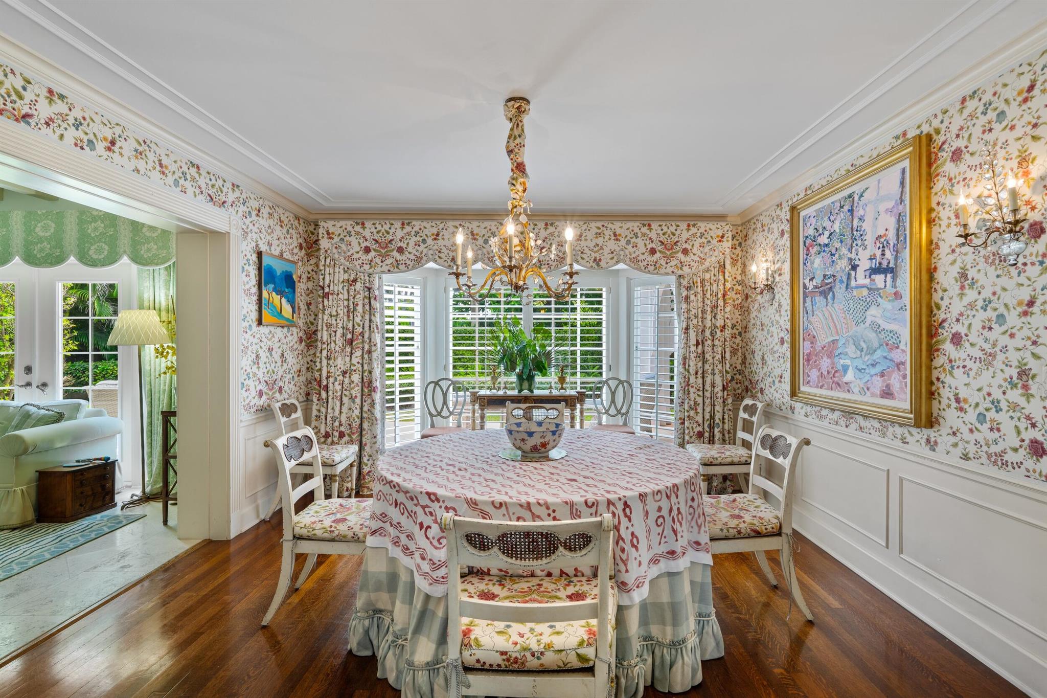Beautiful Monterey Colonial home on the Lake Block of Via Vizcaya. Features an excellent traditional floor plan with 4 bedrooms, 4.1 bathrooms, fireplace, and beautiful hardwood flooring. Exterior features include balconies, covered loggia, and swimming pool. Ample parking with two driveways and attached garage. Approximately half an acre with beautifully landscaped grounds. Ideally located in Palm Beach's acclaimed Estate Section.