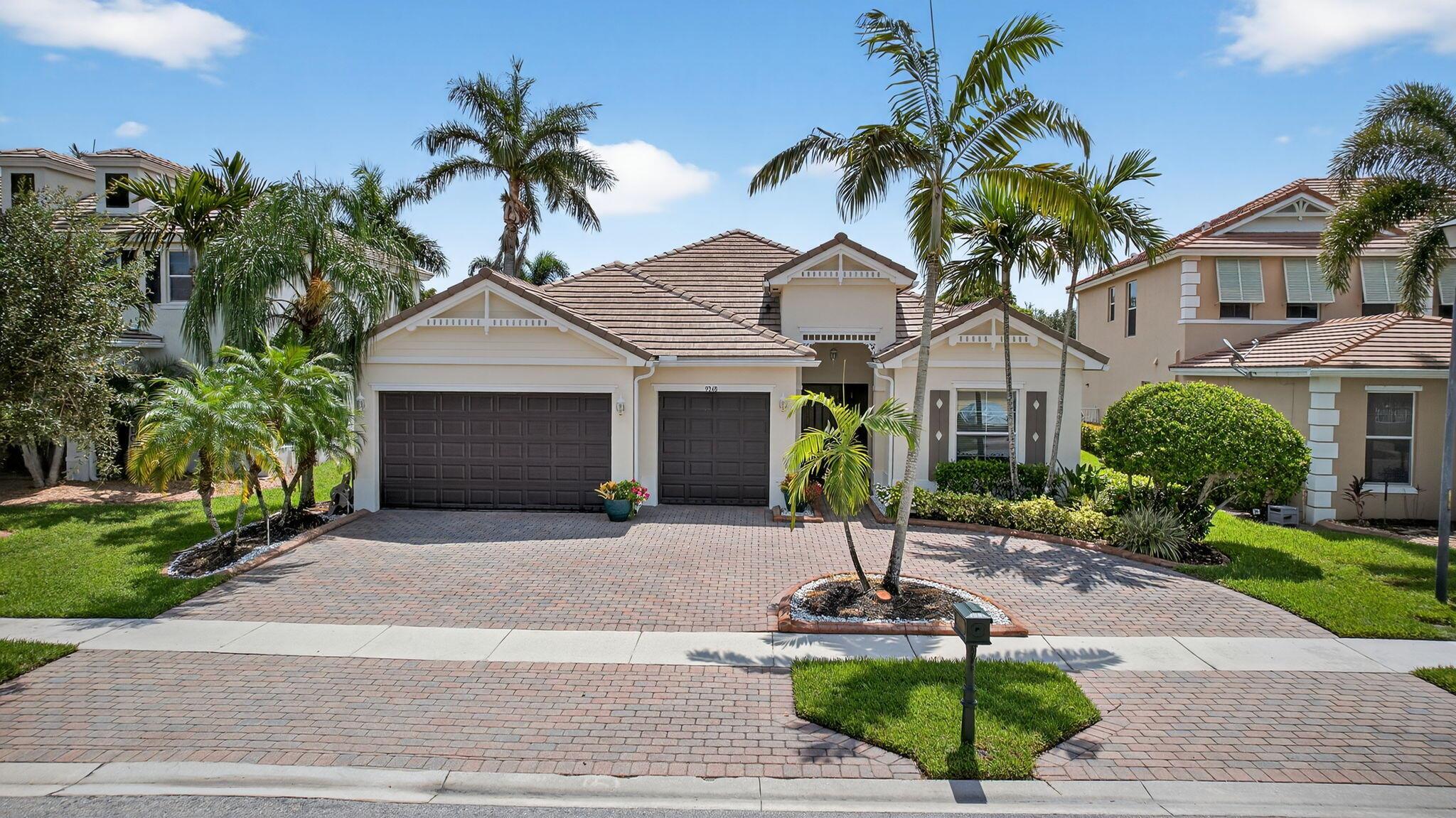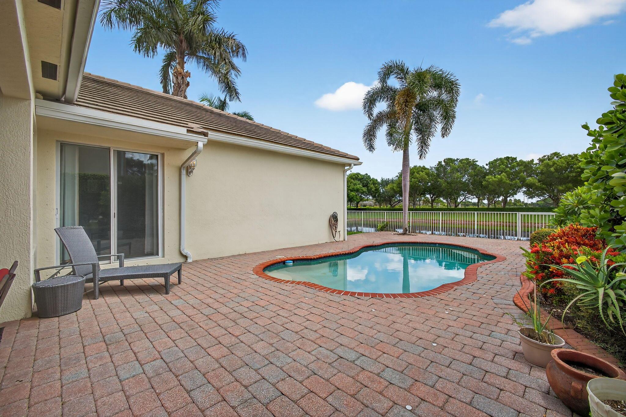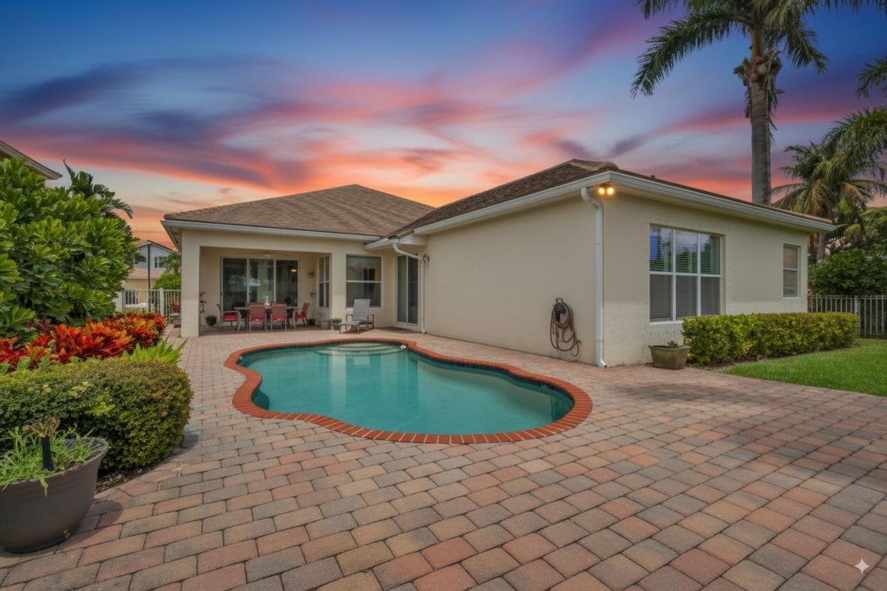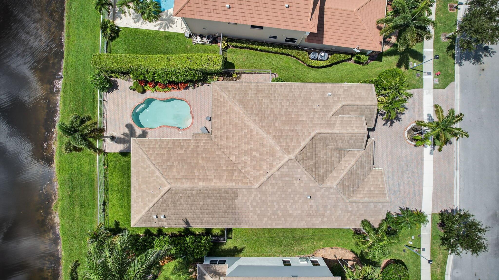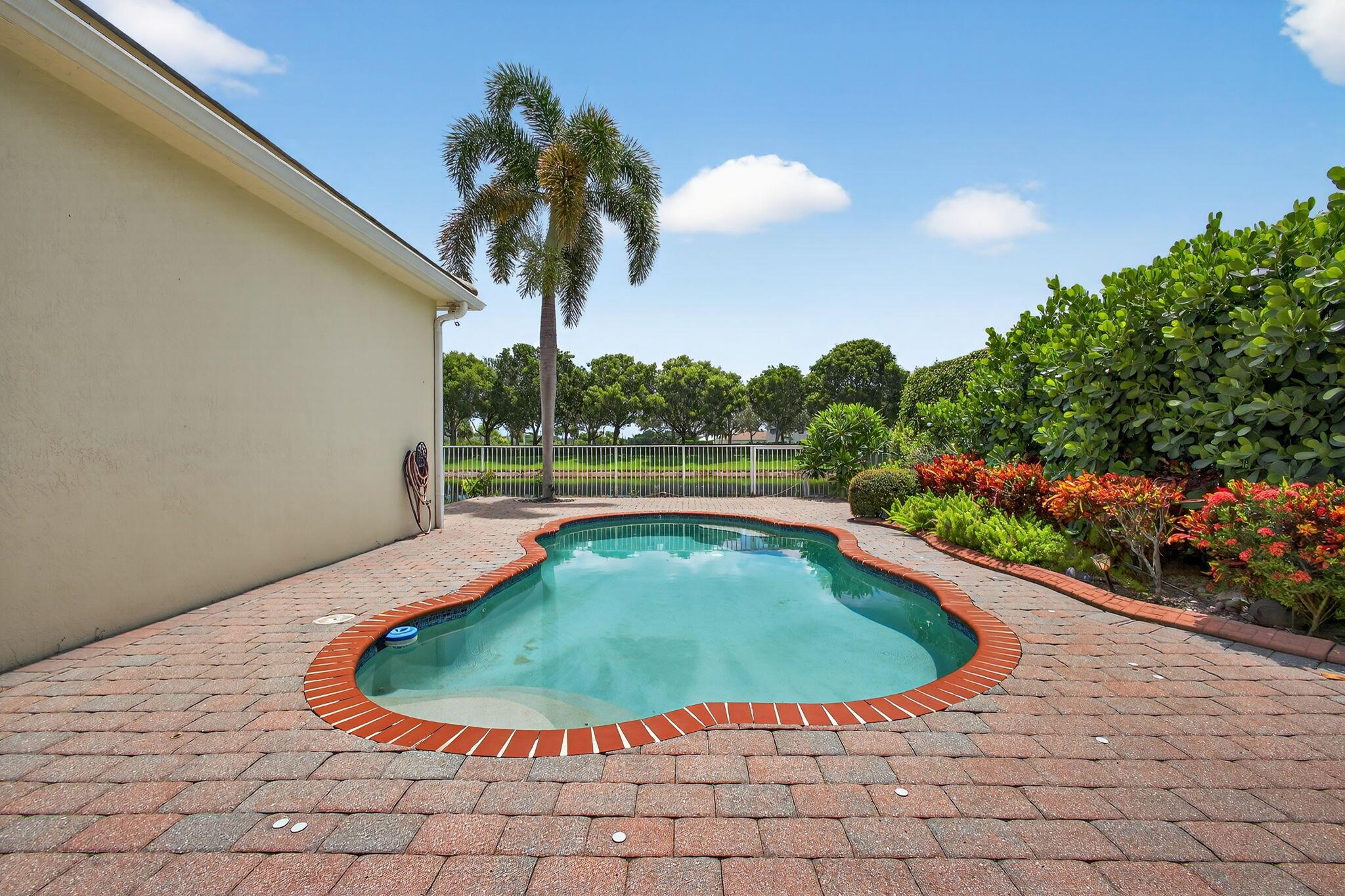 Welcome to this impeccably maintained 5 bedroom, 3 bathroom, 3 car garage estate, ideally situated on a private cul-de-sac in the exclusive Bay Tree enclave of Palm Beach Plantation in Royal Palm Beach, Florida. This elegant lakefront residence offers a private pool, tranquil water views, and exceptional curb appeal with a circular brick-paver driveway, manicured tropical landscaping, and an oversized garage. Recent upgrades include a 2023 roof, 2 A/C units installed in 2021, and a hot water heater from 2015. The roof was professionally power washed in July 2025, reflecting the home's meticulous upkeep and move-in-ready appeal.