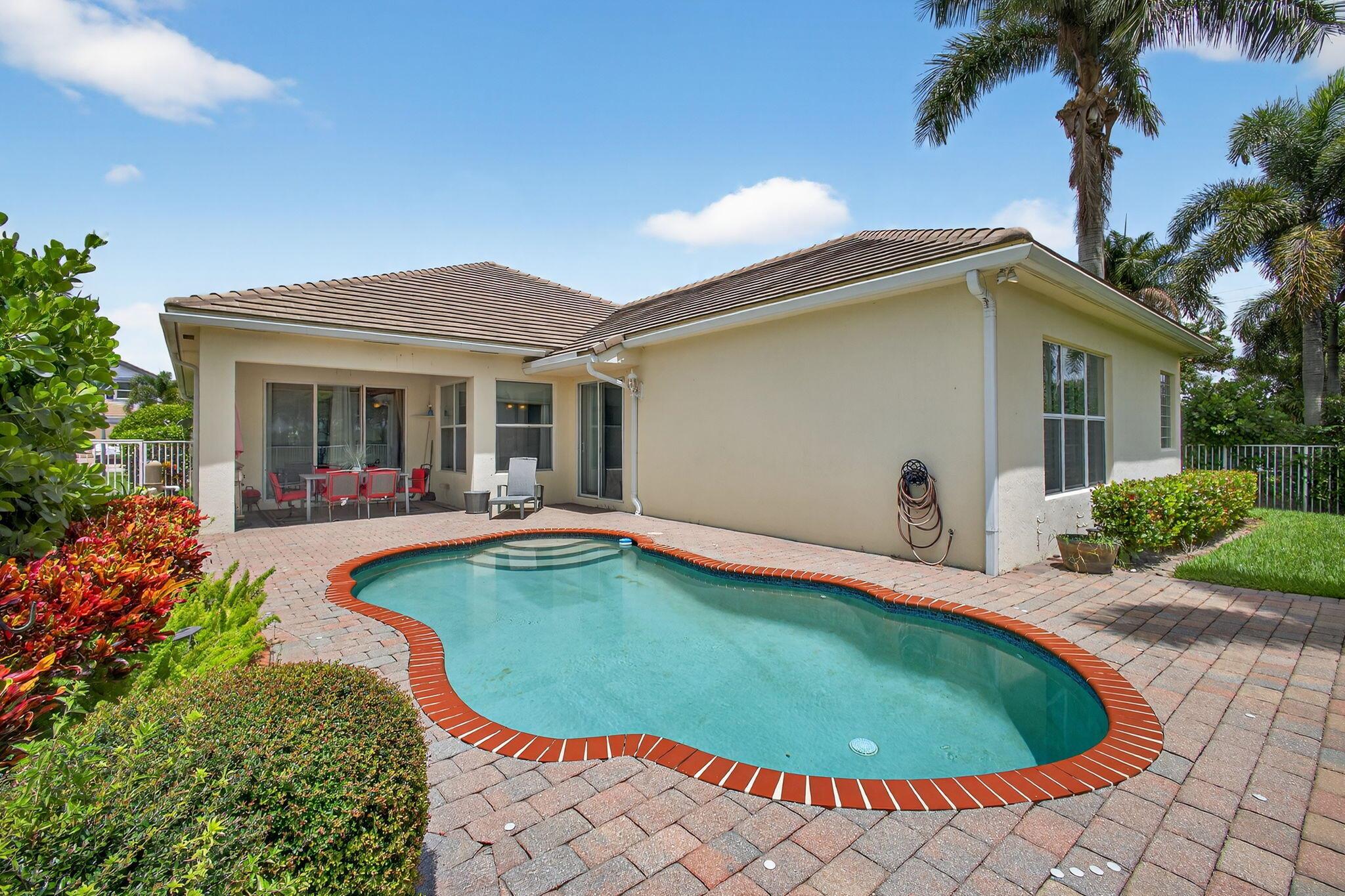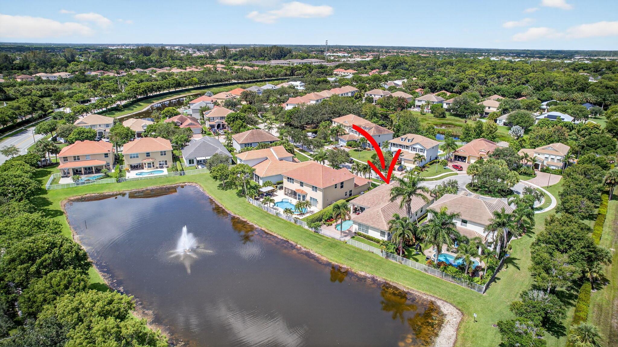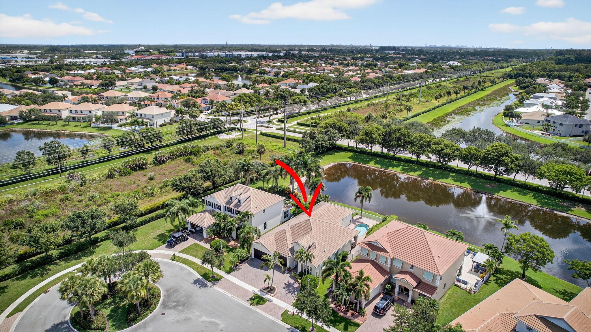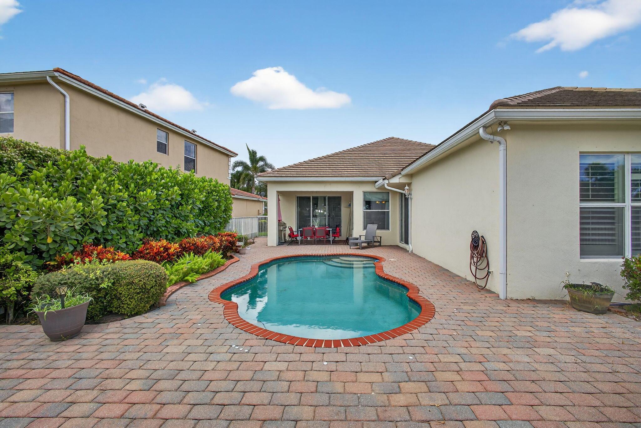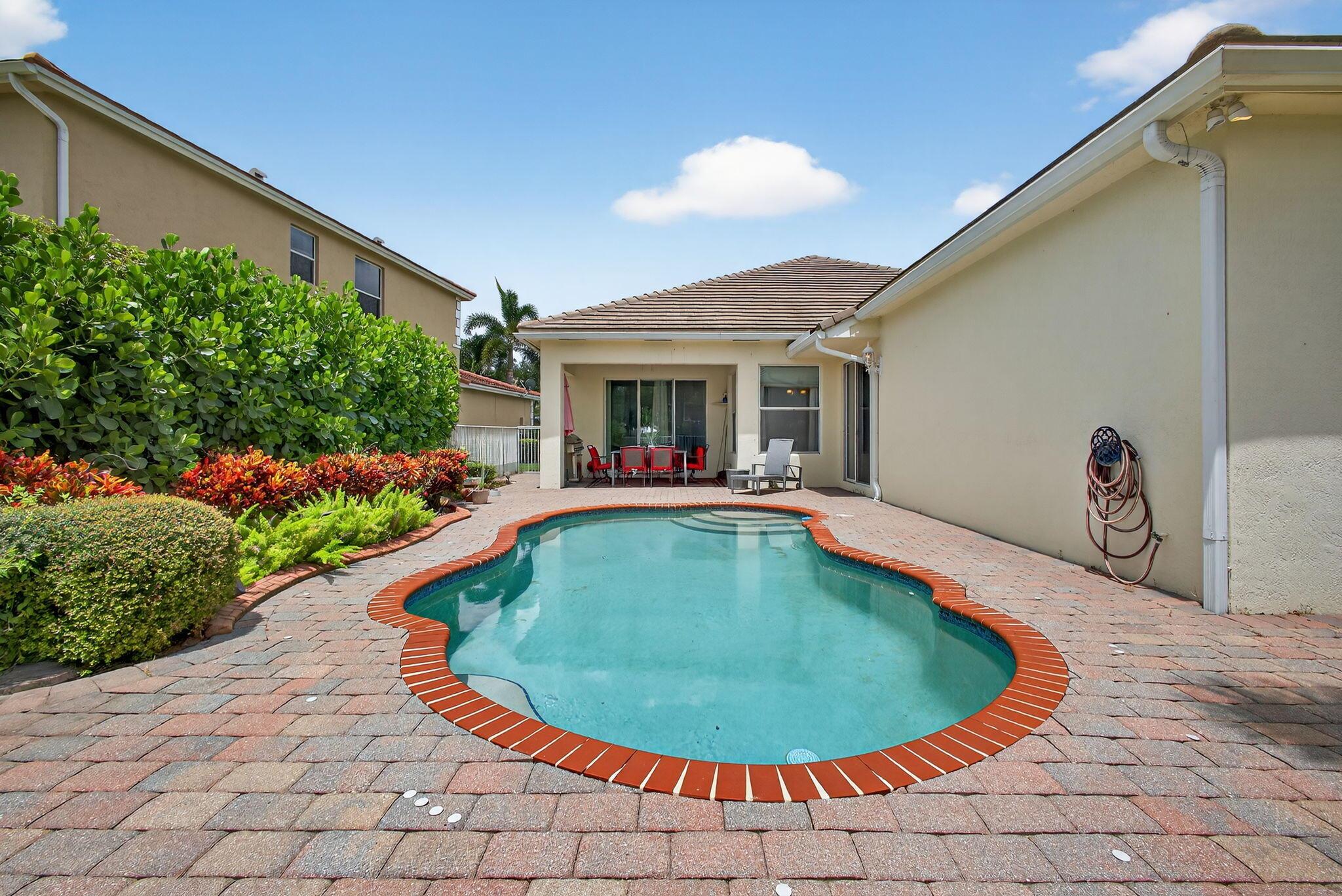 Welcome to this impeccably maintained 5 bedroom, 3 bathroom, 3 car garage estate, ideally situated on a private cul-de-sac in the exclusive Bay Tree enclave of Palm Beach Plantation in Royal Palm Beach, Florida. This elegant lakefront residence offers a private pool, tranquil water views, and exceptional curb appeal with a circular brick-paver driveway, manicured tropical landscaping, and an oversized garage. Recent upgrades include a 2023 roof, 2 A/C units installed in 2021, and a hot water heater from 2015. The roof was professionally power washed in July 2025, reflecting the home's meticulous upkeep and move-in-ready appeal.