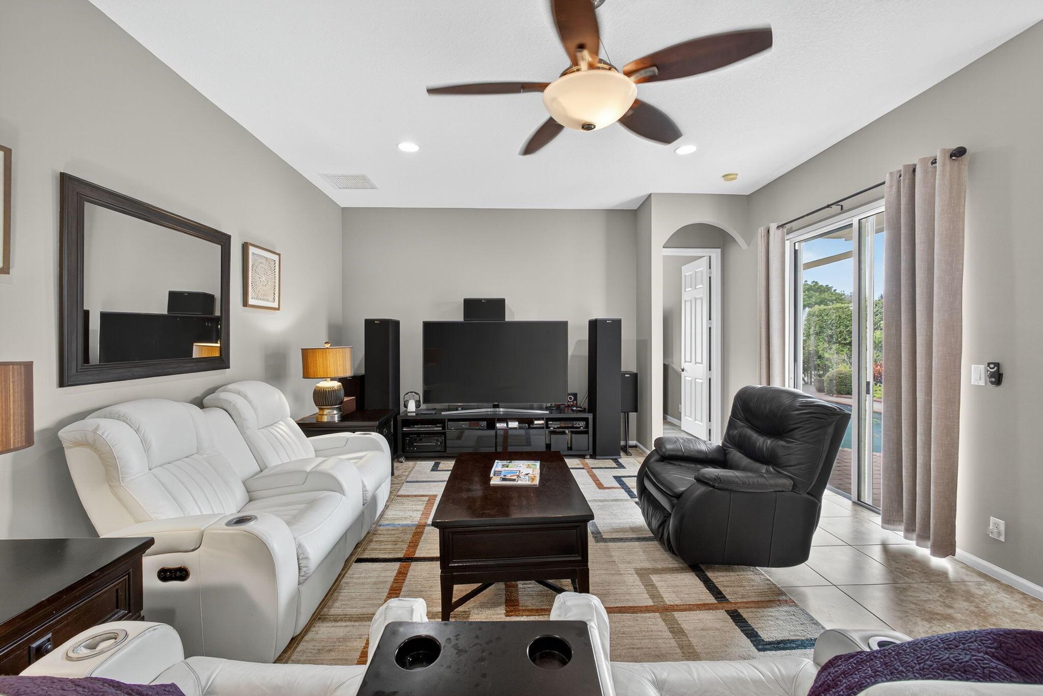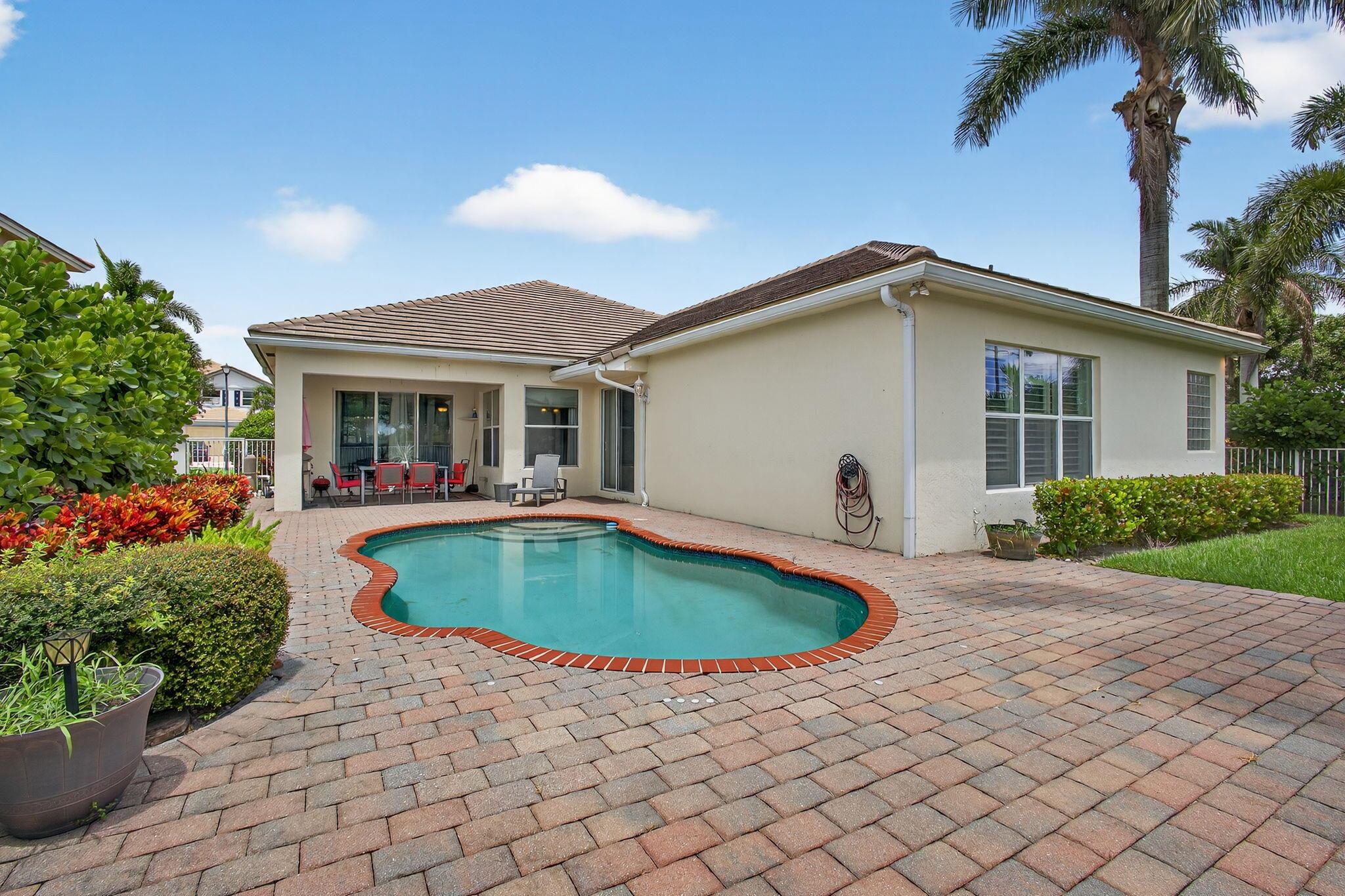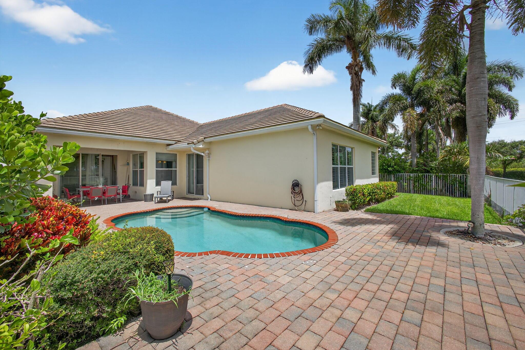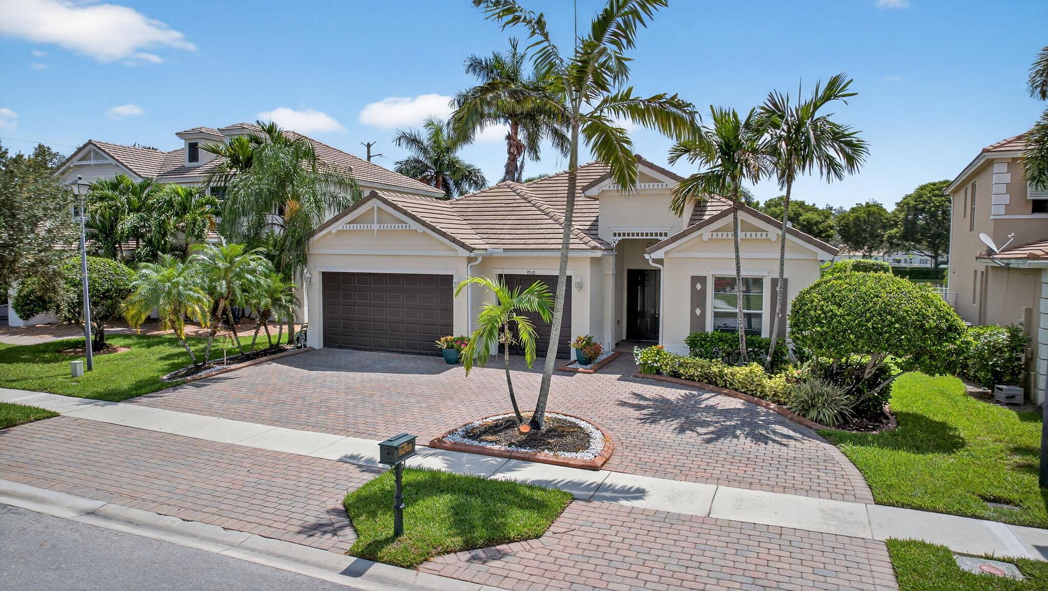 Welcome to this impeccably maintained 5 bedroom, 3 bathroom, 3 car garage estate, ideally situated on a private cul-de-sac in the exclusive Bay Tree enclave of Palm Beach Plantation in Royal Palm Beach, Florida. This elegant lakefront residence offers a private pool, tranquil water views, and exceptional curb appeal with a circular brick-paver driveway, manicured tropical landscaping, and an oversized garage. Recent upgrades include a 2023 roof, 2 A/C units installed in 2021, and a hot water heater from 2015. The roof was professionally power washed in July 2025, reflecting the home's meticulous upkeep and move-in-ready appeal.