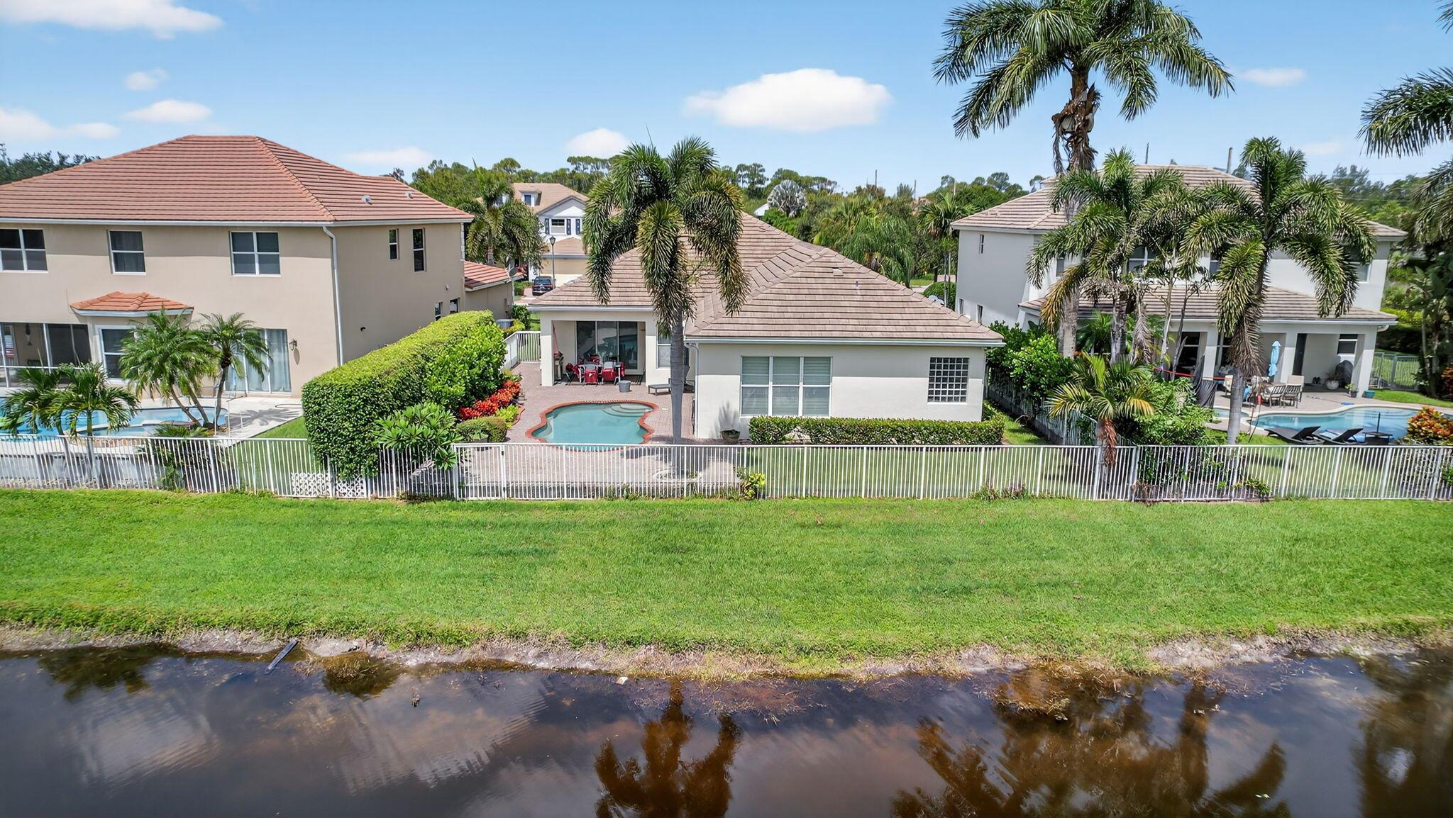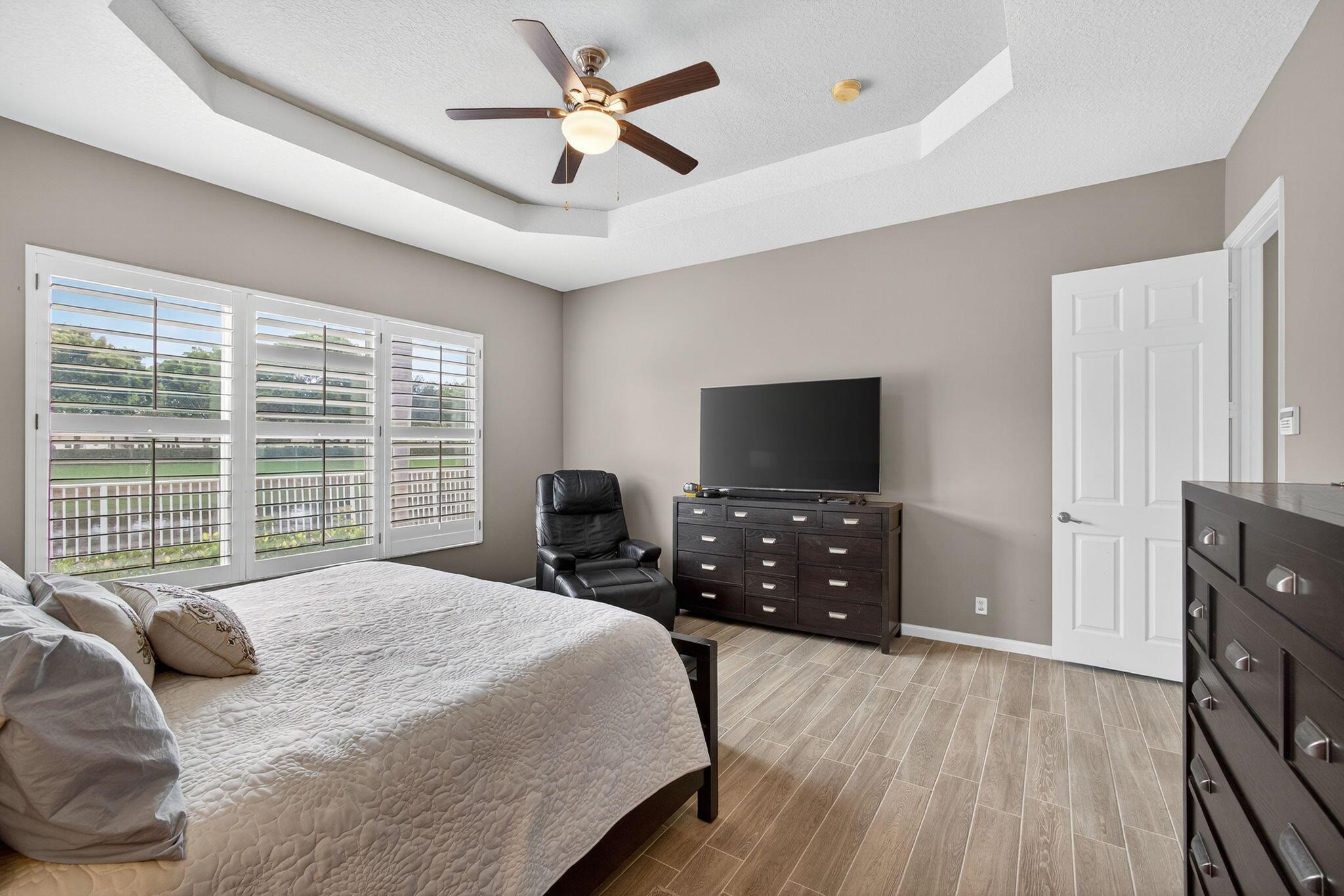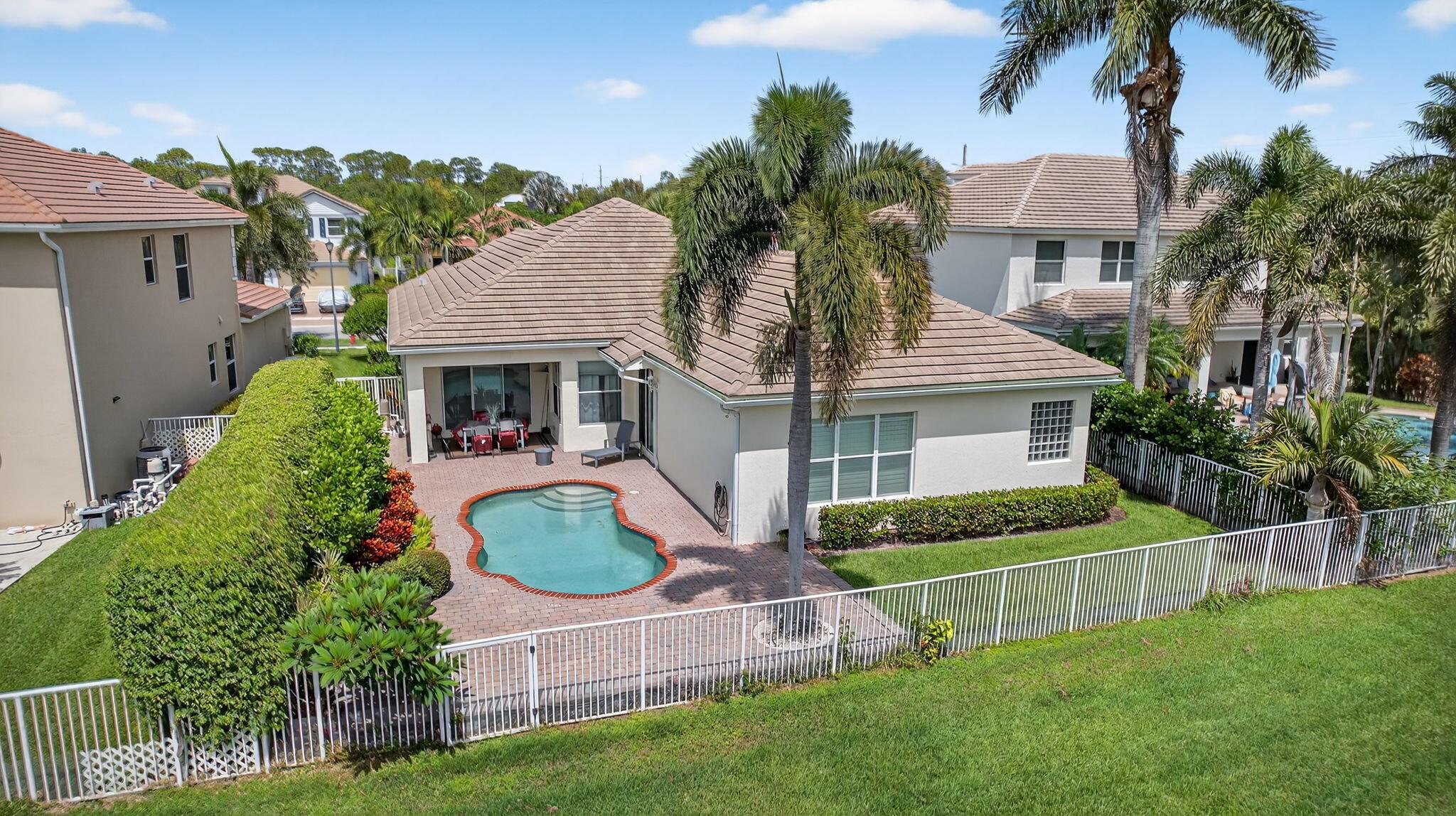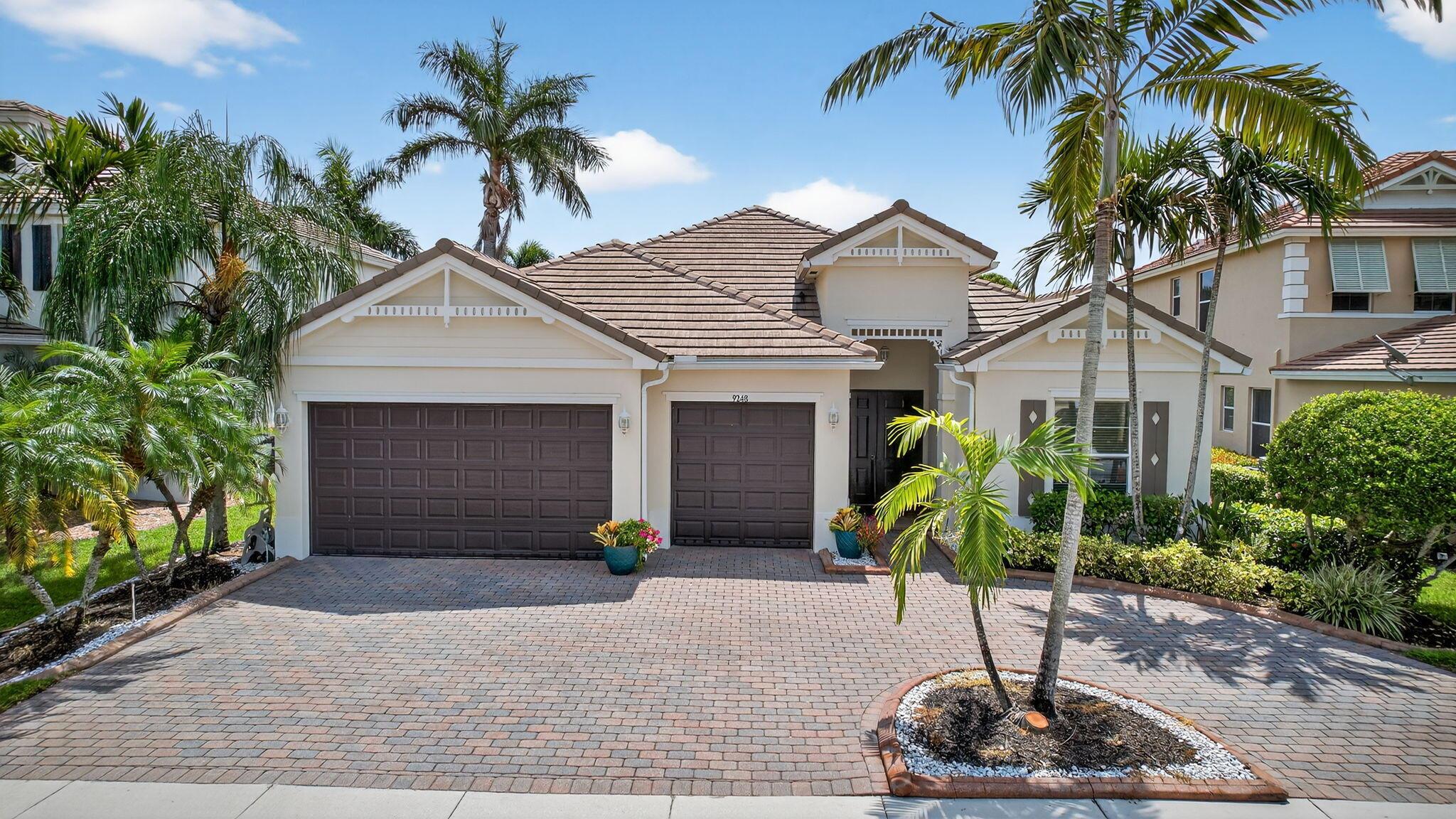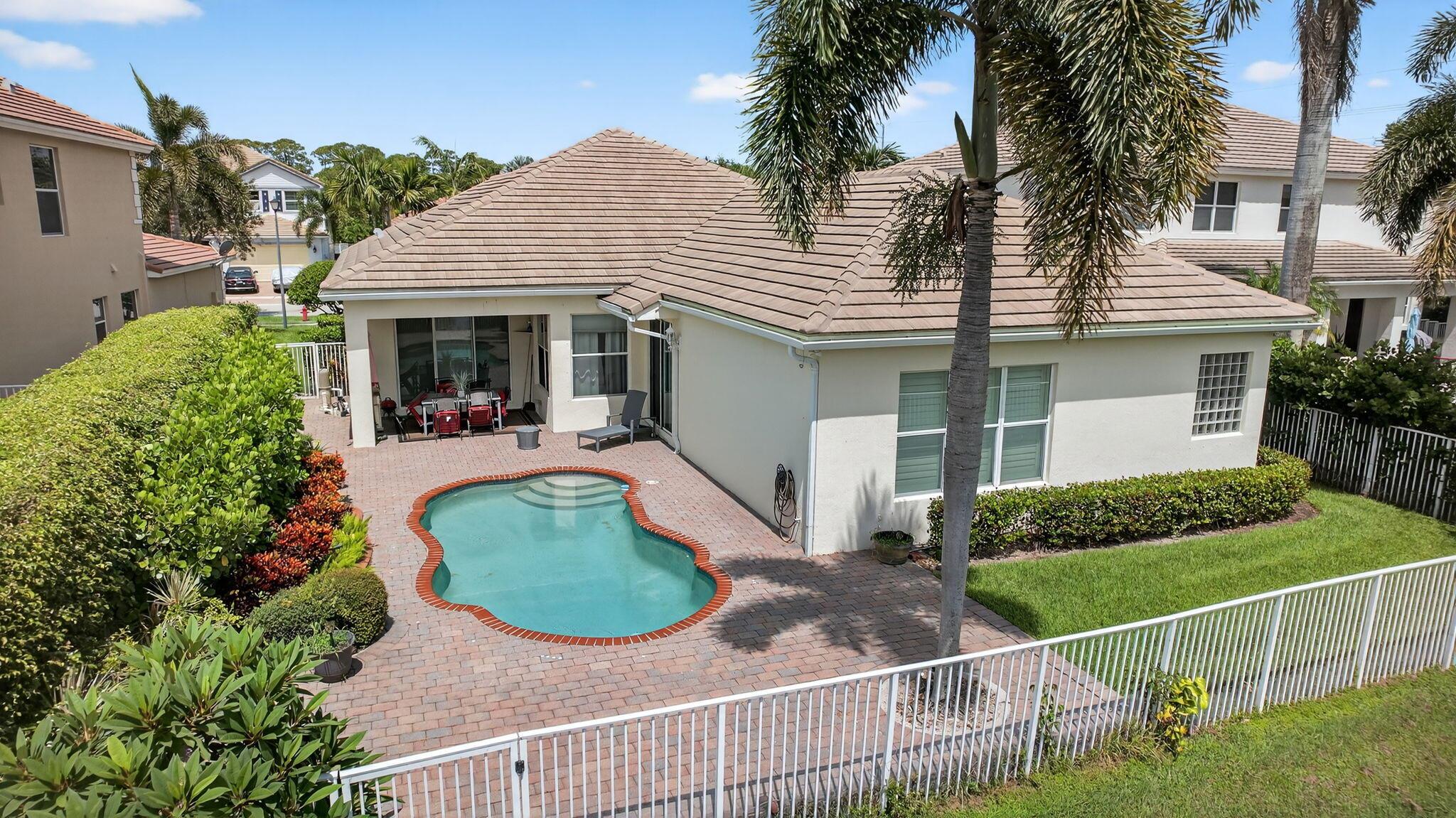 Welcome to this impeccably maintained 5 bedroom, 3 bathroom, 3 car garage estate, ideally situated on a private cul-de-sac in the exclusive Bay Tree enclave of Palm Beach Plantation in Royal Palm Beach, Florida. This elegant lakefront residence offers a private pool, tranquil water views, and exceptional curb appeal with a circular brick-paver driveway, manicured tropical landscaping, and an oversized garage. Recent upgrades include a 2023 roof, 2 A/C units installed in 2021, and a hot water heater from 2015. The roof was professionally power washed in July 2025, reflecting the home's meticulous upkeep and move-in-ready appeal.