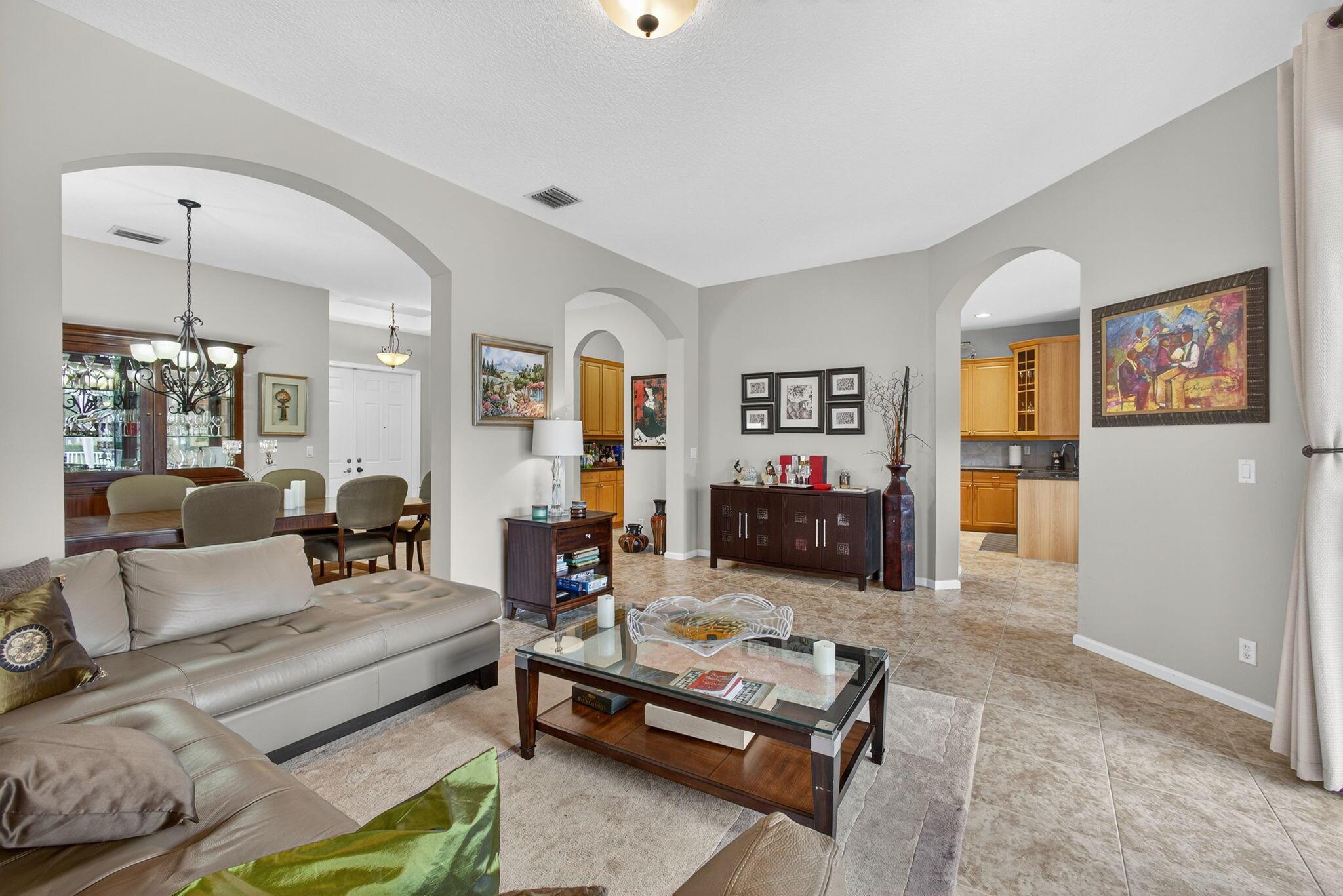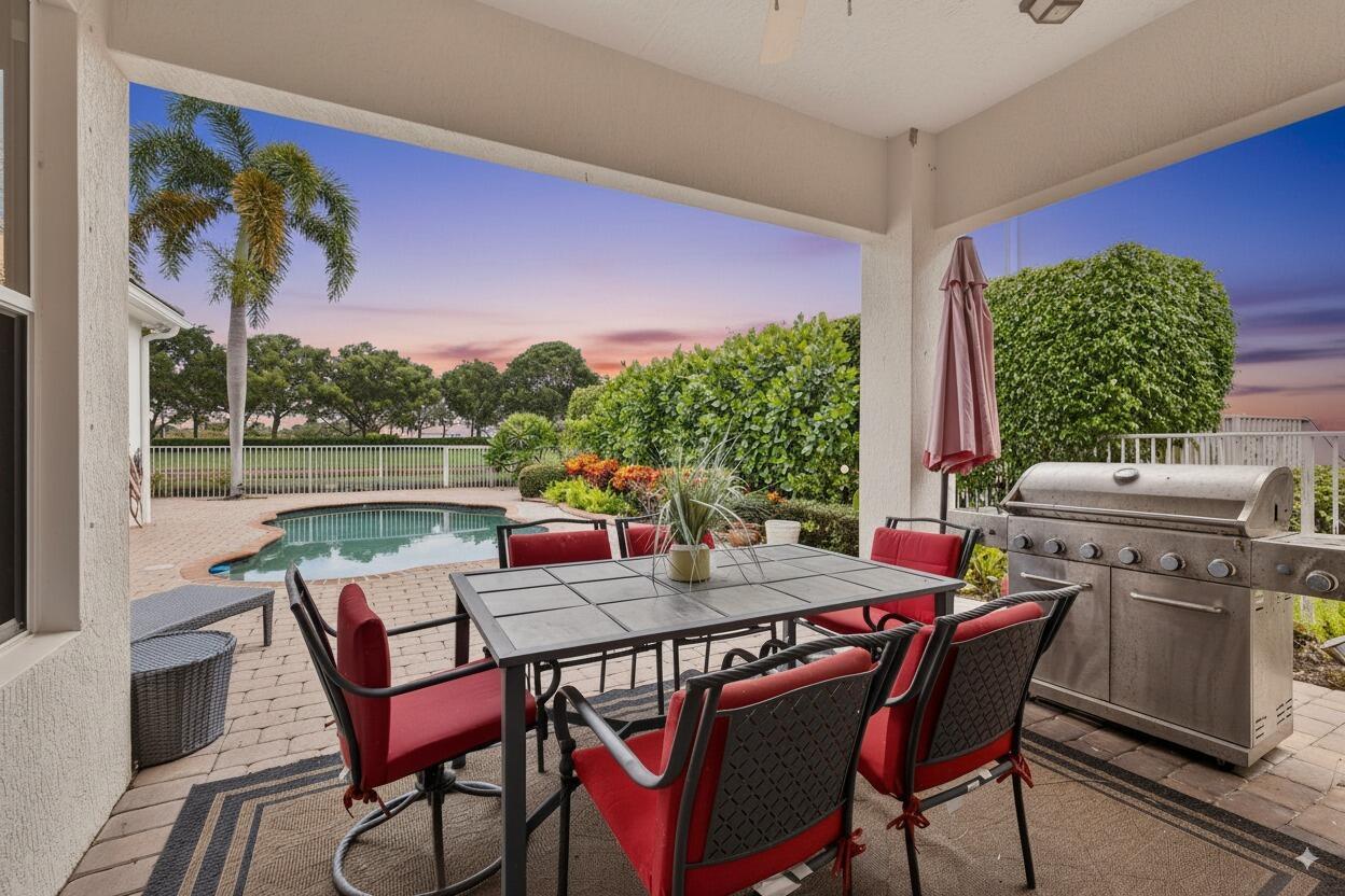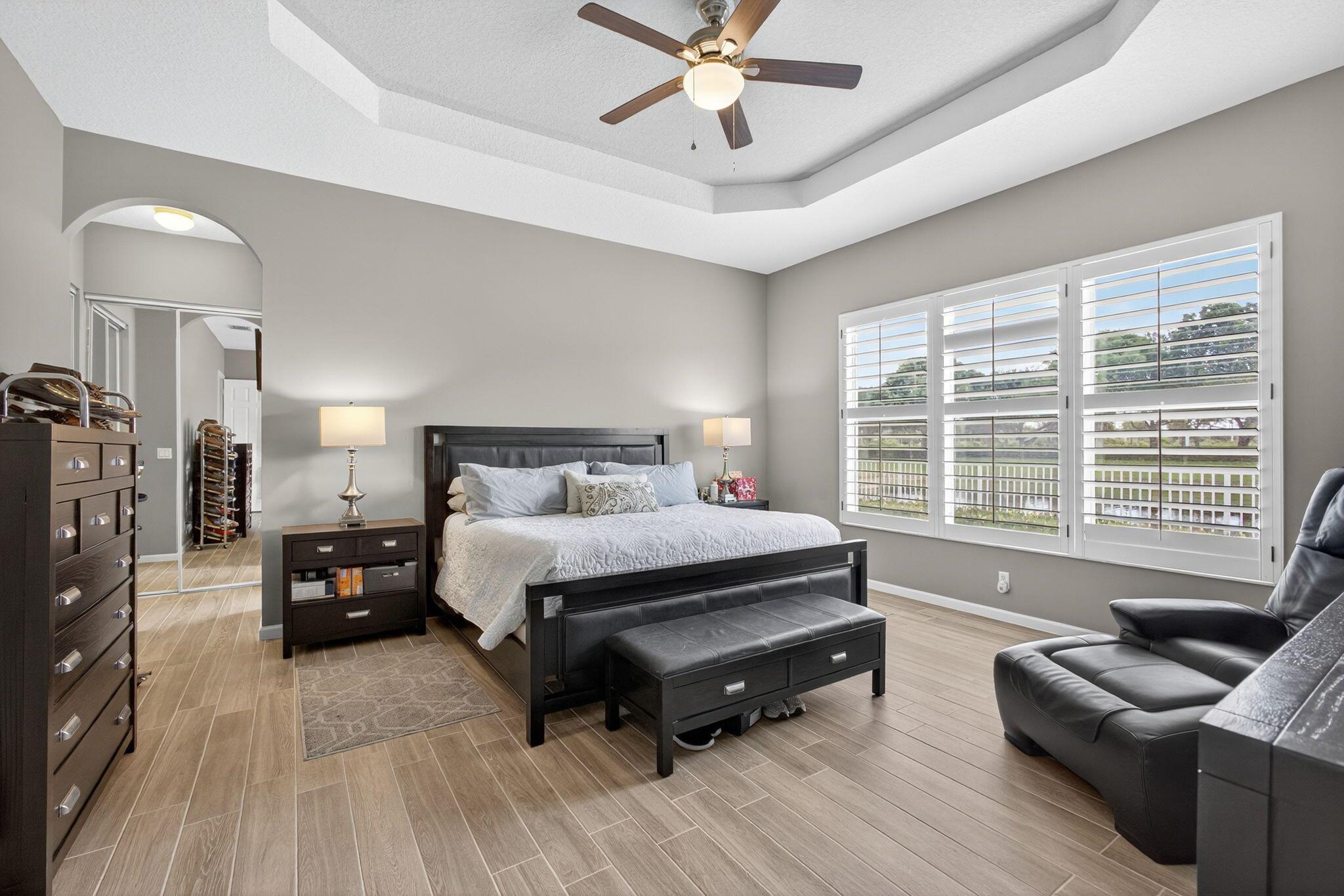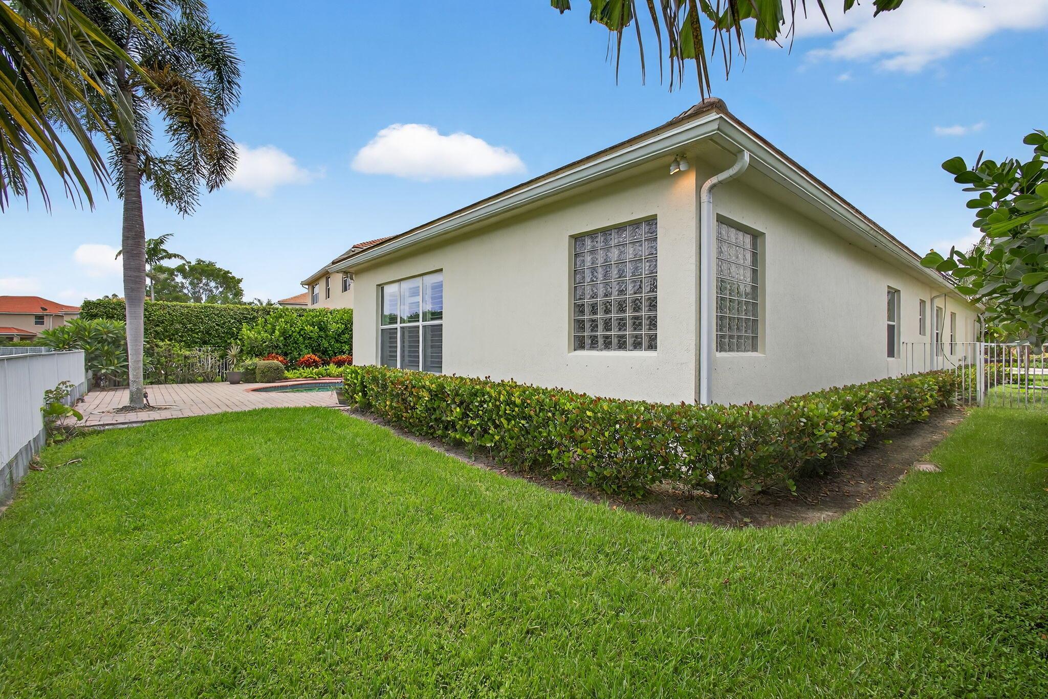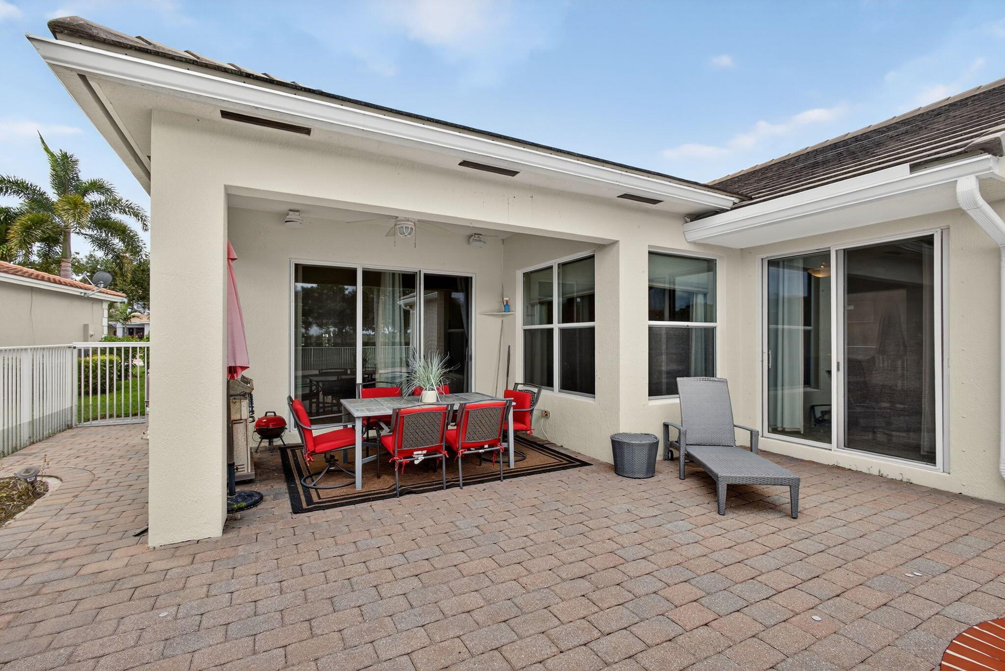 Welcome to this impeccably maintained 5 bedroom, 3 bathroom, 3 car garage estate, ideally situated on a private cul-de-sac in the exclusive Bay Tree enclave of Palm Beach Plantation in Royal Palm Beach, Florida. This elegant lakefront residence offers a private pool, tranquil water views, and exceptional curb appeal with a circular brick-paver driveway, manicured tropical landscaping, and an oversized garage. Recent upgrades include a 2023 roof, 2 A/C units installed in 2021, and a hot water heater from 2015. The roof was professionally power washed in July 2025, reflecting the home's meticulous upkeep and move-in-ready appeal.