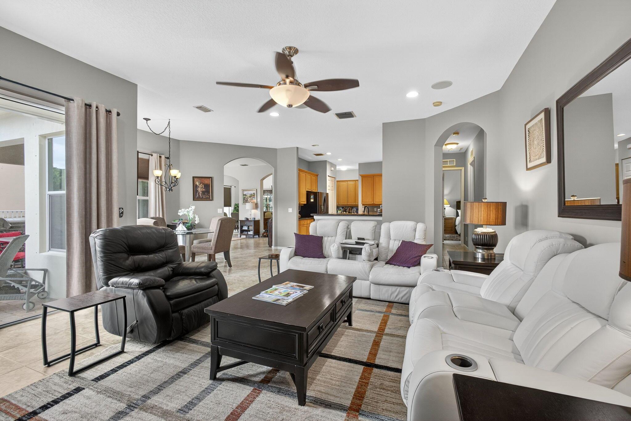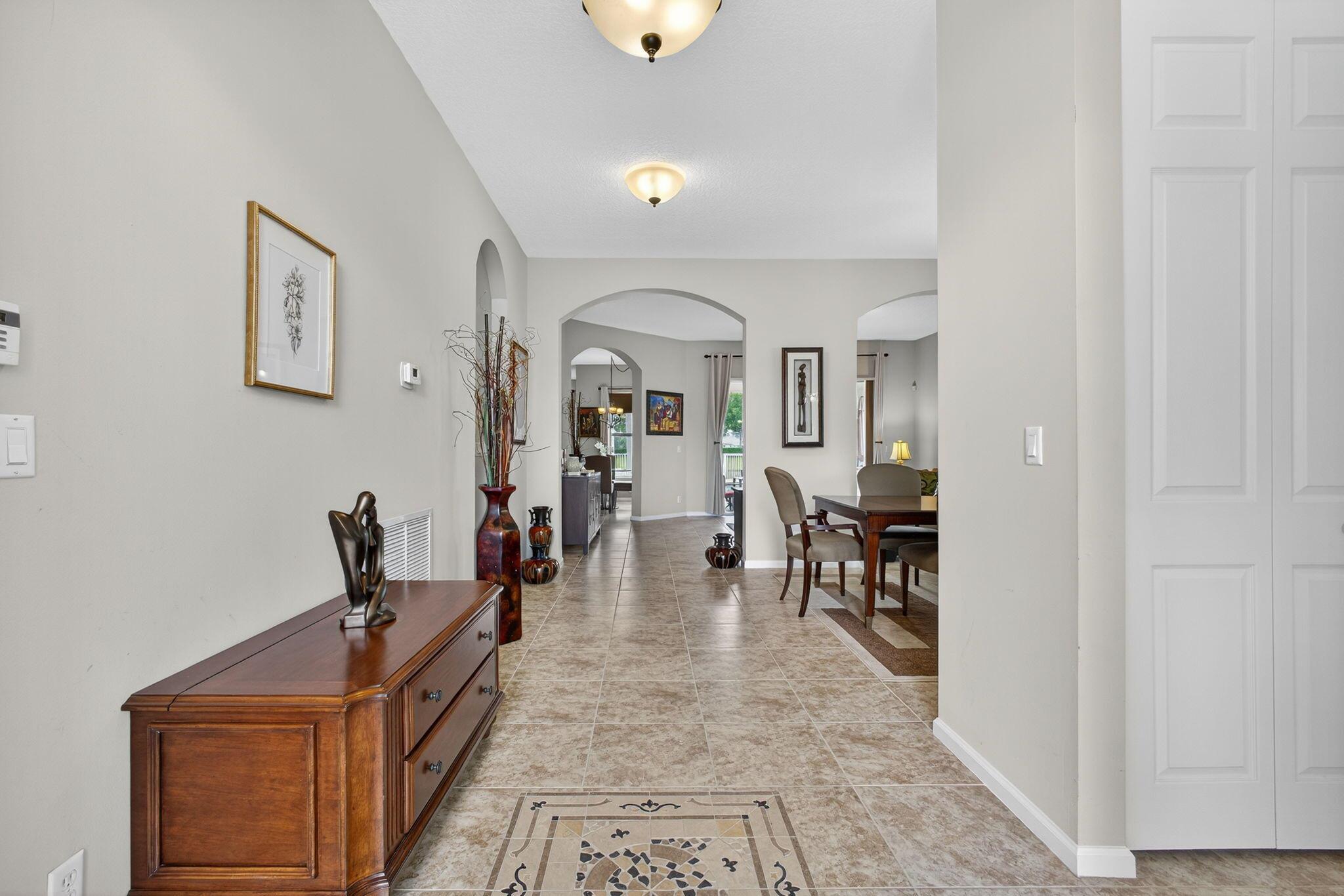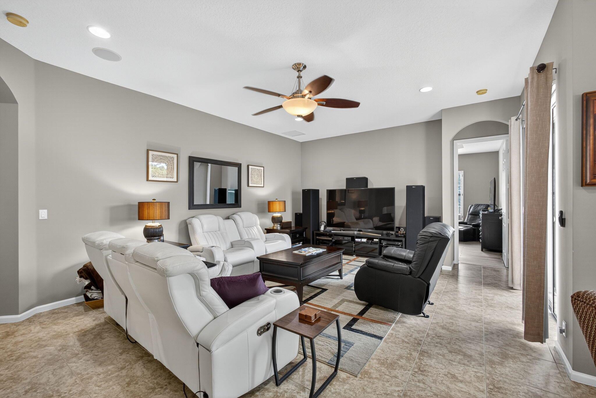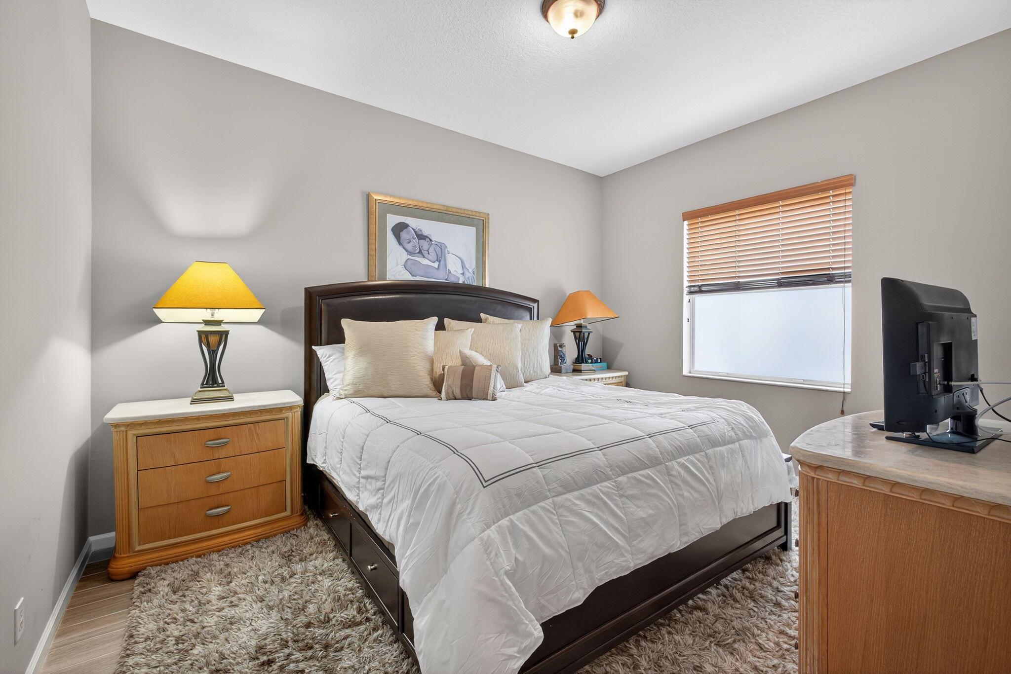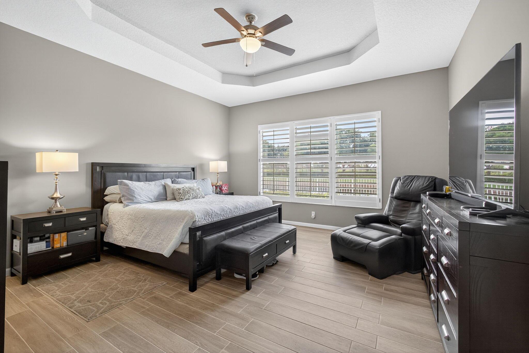 Welcome to this impeccably maintained 5 bedroom, 3 bathroom, 3 car garage estate, ideally situated on a private cul-de-sac in the exclusive Bay Tree enclave of Palm Beach Plantation in Royal Palm Beach, Florida. This elegant lakefront residence offers a private pool, tranquil water views, and exceptional curb appeal with a circular brick-paver driveway, manicured tropical landscaping, and an oversized garage. Recent upgrades include a 2023 roof, 2 A/C units installed in 2021, and a hot water heater from 2015. The roof was professionally power washed in July 2025, reflecting the home's meticulous upkeep and move-in-ready appeal.