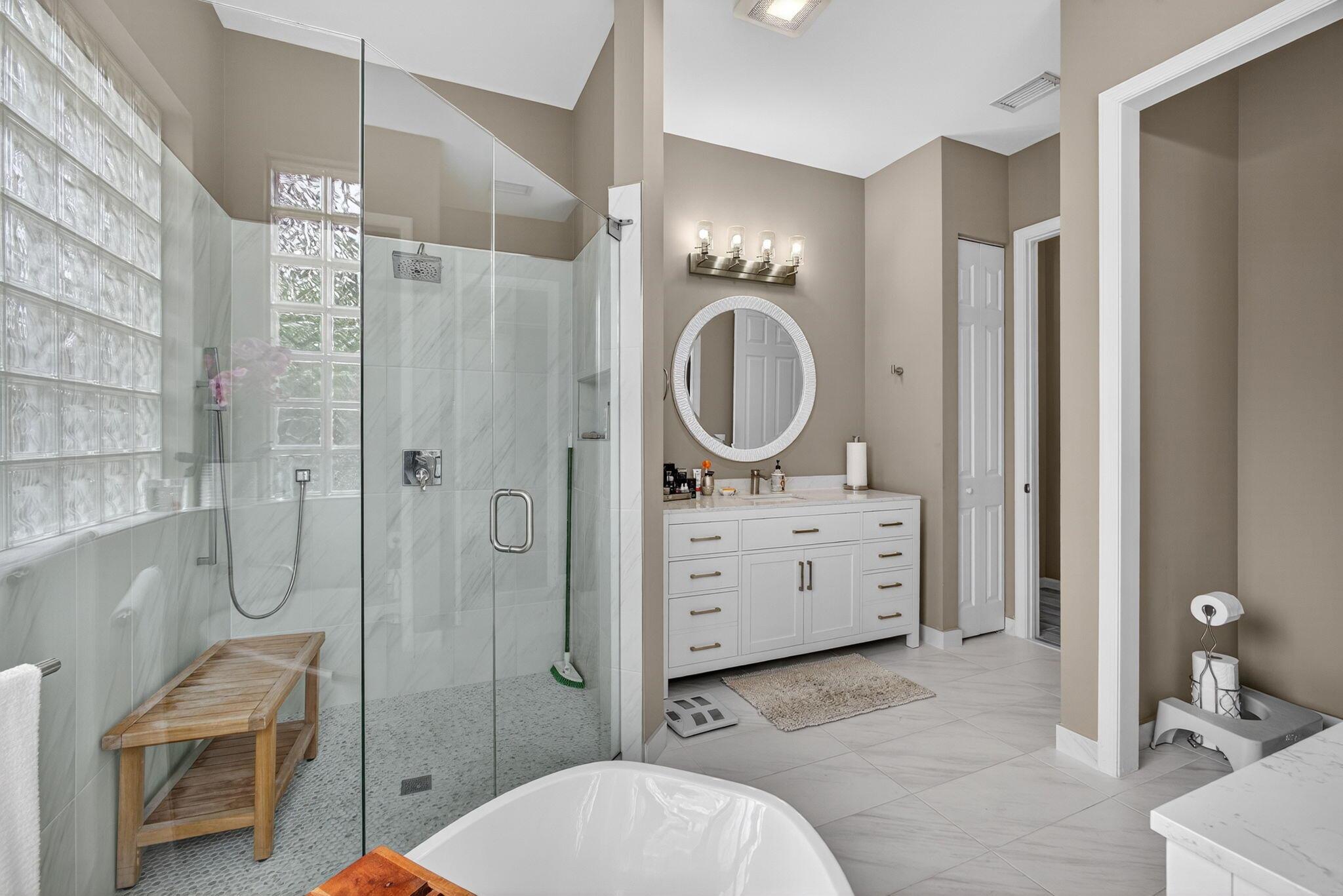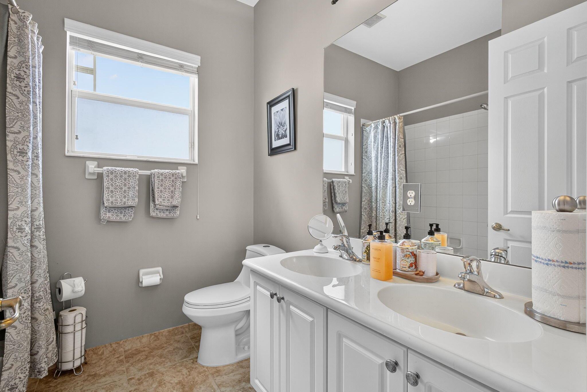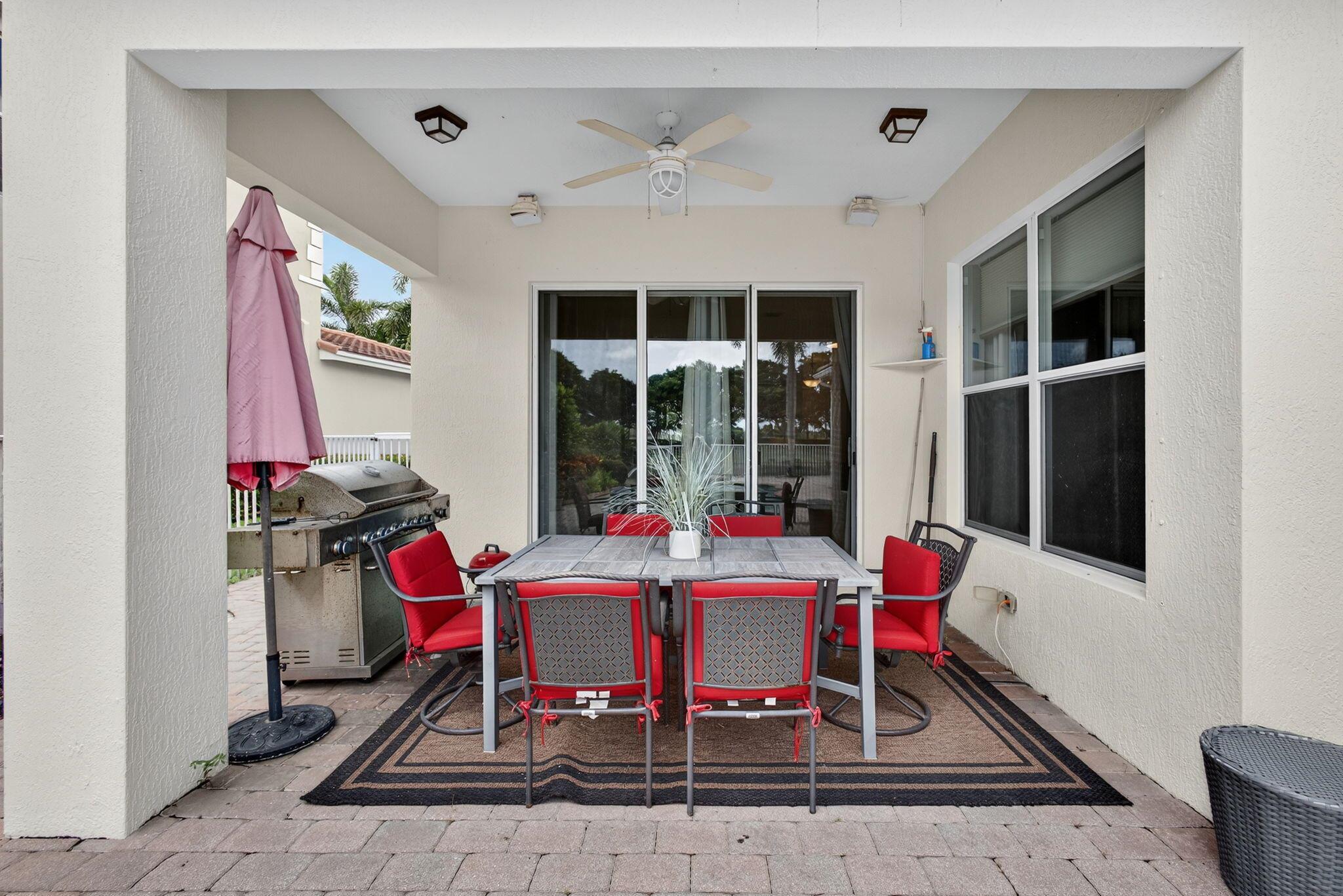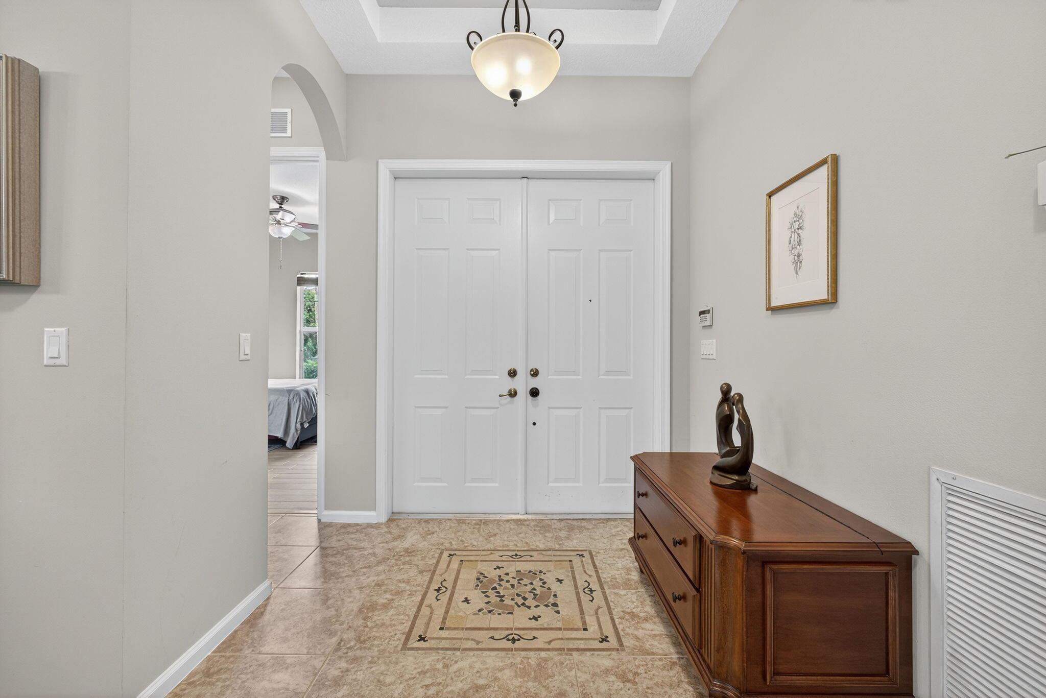Welcome to this impeccably maintained 5 bedroom, 3 bathroom, 3 car garage estate, ideally situated on a private cul-de-sac in the exclusive Bay Tree enclave of Palm Beach Plantation in Royal Palm Beach, Florida. This elegant lakefront residence offers a private pool, tranquil water views, and exceptional curb appeal with a circular brick-paver driveway, manicured tropical landscaping, and an oversized garage. Recent upgrades include a 2023 roof, 2 A/C units installed in 2021, and a hot water heater from 2015. The roof was professionally power washed in July 2025, reflecting the home's meticulous upkeep and move-in-ready appeal.