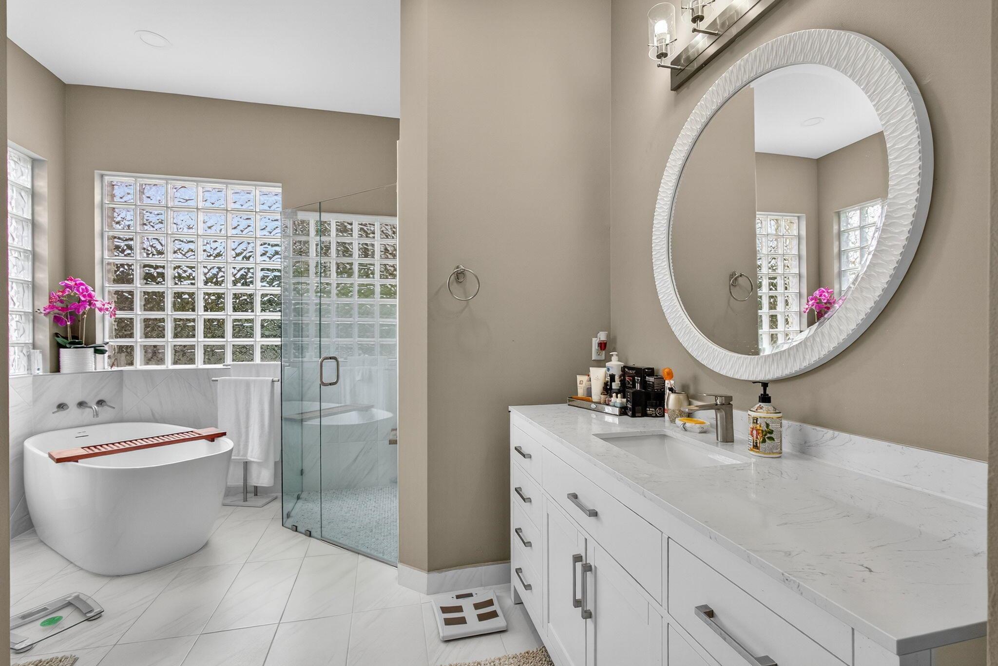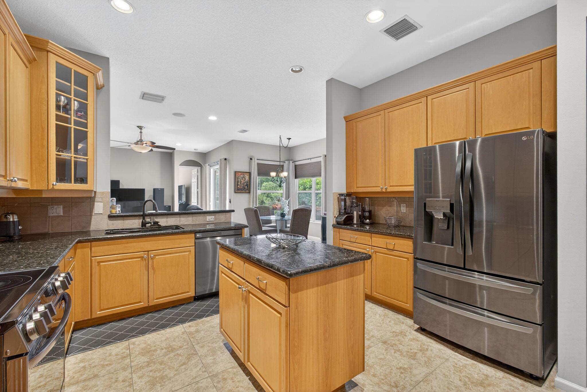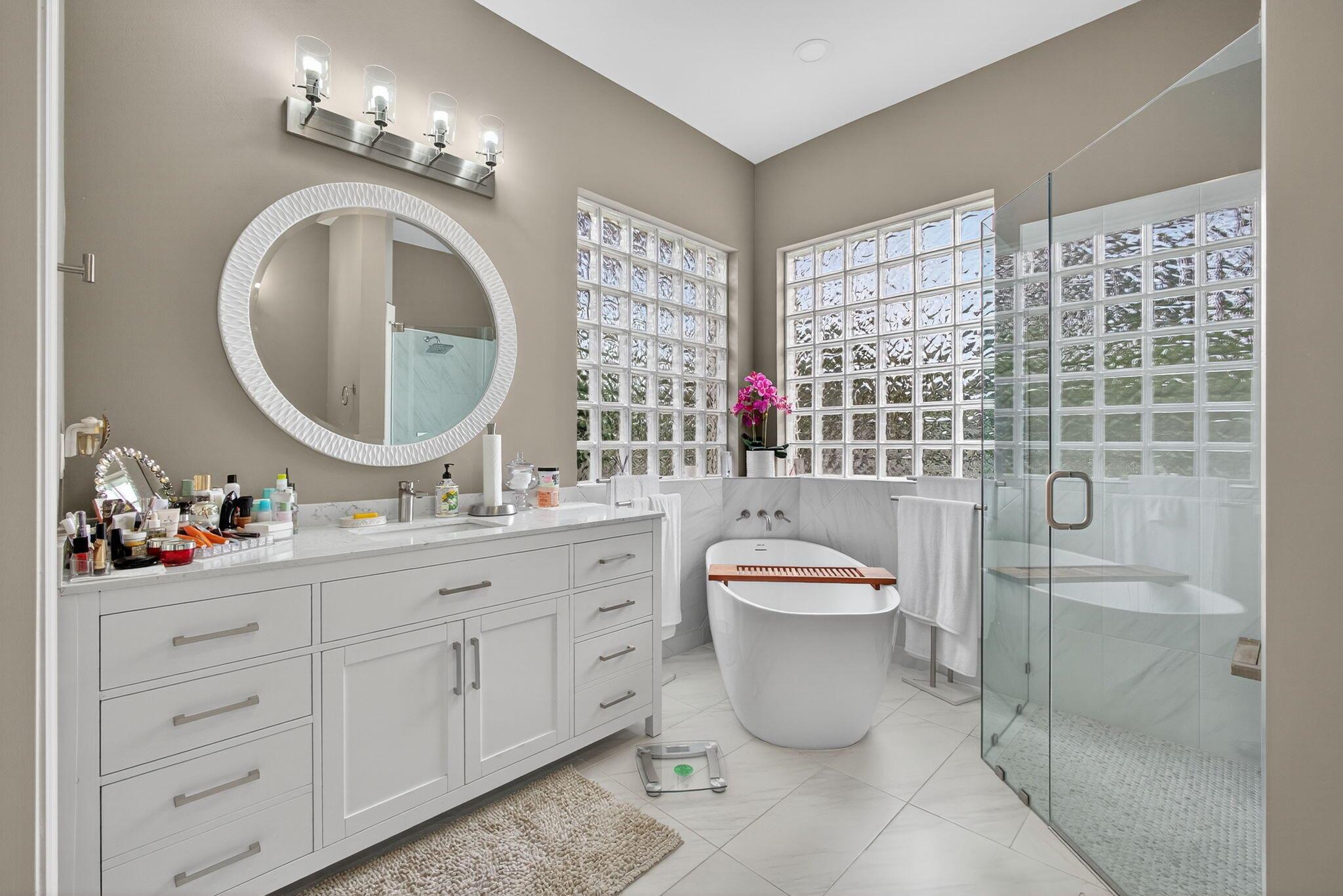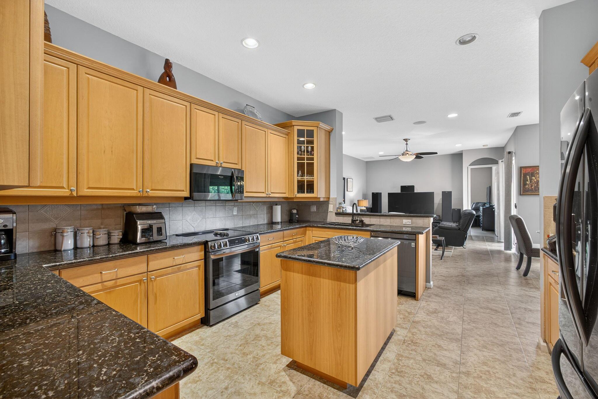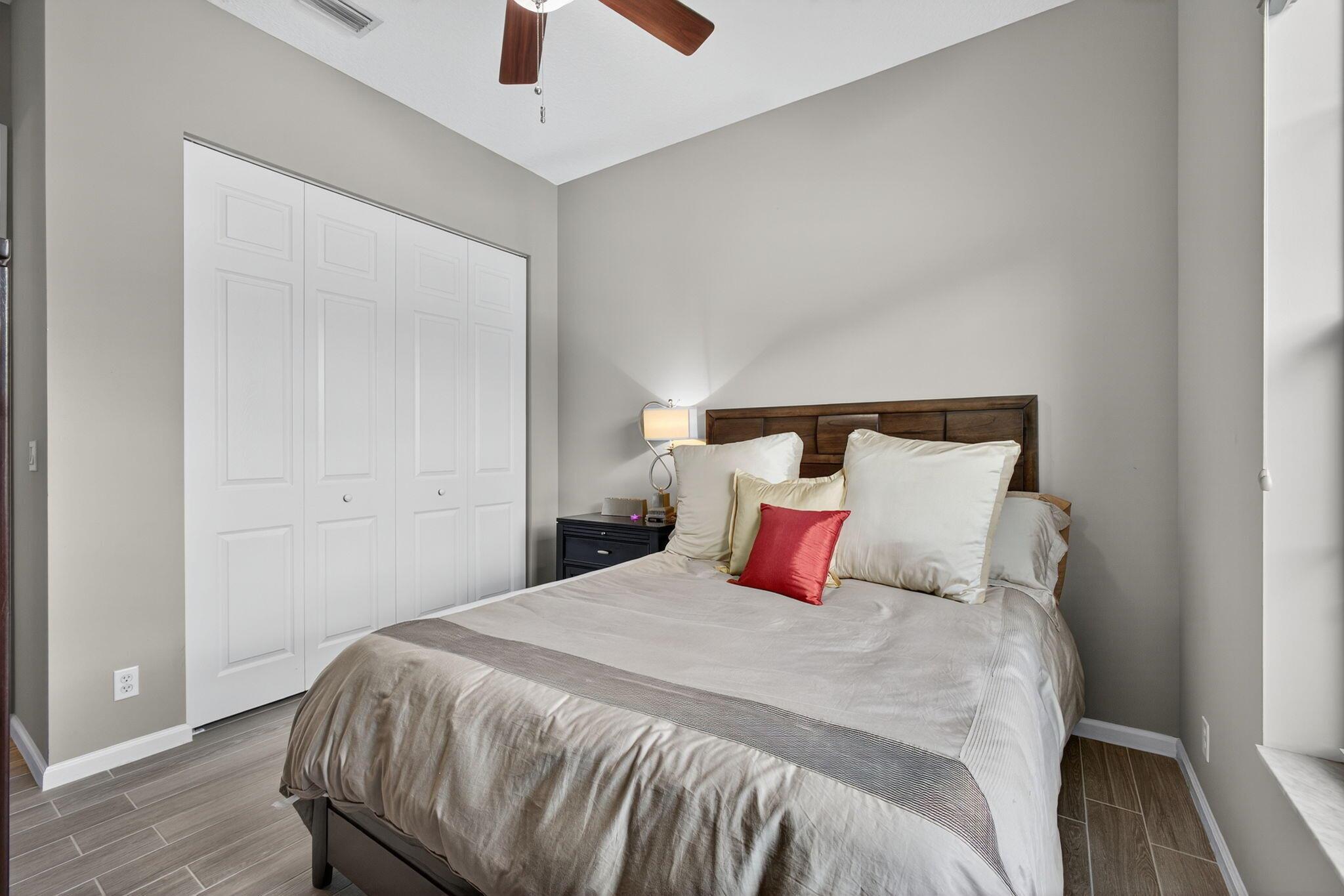 Welcome to this impeccably maintained 5 bedroom, 3 bathroom, 3 car garage estate, ideally situated on a private cul-de-sac in the exclusive Bay Tree enclave of Palm Beach Plantation in Royal Palm Beach, Florida. This elegant lakefront residence offers a private pool, tranquil water views, and exceptional curb appeal with a circular brick-paver driveway, manicured tropical landscaping, and an oversized garage. Recent upgrades include a 2023 roof, 2 A/C units installed in 2021, and a hot water heater from 2015. The roof was professionally power washed in July 2025, reflecting the home's meticulous upkeep and move-in-ready appeal.
