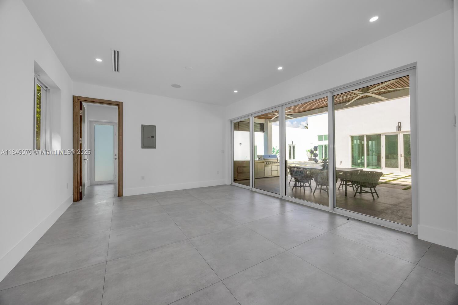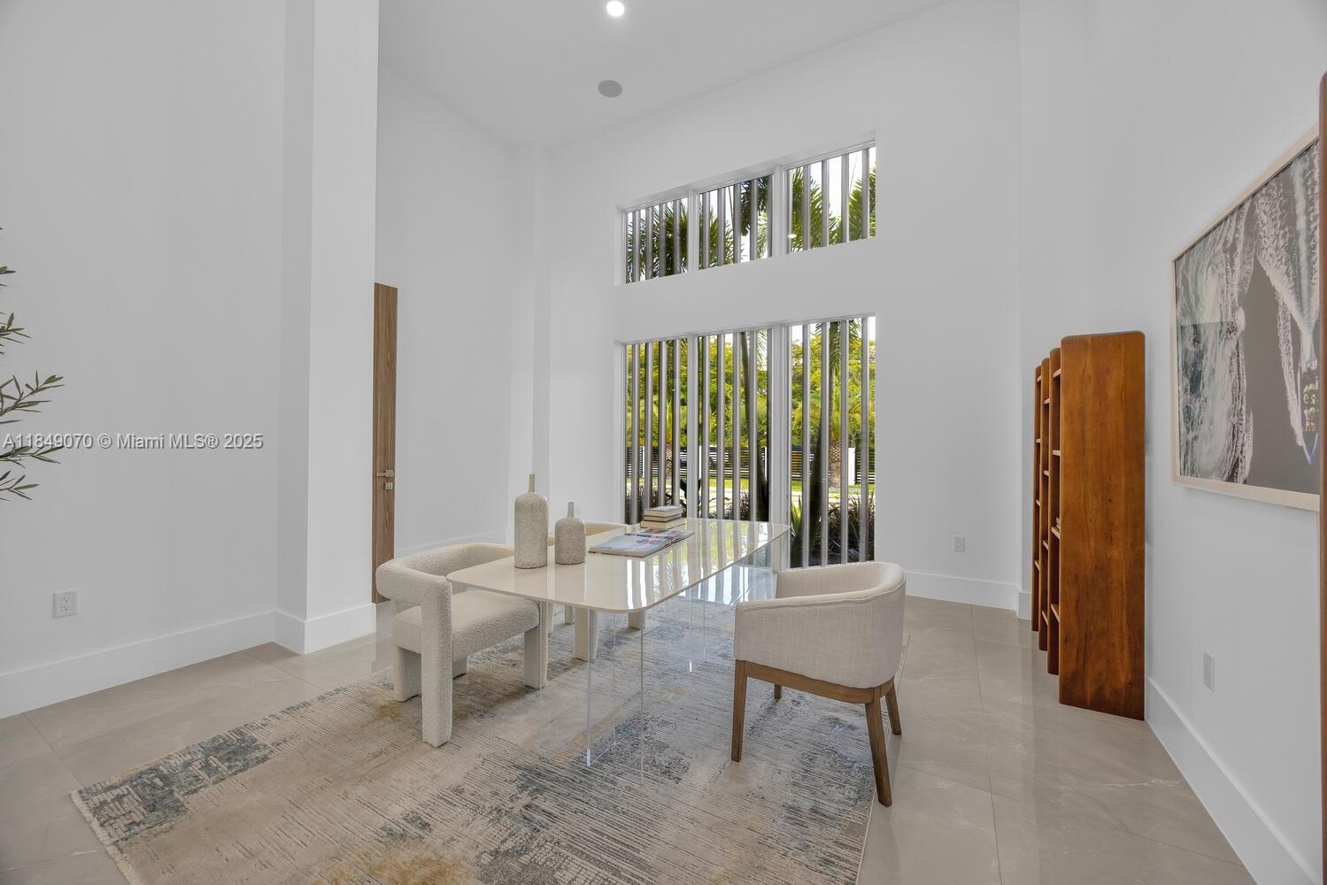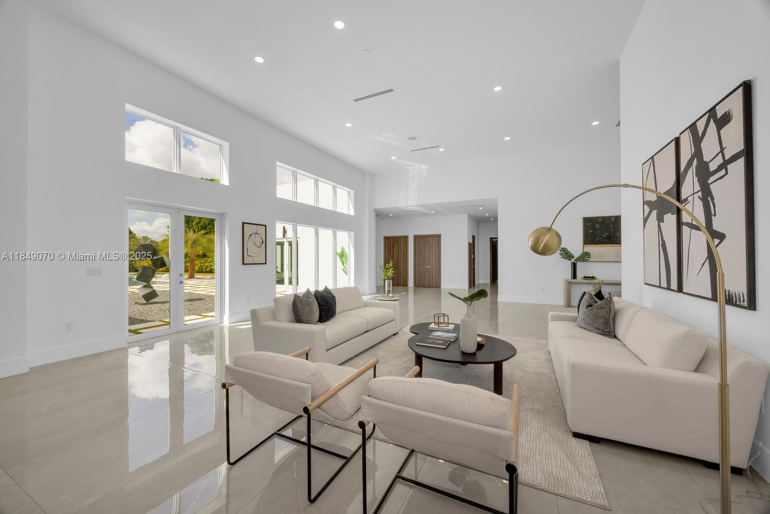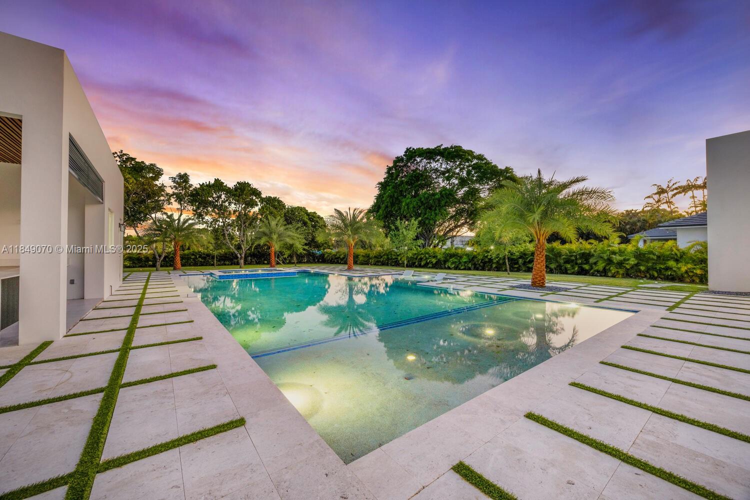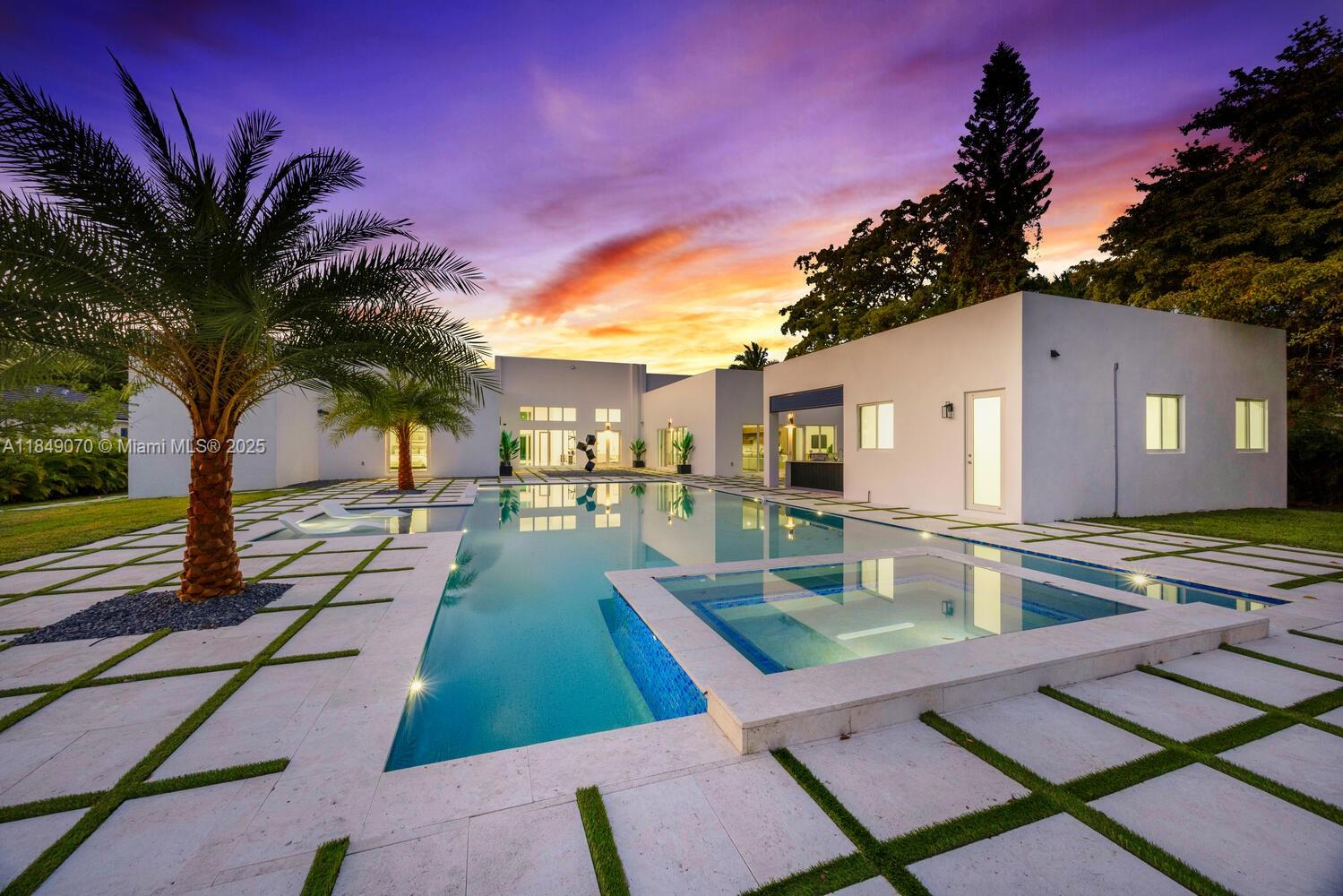 Stunning new construction one-story estate on a private 38,500 sqft lot with a separate guest house, offering the perfect blend of modern luxury & everyday comfort. This meticulously crafted residence features 4 spacious bedrooms, a versatile den, 5 designer bathrooms & soaring 16-ft ceilings that enhance the expansive open layout. Floor-to-ceiling windows bathe the interiors in natural light, highlighting a sleek European-style kitchen with premium finishes, large island & stylish wet bar. The resort-inspired outdoor space includes a sparkling pool, spa & an impressive 1,000 sqft flex room or potential 1-bedroom, 1-bath guest house. A 3-car garage with ample storage completes this thoughtfully designed home, perfect for those seeking sophistication, space & the ease of modern living.