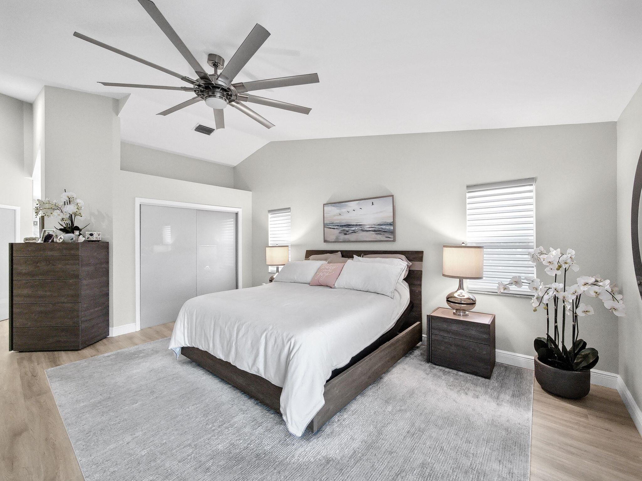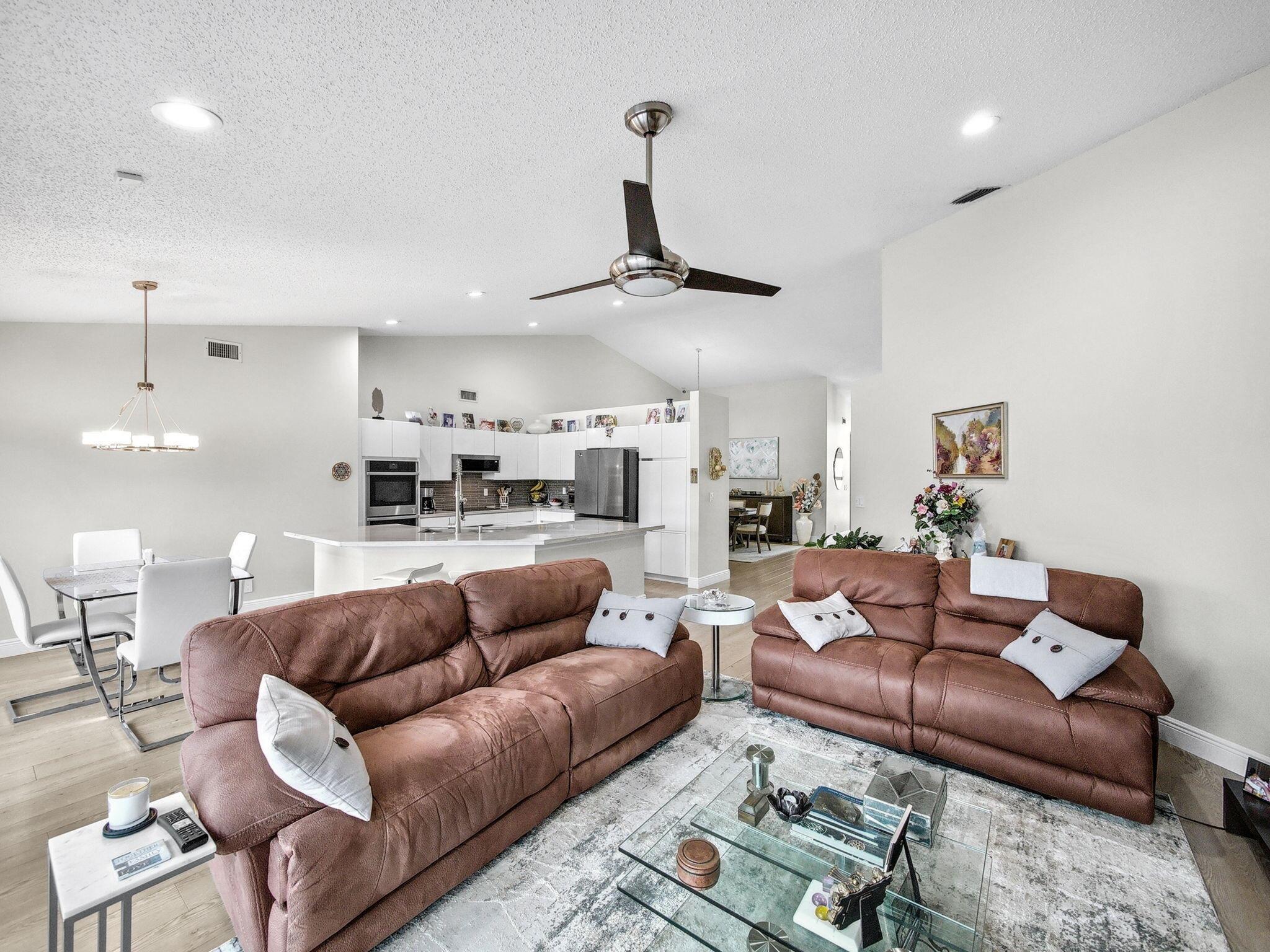 Welcome to your dream home in a sought-after gated community. This beautifully updated residence, Huge Price Improvement! Unbelievable value for this true 4 bedroom, 2 and a half bath. This home has a newer 2017 roof, impact glass windows, and freshly painted inside and out. This home is move-in ready and packed with premium upgrades.Inside, you'll find motorized blinds, a whole-house water filtration system, and top of the line laminate flooring throughout. The custom built-in wall unit in the family room adds style and function as well as the elegant custom built in wall unit in the living room.The gourmet kitchen is a chef's delight, complete with newer appliances, including an induction cooktop, double wall oven, and quartz countertops. The primary suite has been (read more)