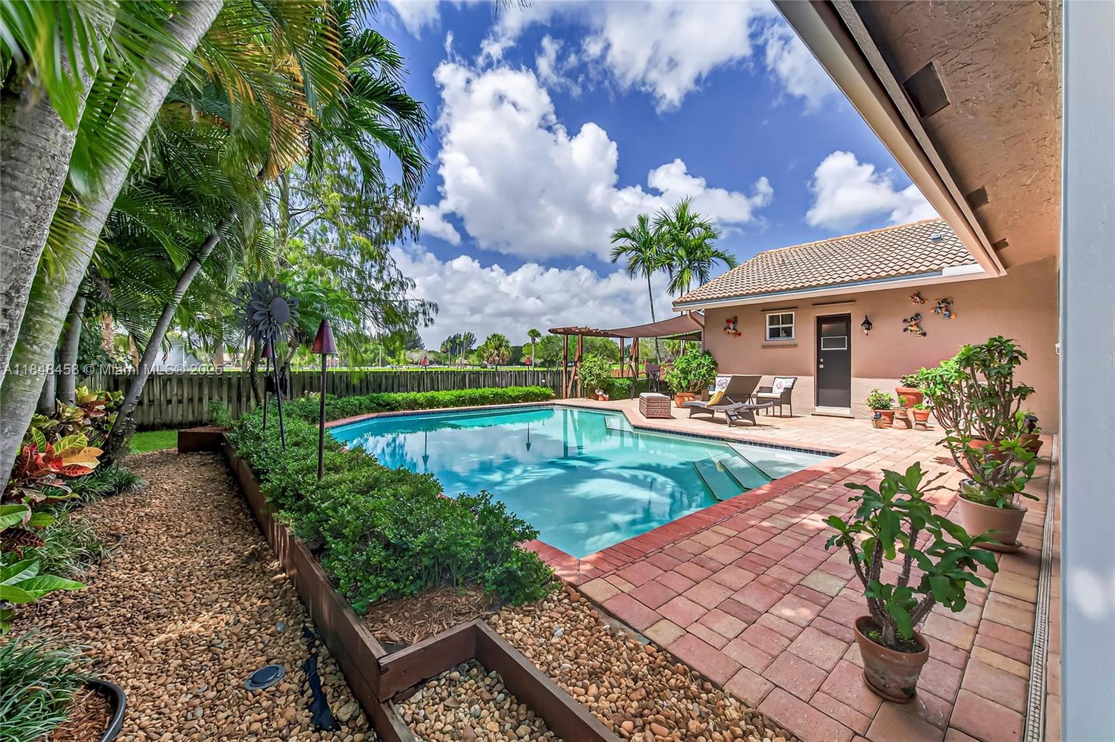 Welcome to your dream home in Plantation Acres! This 4-bed, 2.5-bath pool home boasts a modern split layout, newly painted inside and out, and wood-look porcelain tile. The updated kitchen features KitchenAid appliances, designer cabinets, and exotic granite. Enjoy a lushly landscaped, fenced backyard—perfect for entertaining—with a paved patio, screened enclosure, and views of North Acres Park. Additional perks include full hurricane protection, a 1/4-acre lot, no HOA, and a prime location near the Equestrian Center, FLL Airport, beaches, top schools, major highways, Sawgrass Mills Mall, Amerant Bank Arena, dining, and entertainment.