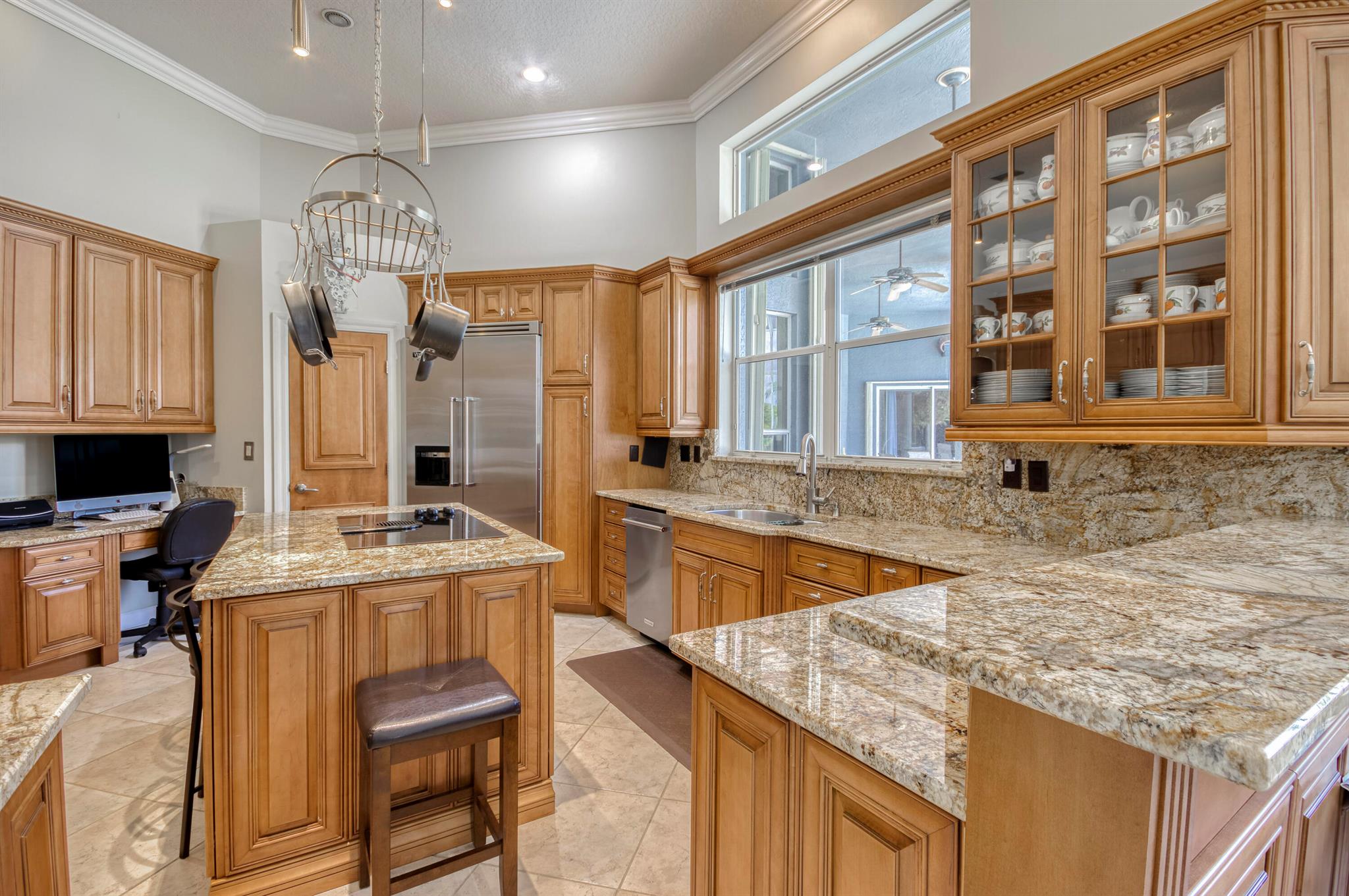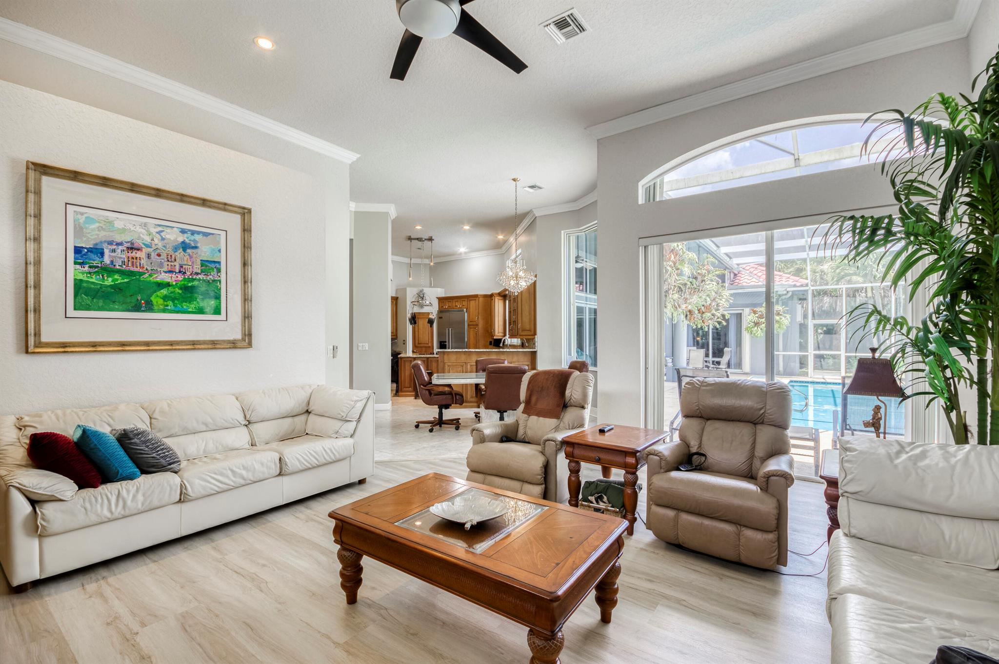 Wonderful open floor plan built on cul-de-sac overlooking wide expanse of golf and lake. Many decorator features, clerestory windows, architectural ceilings.All bedrooms Ensuite!! Kitchen has top-of-the-line appliances and Corian counters. Three-car garage. Three-zone air. Fourth bedroom has separate entrance (lovely for in-law suite). Like-new great family home with expanded fourth bedroom PLUS den/office. Many areas have wide views of lake and 17th tee of Estates Course. Home has many decorator touches starting with porte-cochere and covered entry, plant ledges, and crown moldings.