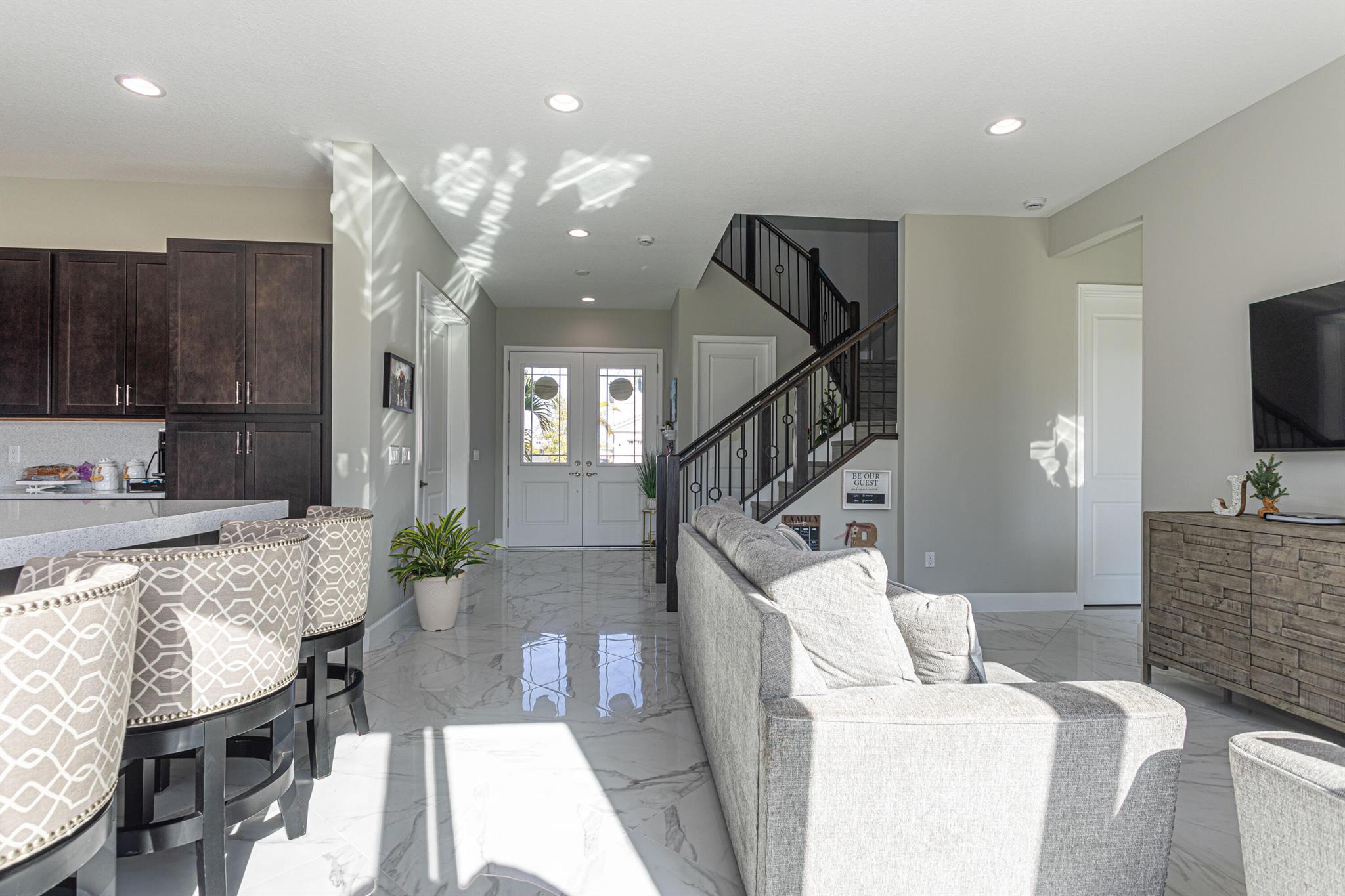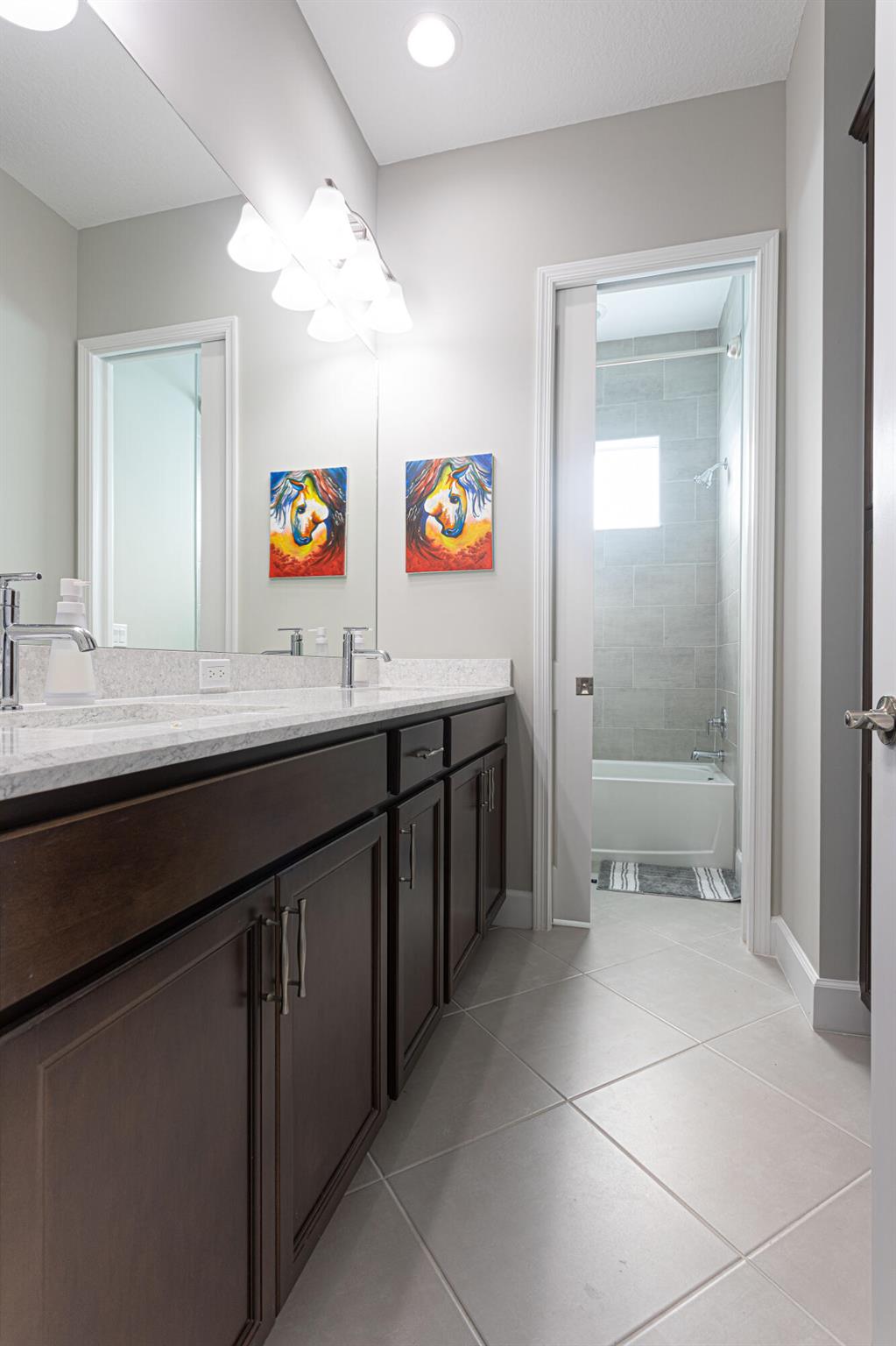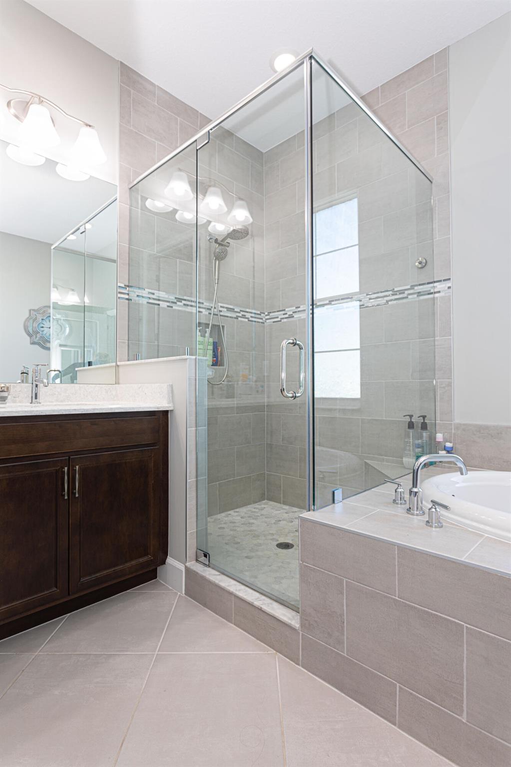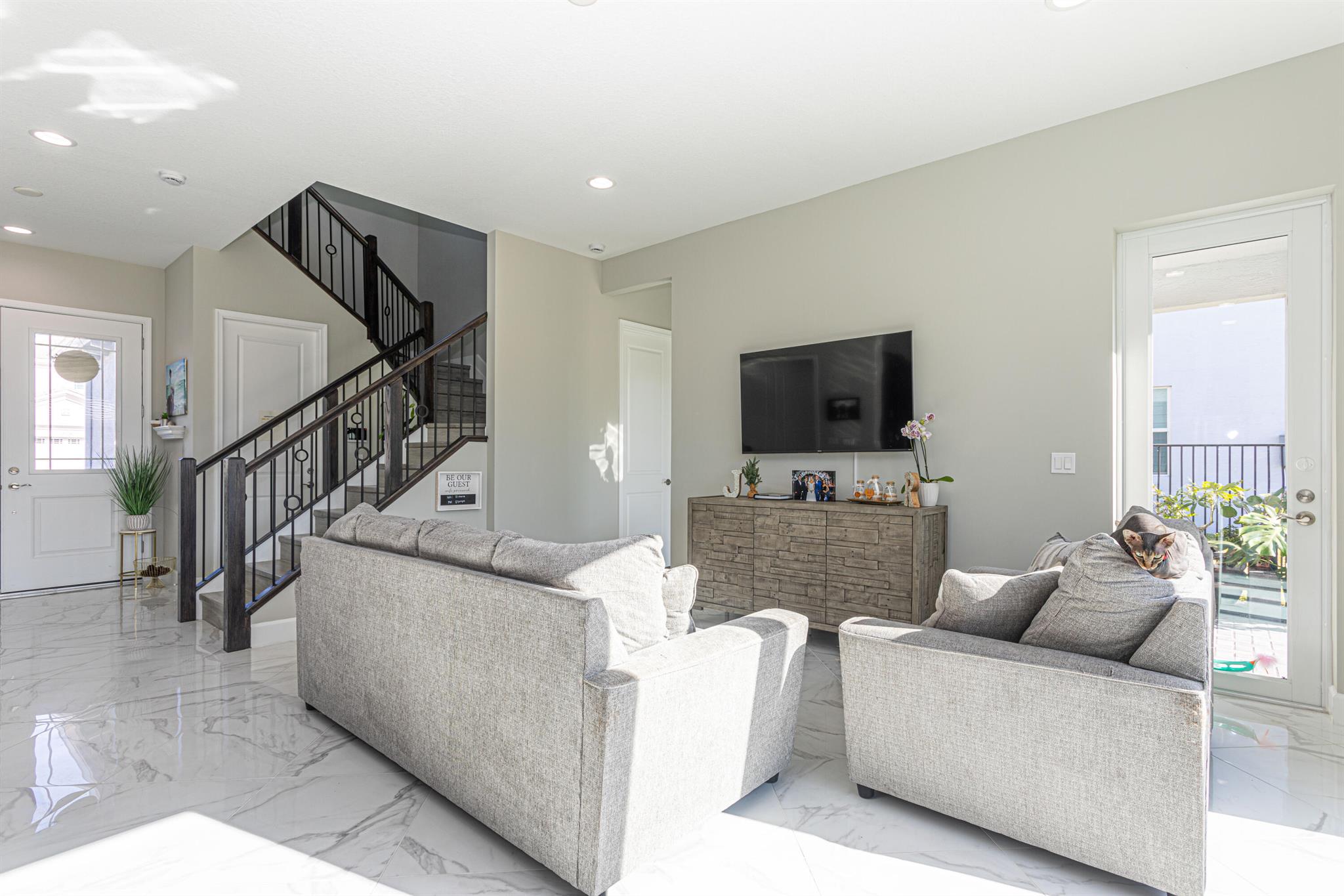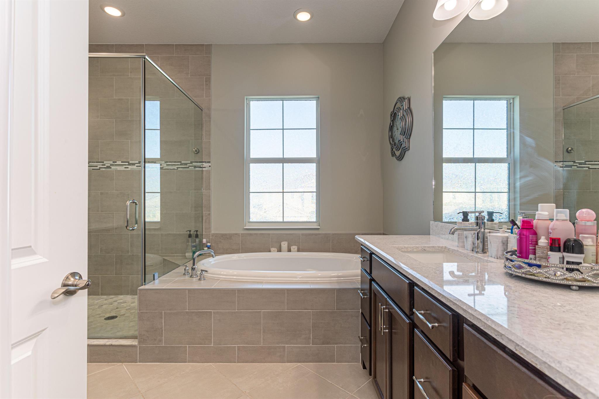 Tons of upgrades on this solid build. Large format porcelain tile throughout 1st floor, Nicely appointed kitchen area with quartz countertops, chefs island, stainless steel appliances, elegant gas cooktop and recess lighting. Formal dining area, Lots of windows and sliding doors provide exceptional lighting in all areas. Large backyard with pool and outdoor activities potential. Laundry room upstairs. Large primary bedroom with tub and separate shower. Community has state of the art pool area that wakes you feel on a resort. Tennis courts, miles and miles of trails. You have to come and see it