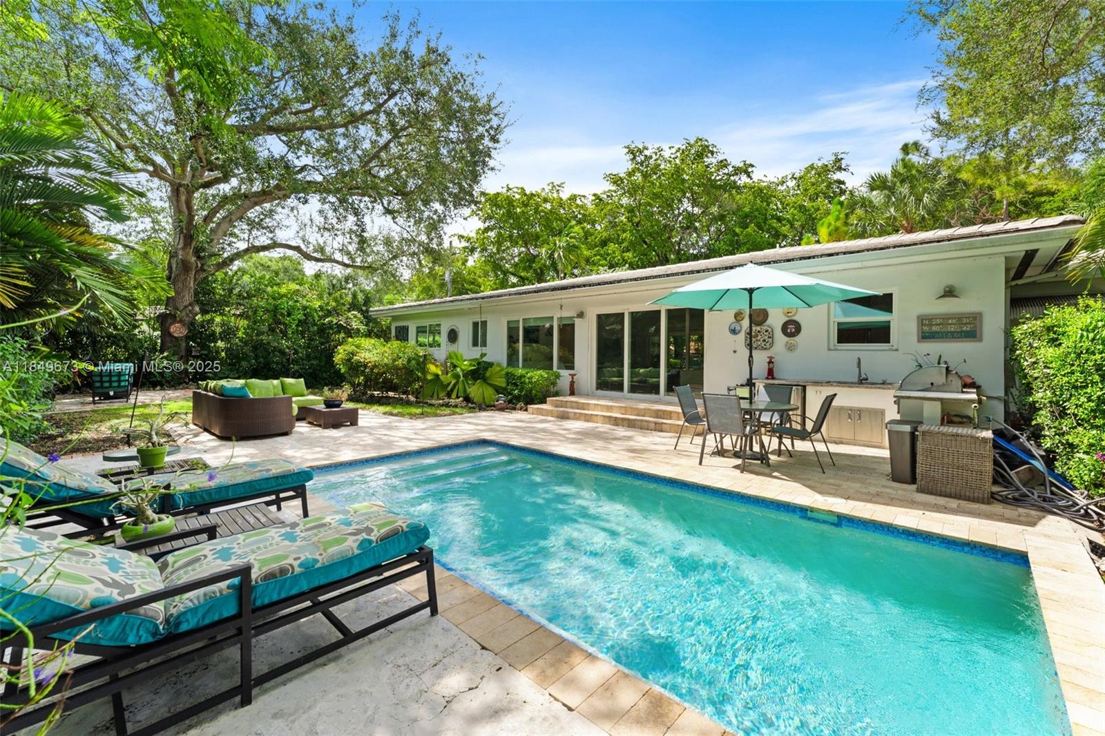 Step into Palm Springs vibes in the heart of Coral Gables. This stylish single-story home offers 3 bedrooms, 3 bathrooms, and 1,771 sqft of living space (per appraiser), all set on an expansive 10,000 sqft double lot. Featuring original terrazzo floors, a newly renovated kitchen, and abundant natural light throughout, the home is both charming and functional. The spacious two-car garage, open layout, and serene tree-lined street make it the perfect blend of comfort and location. Bright, airy, and tucked away on a quiet block—this is Coral Gables living with a modern twist.