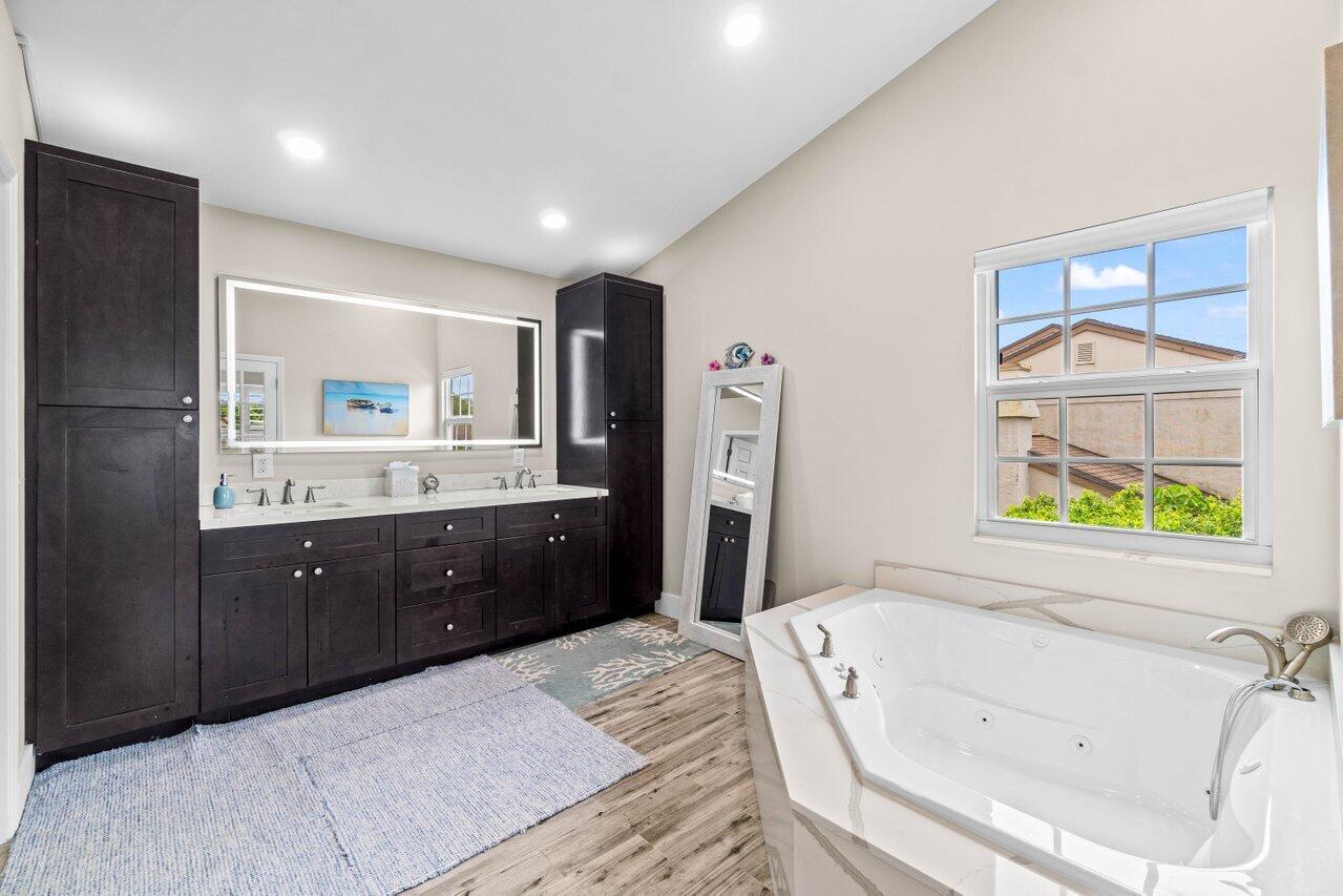 One of the largest lots in Boca Winds! This beautiful 4/2.5 home with 3-car garage, new roof (Nov 2024), new impact sliding doors and new pool installed in 2022, remodeled bathrooms, recessed lighting, new electric panel, and more! One of the lowest HOAs in Boca Raton, only $148/month! Quiet neighborhood! Community features a clubhouse, 2 pools, tennis/basketball courts and 3 playgrounds! Best schools in Boca Raton, rated A+.