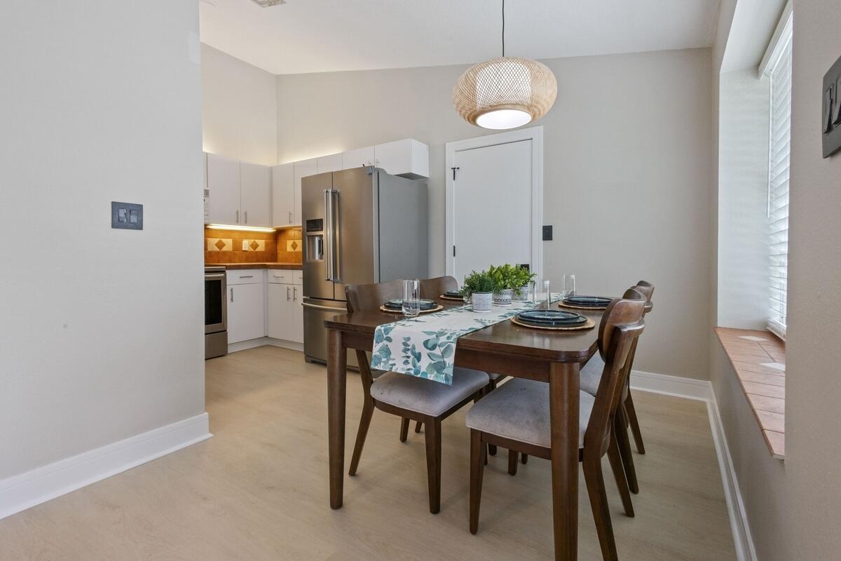 ACT FAST; this stunning 3 bedroom, 2 bathroom Single family home is on a gorgeous corner lot and the entire yard has a new fence. The house has been freshly updated with interior paint, new waterproof vinyl floors with baseboards throughout. The Roof is from 2021 and the fence and exterior paint was updated in 2024. The primary bedroom is larger than the other primary bedrooms of this model. The majority of the Appliances and special touches to the home including tankless water heater and epoxy garage floors, are about 5 years of age. When accessing the backyard, you will notice how spacious and private the corner lot is which allows for an entertaining area as well as adding a pool. The home is a step from a playground and community pool and the house is on the hospital grid!