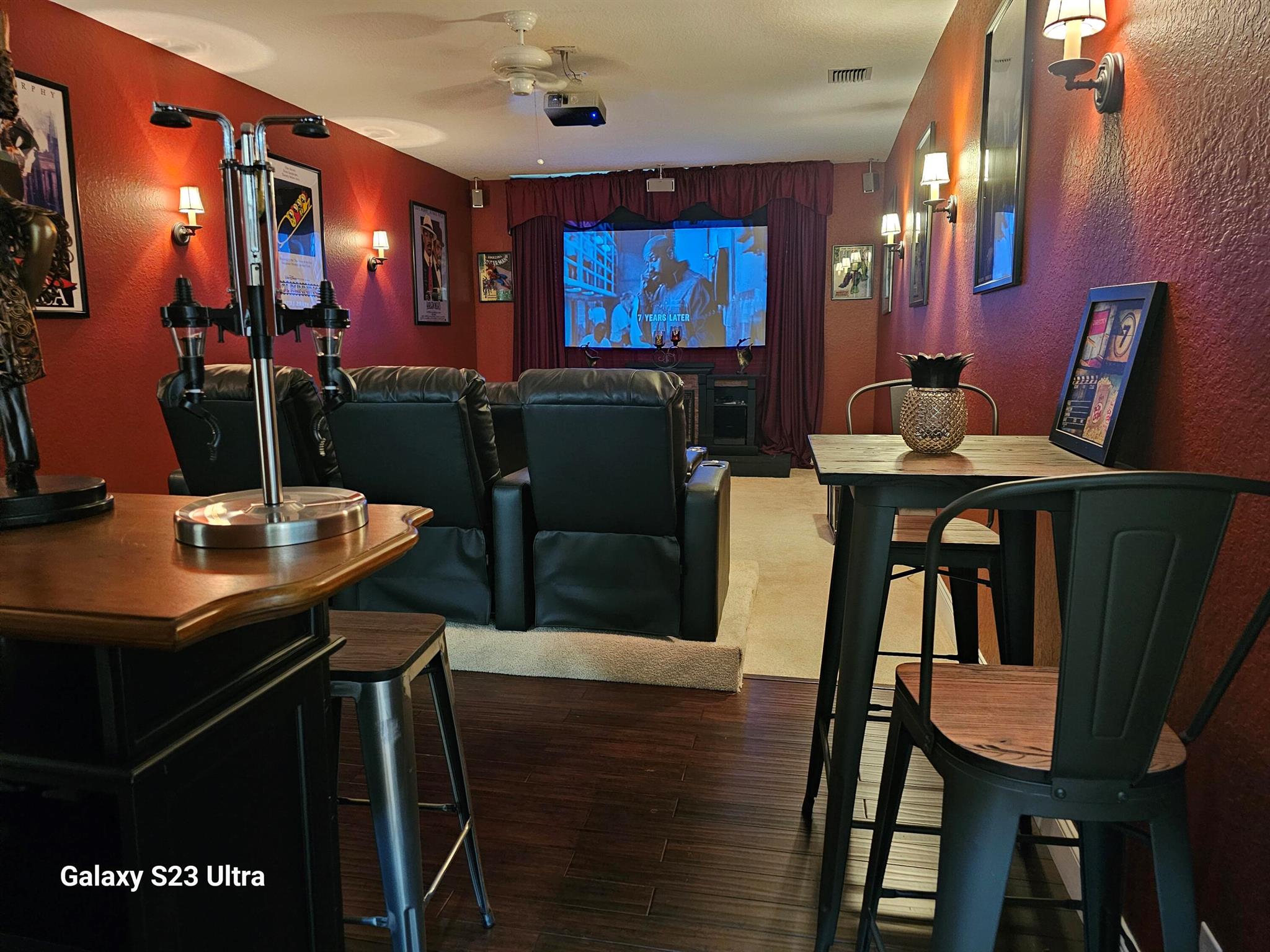 :Step inside and be greeted by the grand double-door entry, soaring ceilings, and expansive windows that frame the majestic lake views. The open-concept living area is perfect for entertaining, with a gourmet kitchen featuring granite countertops, stainless steel appliances, and a spacious breakfast bar. The lavish master suite, located on the first floor, offers a serene retreat with a spa-inspired bathroom, complete with double sinks, a Roman tub, and separate shower. Additional features include: 5 spacious bedrooms + the double-sized bonus room (or 6th bedroom) is now a large movie theater. 3 full bathrooms + a powder room 2nd-floor loft. Covered lakefront patio perfect for alfresco dining. Don't miss this rare opportunity to own this furnished home. schedule a viewing today!!