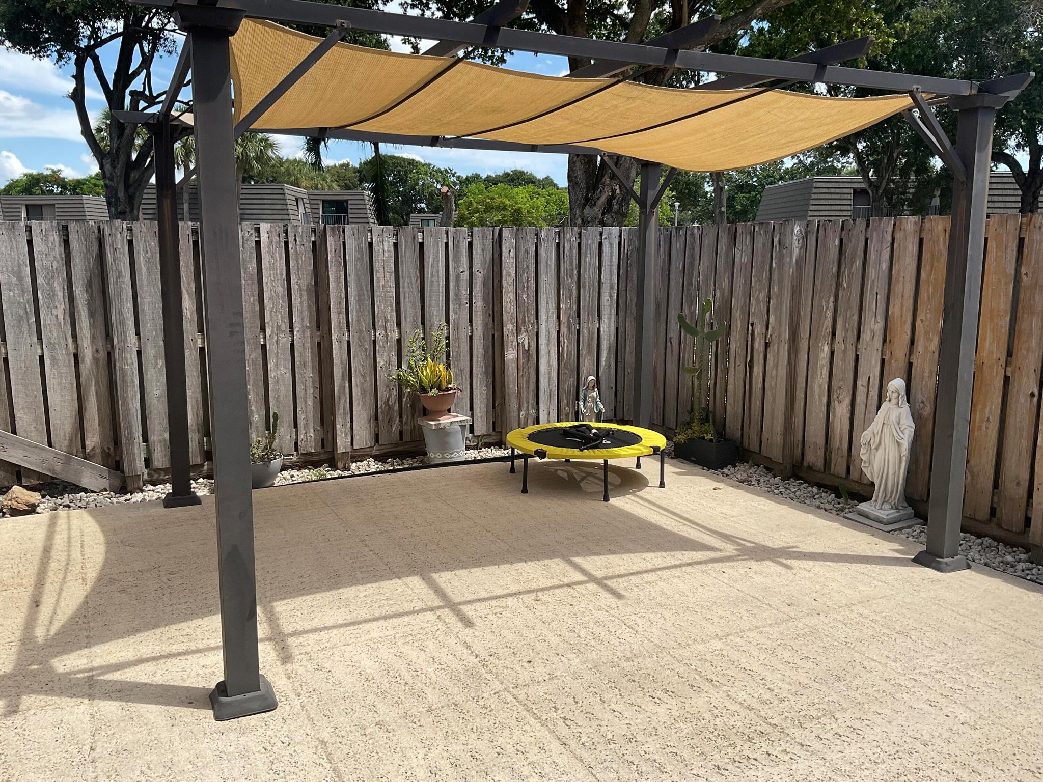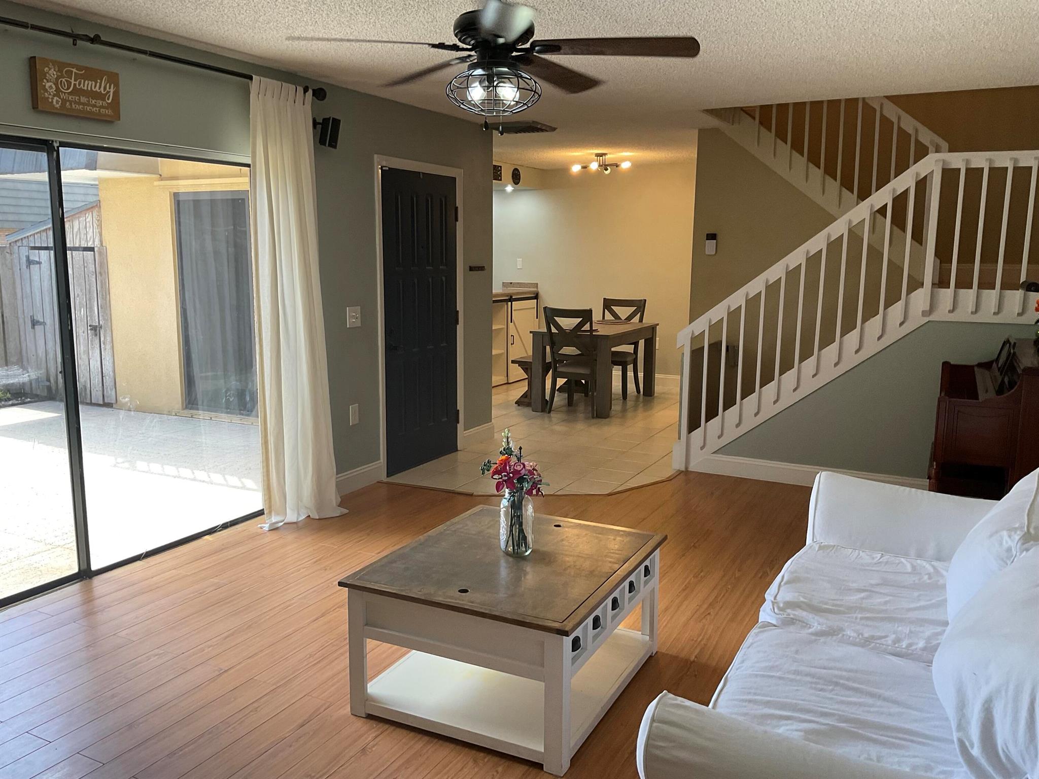 COME AND SEE THIS LOVELY TOWNHOUSE- COMPLETELY UPDATED. Refrigerator, Washer and Dryer are less than one year old, air conditioner less than 5 years old, roof replaced 2024 and fence is due to be replaced next budget year. Kitchen has solid wood cabinets and quartz countertops. Has only had two owners and has never been rented. Custom vanity in bathrooms as well custom built-in in dining room.VILLAGE SANDAWOODS IS NOT AFFECTED BY MILESTONE INSPECTION REQUIREMENTS