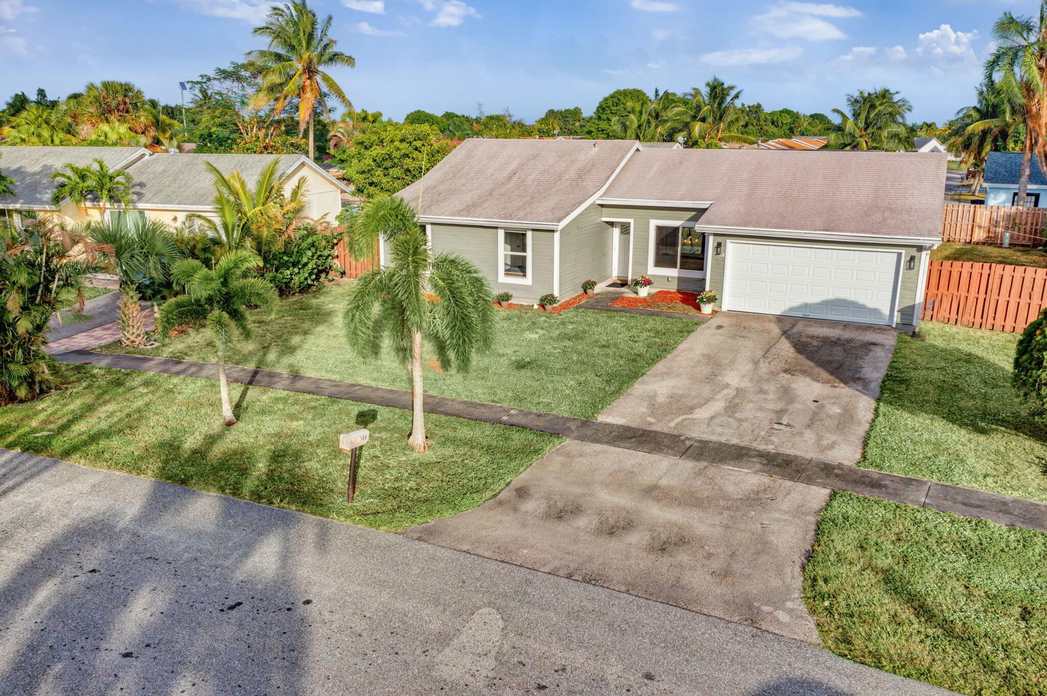 Completely move-in ready 4 bedroom house with a fenced yard and 2-car garage. Kitchen has large island with quartz counters and breakfast bar for bar stools, white soft-close shaker cabinets, stainless steel appliances, subway tile backsplash, and modern lights and cabinet hardware. An open kitchen to TV room concept. Luxury vinyl and tile floors (no carpet). 2022 AC. 2018 Roof. 2022 Impact windows & sliders. 2022 Water Heater. Flat ceilings (no popcorn). Separate dining area with picture window. Incredibly updated bathrooms. Master bedroom has walk-in closet and barn door to bathroom. Community pool is walkable. Excellent area close to shops, restaurants, and parks. GREAT VALUE!