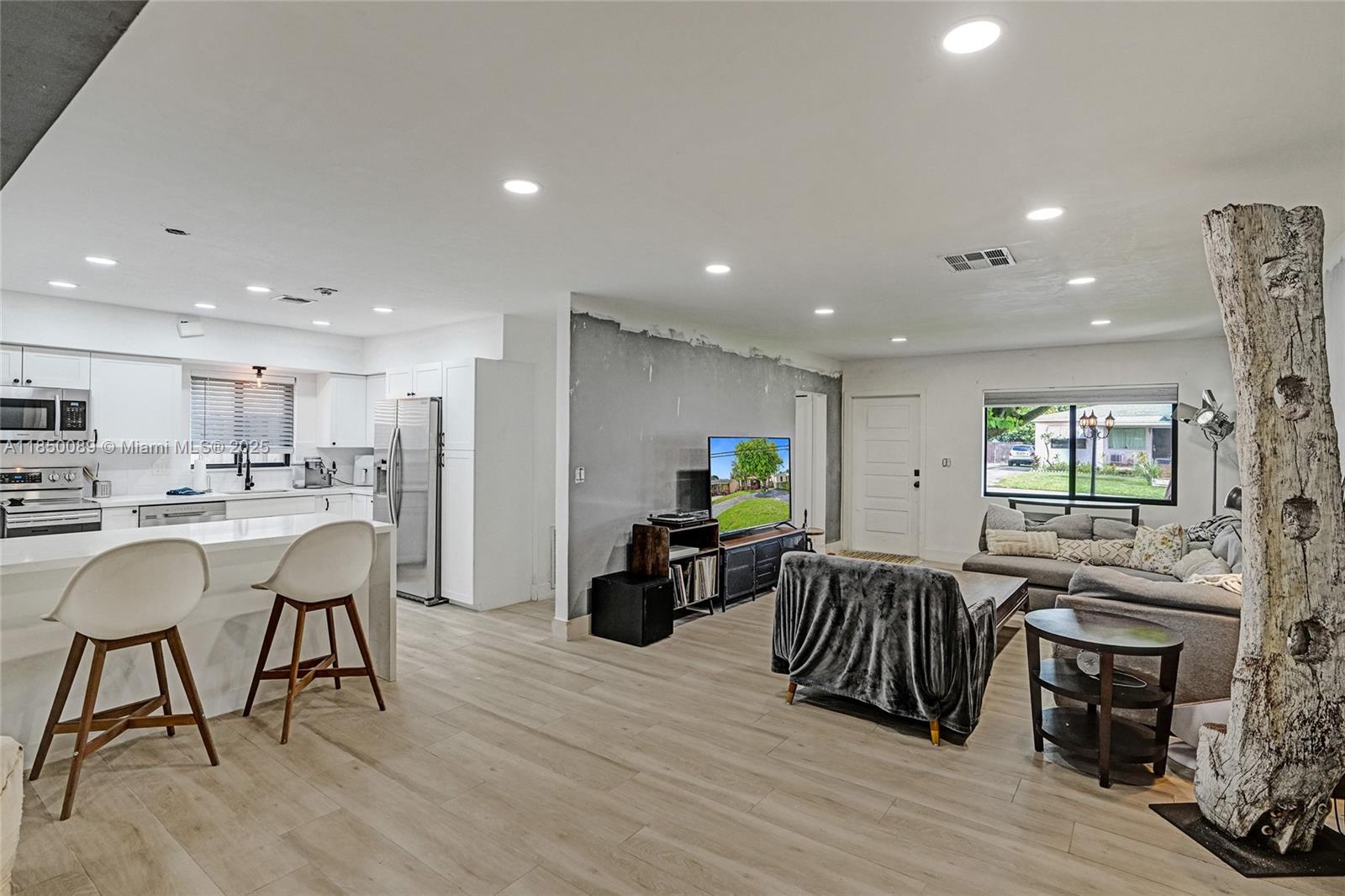 MOTIVATED SELLER - WILL CONSIDER REASONABLE OFFERS -Charming farmhouse-inspired home nestled between Miami Shore and Biscayne Park. This nicely updated residence features a stylish kitchen with stainless steel appliances, modern cabinetry, and sleek finishes. Enjoy spacious living areas with porcelain wood-look tile flooring throughout, adding warmth and elegance to the space. Both bathrooms have been thoughtfully renovated with contemporary touches. This home has impact windows, new a/c and a newer roof. Step outside to an oversized fenced backyard—perfect for entertaining or relaxing—with plenty of room to add your dream pool. This home offers the perfect blend of rustic charm and modern convenience in a quiet, family-friendly neighborhood.