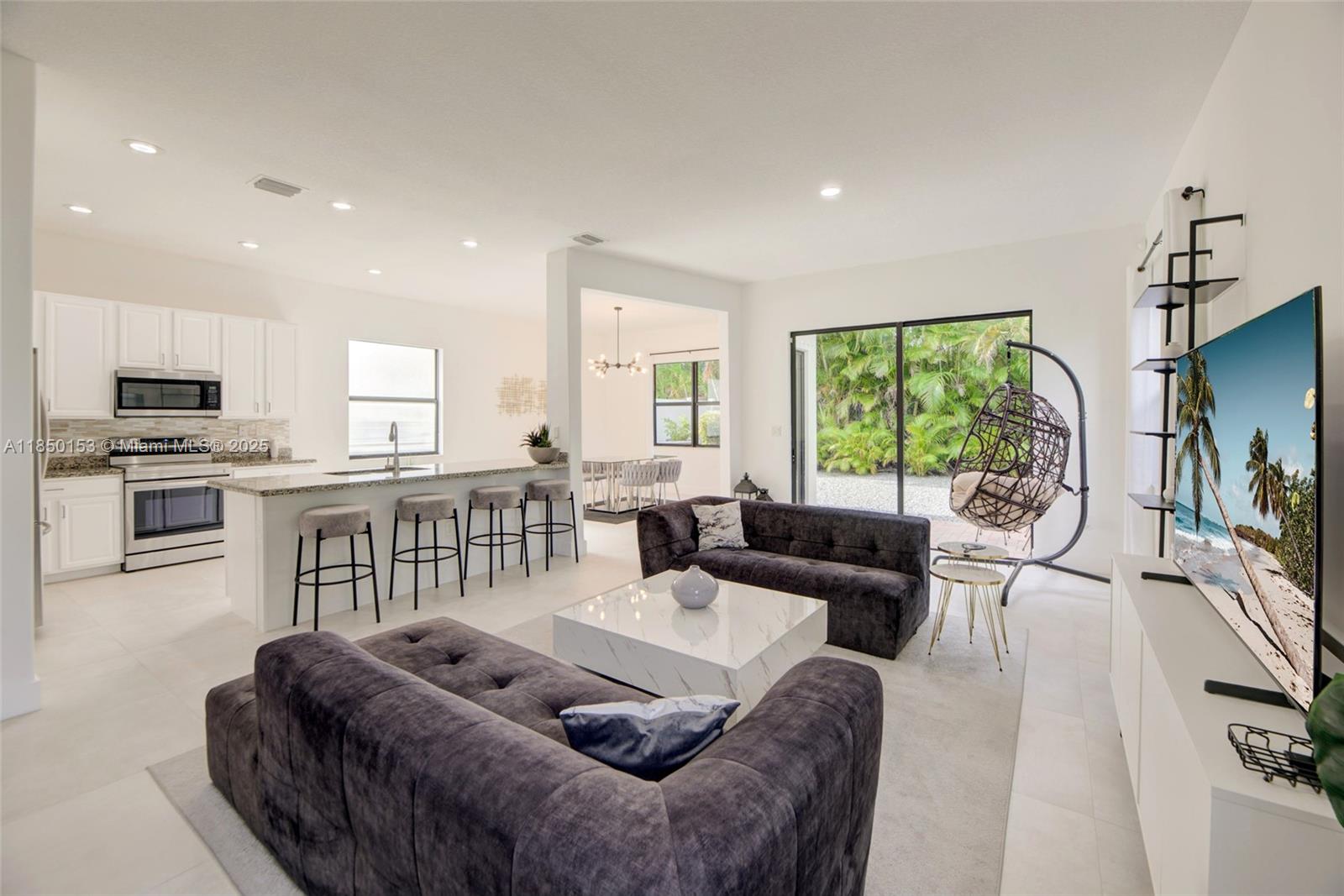 Welcome to this bright and spacious 3-bedroom, 2.5-bathroom house located in a gated community. The house offers an open-concept layout with high ceilings and an abundance of natural light. The first floor features an open kitchen with stainless steel appliances and a large island. A formal dining area opens to the living room. All three bedrooms are located on the second floor, including a spacious primary suite. The washer and dryer are also conveniently located upstairs. Step outside to a private backyard, ideal for outdoor relaxation and a large green space next to the house. Easy access to highway, shopping centers, and dining options.