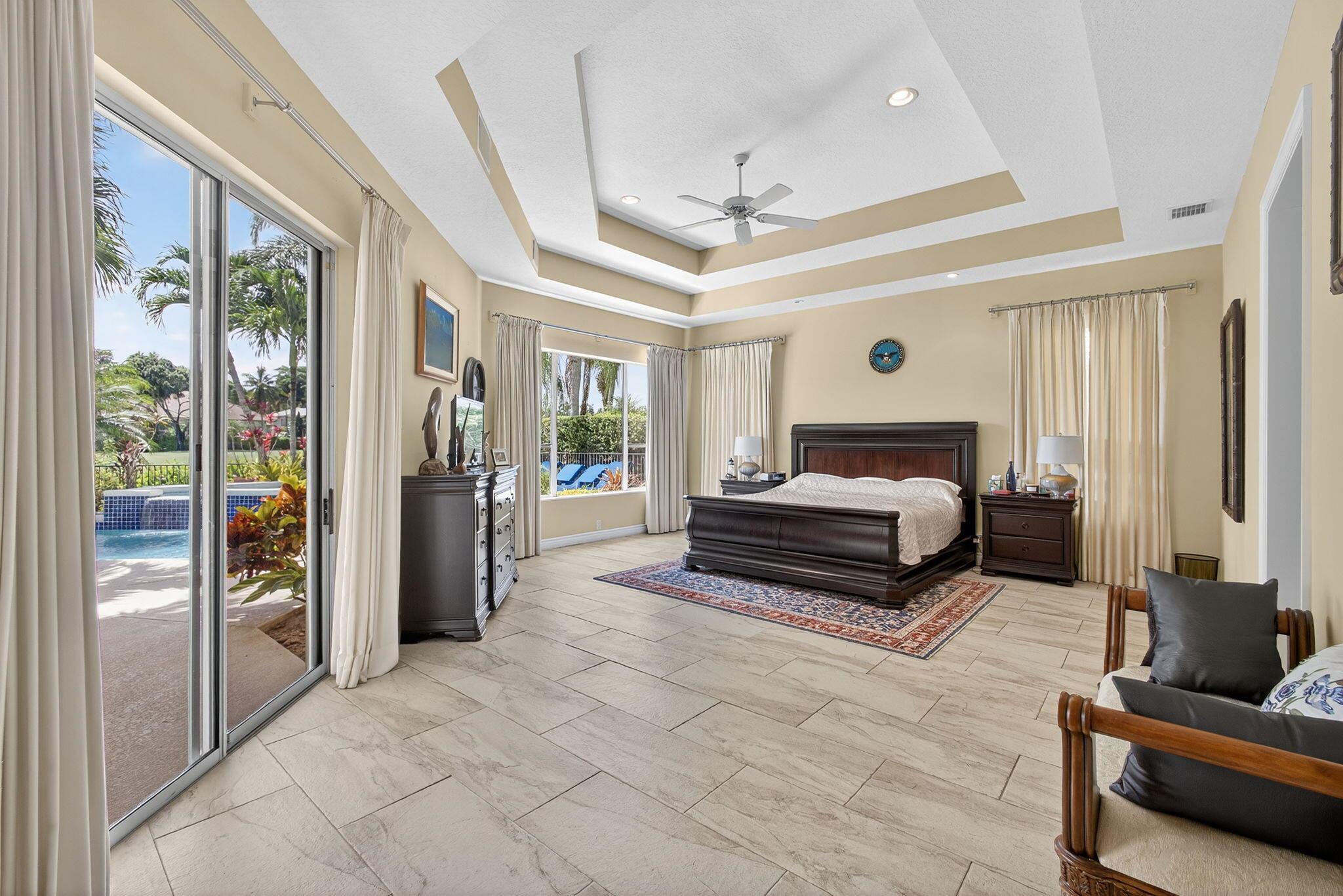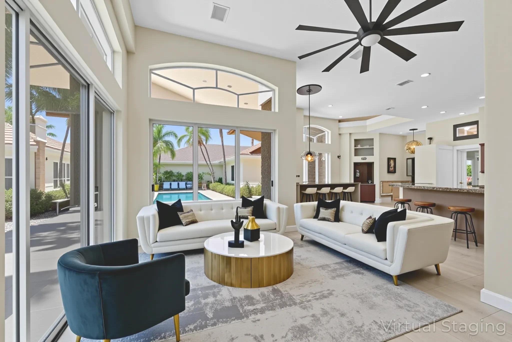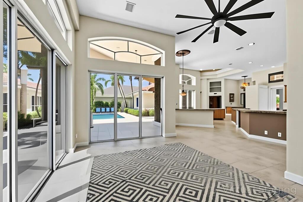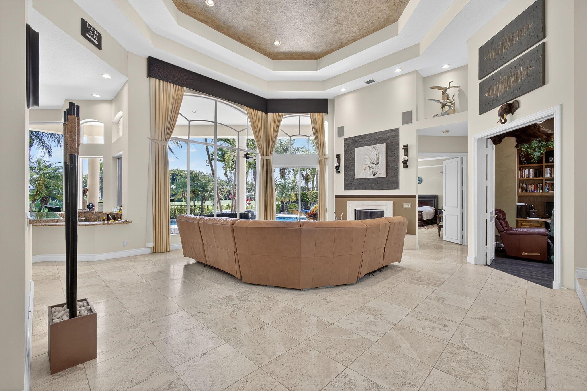 Check out the NEW virtually staged pictures of each room! The possibilities are endless! This estate property is situated on a 1/3rd acre lot overlooking the 4th fairway of the Legend golf course. The circular driveway leads you to a stately entrance with double wood paneled glass doors. Upon entering this super bright custom home, the Saturnia marble floors flow throughout the living areas. Tons of natural light due to the abundance of windows, creates a very open and airy feeling. Split floorplan places the primary bedroom and office (with updated flooring and functional built-in) just off the living room (with gas fireplace), and the 3 guest bedrooms (all with private baths) on the south end of the house. A true chef's kitchen with tons of counter space, lots of cabinets... (MORE)...