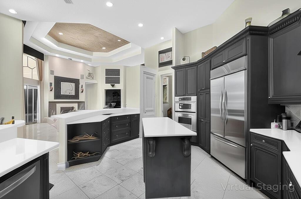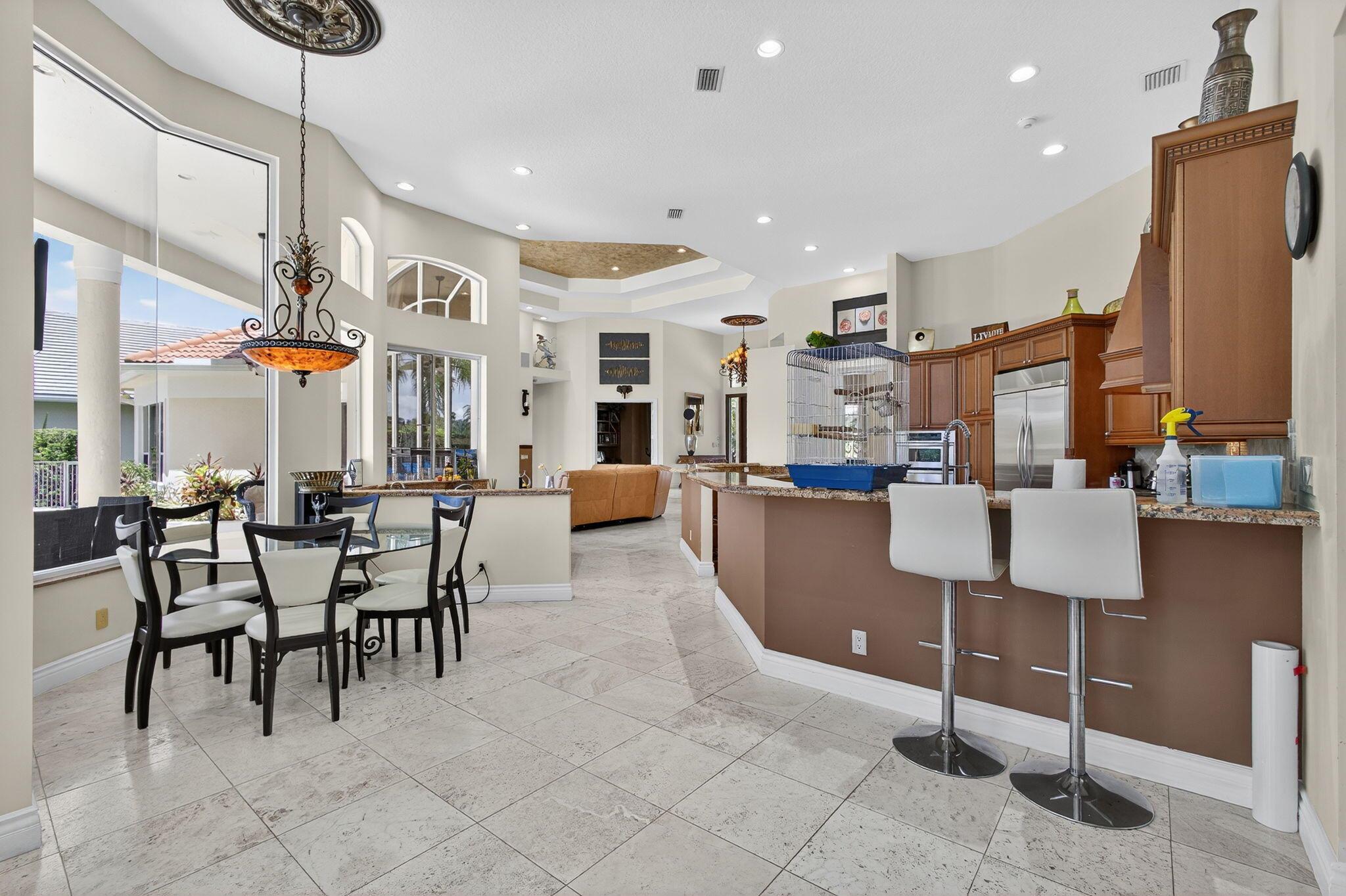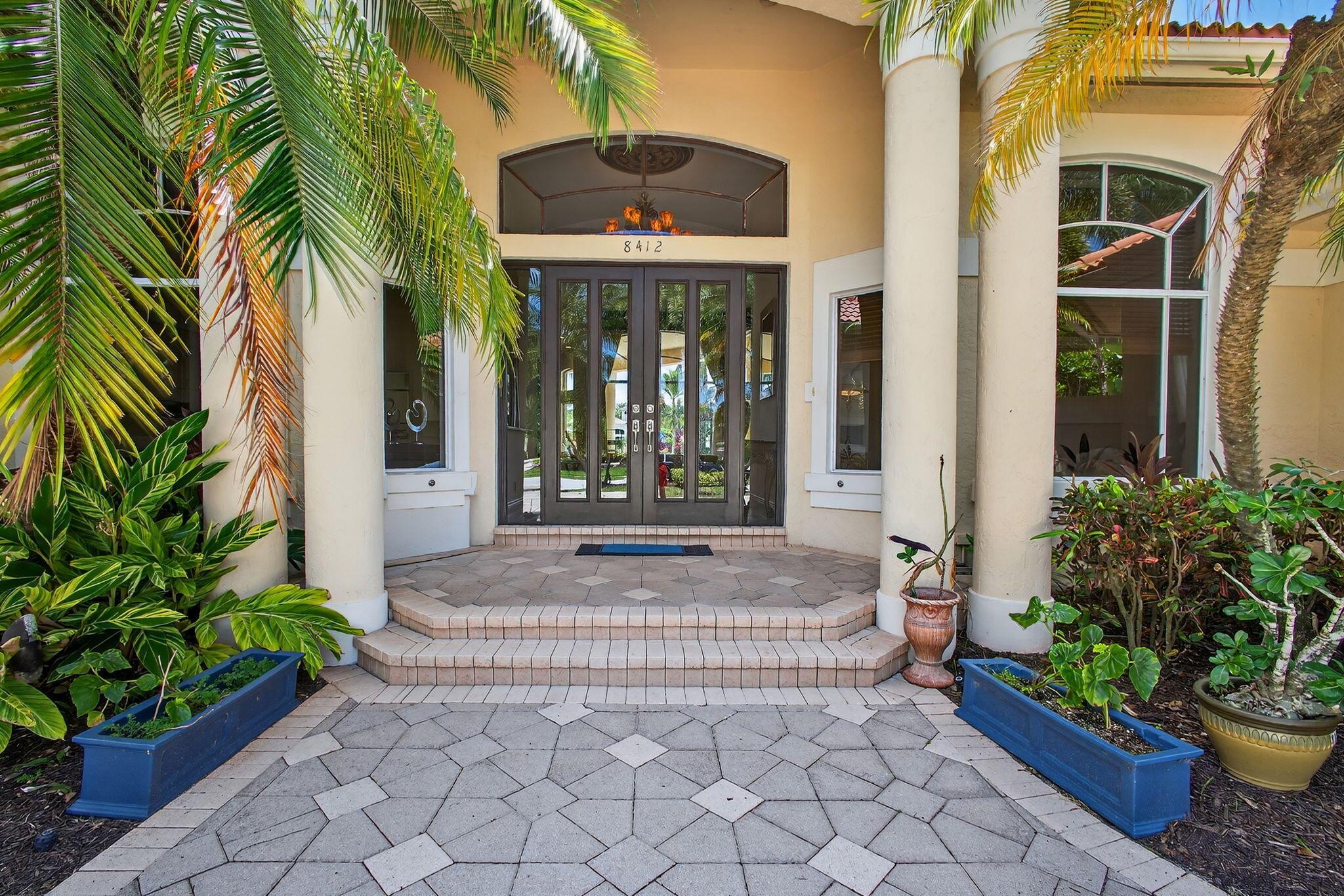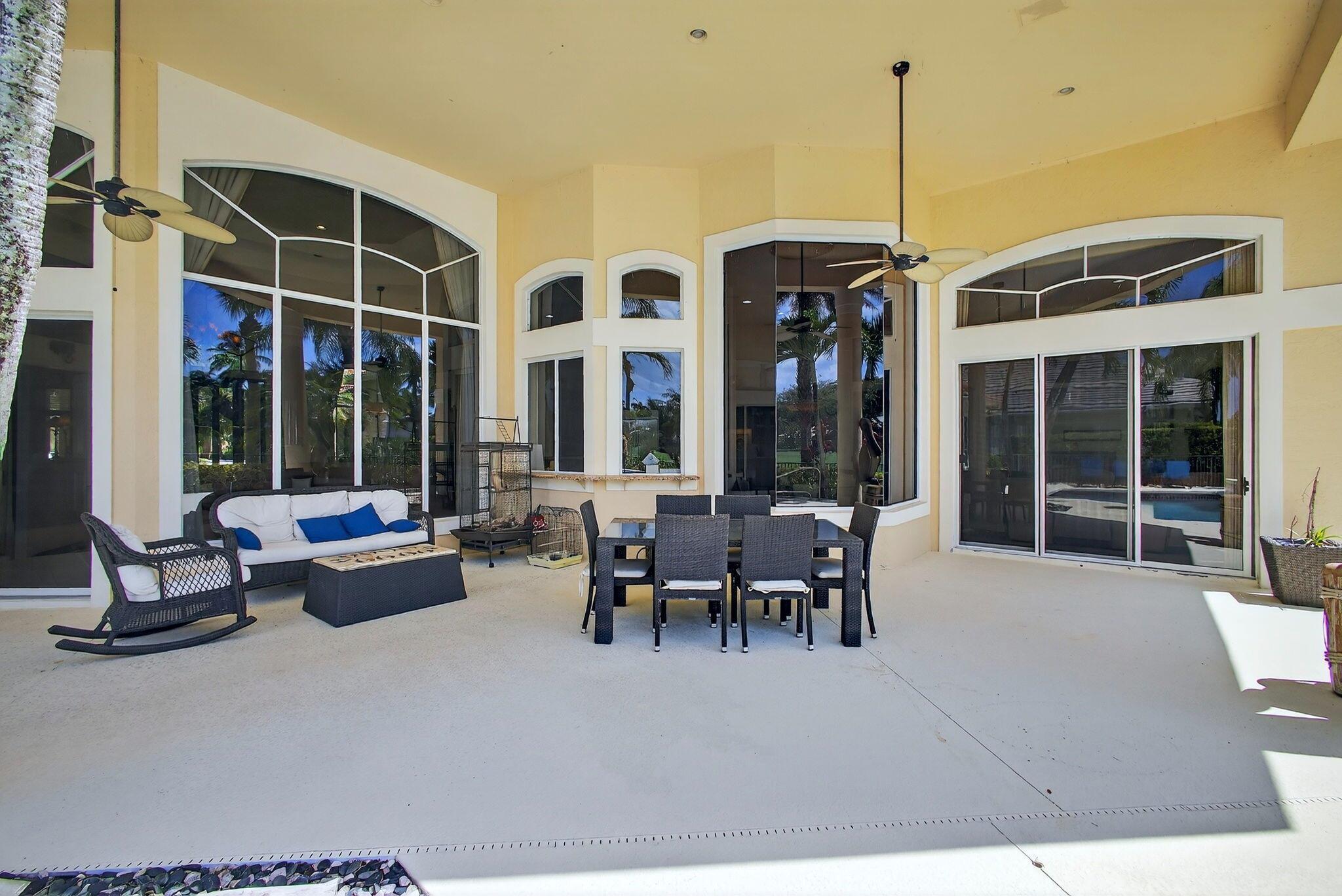 Check out the NEW virtually staged pictures of each room! The possibilities are endless! This estate property is situated on a 1/3rd acre lot overlooking the 4th fairway of the Legend golf course. The circular driveway leads you to a stately entrance with double wood paneled glass doors. Upon entering this super bright custom home, the Saturnia marble floors flow throughout the living areas. Tons of natural light due to the abundance of windows, creates a very open and airy feeling. Split floorplan places the primary bedroom and office (with updated flooring and functional built-in) just off the living room (with gas fireplace), and the 3 guest bedrooms (all with private baths) on the south end of the house. A true chef's kitchen with tons of counter space, lots of cabinets... (MORE)...
