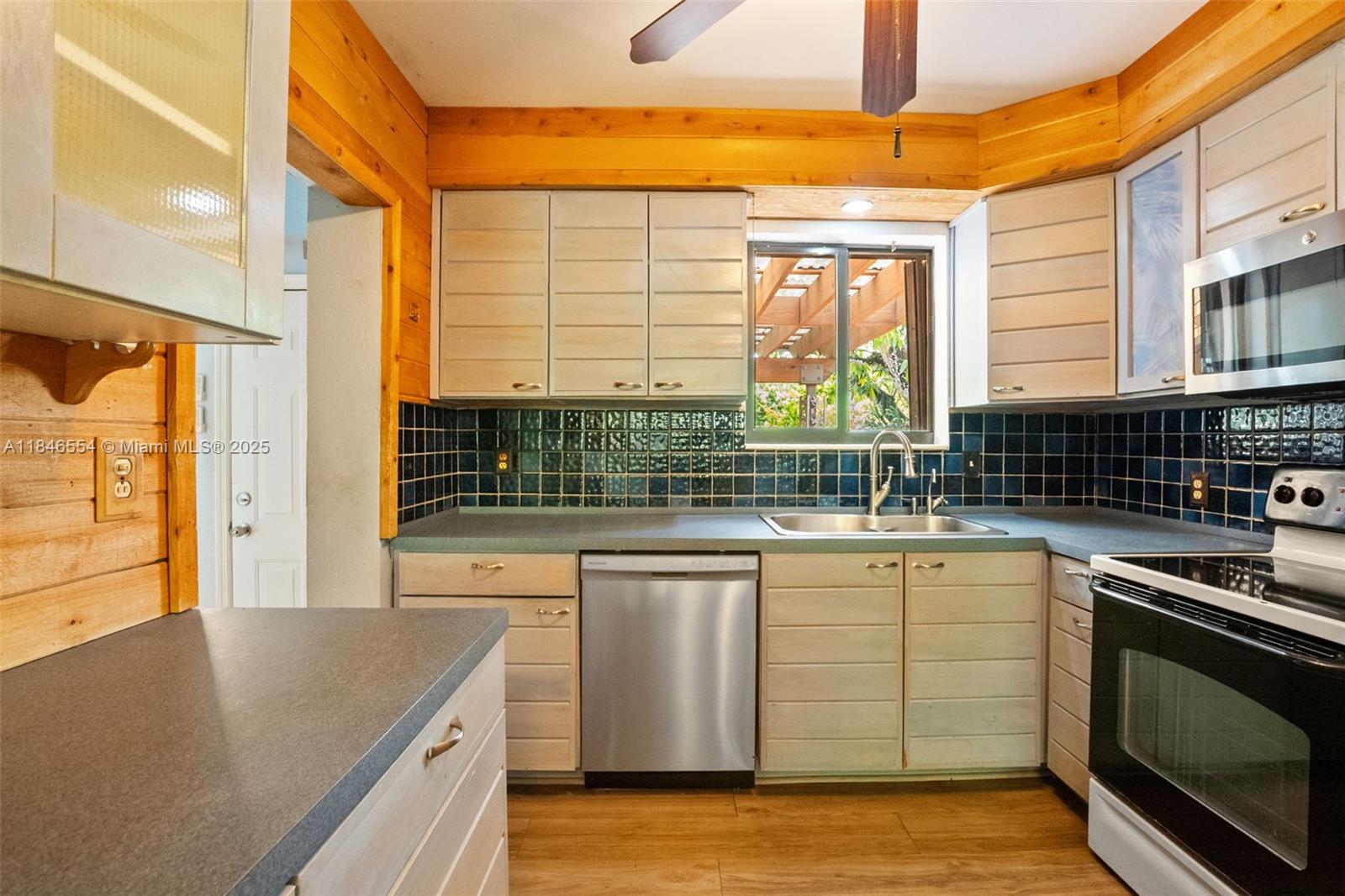 Welcome to your perfect starter home nestled on a serene, oak-lined street! This well-maintained 3-bedroom, 2-bath residence offers both comfort and peace of mind. Enjoy a spacious backyard ideal for gatherings or gardening, complete with a terrace and mature fruit trees for a touch of nature right at home. The property features a durable metal roof, impact windows, and added security with accordion shutters—bringing peace of mind year-round. Whether you're starting out or looking to downsize, this home blends function, beauty, and safety in a sought-after neighborhood. Don't miss this opportunity!