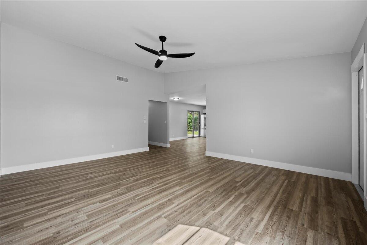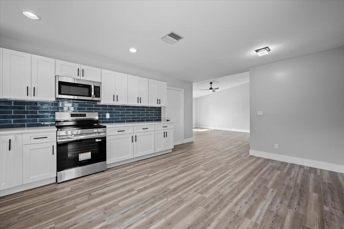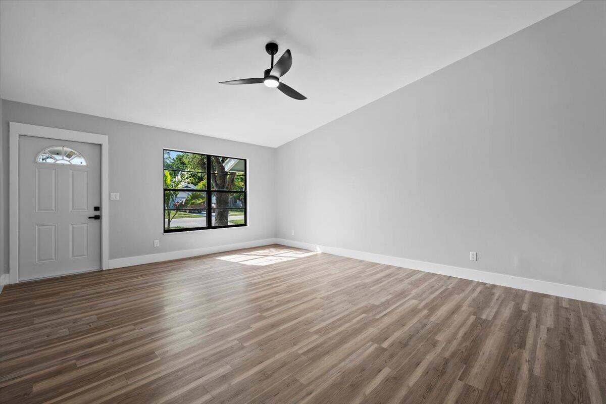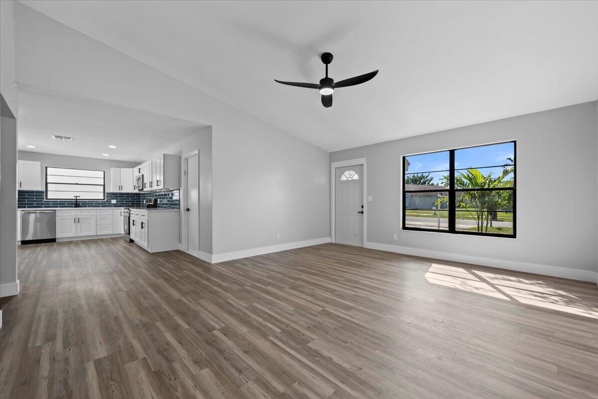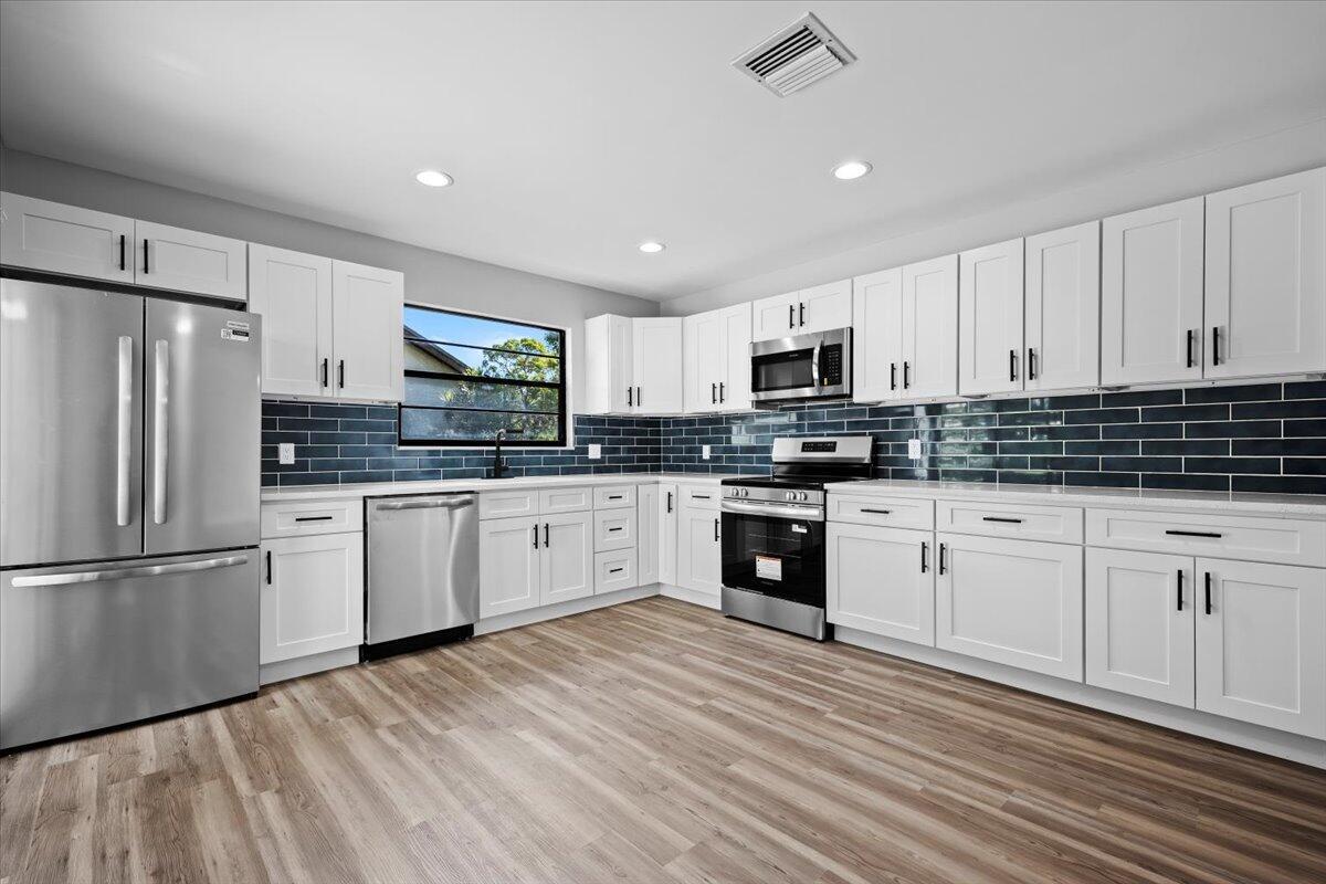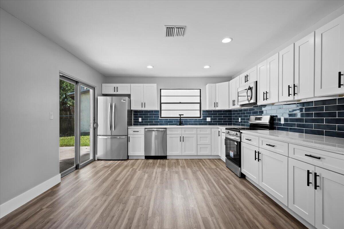 Welcome to this beautifully updated 3-bedroom, 2-bath home with a 2-car garage, ideally located in West Palm Beach. Step inside to discover a bright and Open layout featuring luxury waterproof plank flooring throughout and a stylish new kitchen with stainless steel appliances, quartz countertops, and a sleek tile backsplash. Both bathrooms have been fully renovated with designer finishes, including custom tile work that adds a modern and upscale touch. This move-in ready home combines comfort and style in one of Palm Beach County's most desirable areas--don't miss your chance to make it yours!