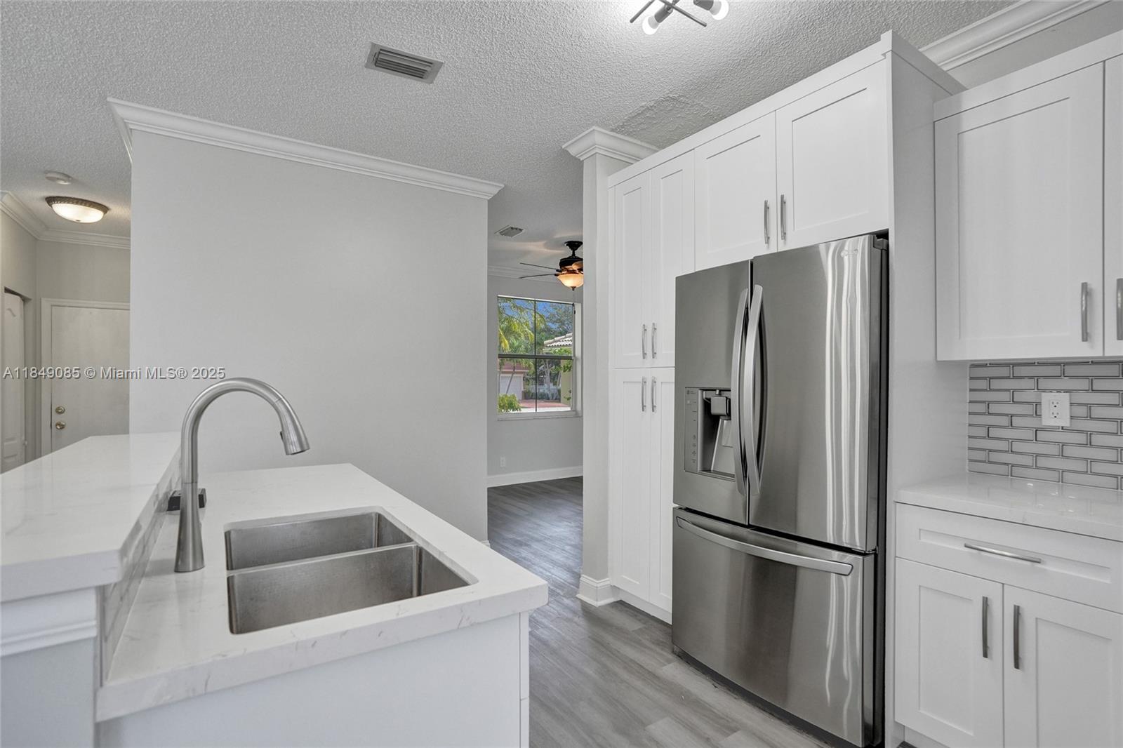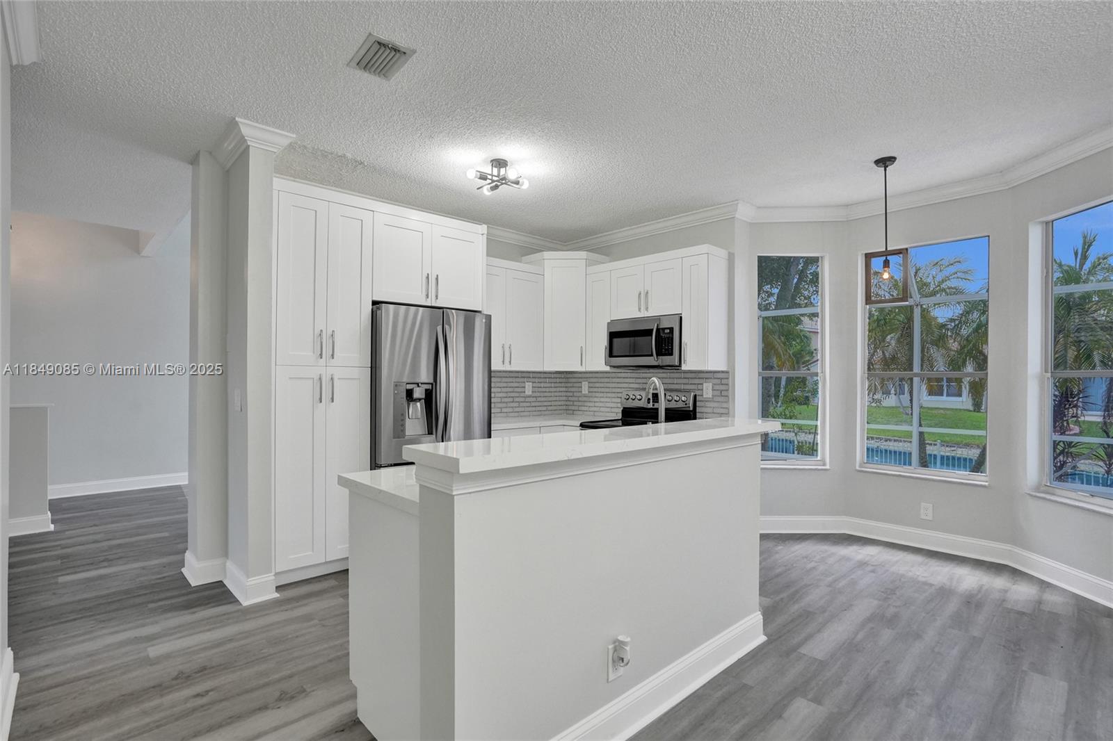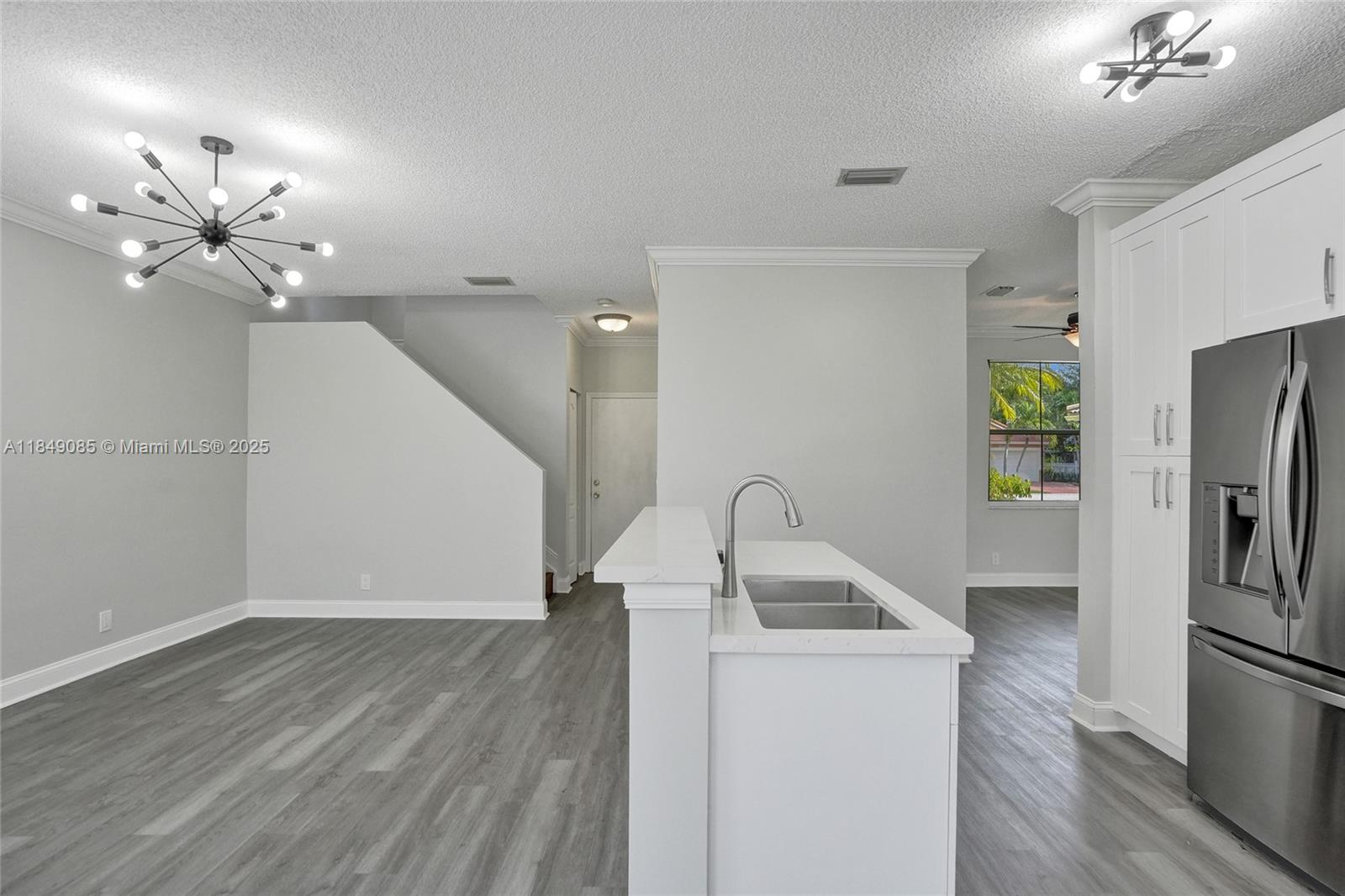 Move right in! This beautifully renovated home offers modern living in the desirable gated community of Eagle Creek in Wyndham Lakes. Downstairs boasts a BRAND NEW kitchen with new cabinets, lighting, and flooring, a living room with vaulted ceiling, family room, dining room, convenient half bath, and laundry room. Stay cool with a NEW A/C. Enjoy the outdoors on your enormous 40-foot screened patio, overlooking a serene pond and shaded, fenced-in yard. Upstairs features laminate wood flooring throughout, spacious loft easily converted to a 4th bedroom, master suite with ample space for a king-sized bed and furnishings, and an extra room perfect for an office or nursery. Guest rooms share an updated bathroom with a luxurious waterfall shower. Seller will offer a CREDIT FOR ROOF REPLACEMENT