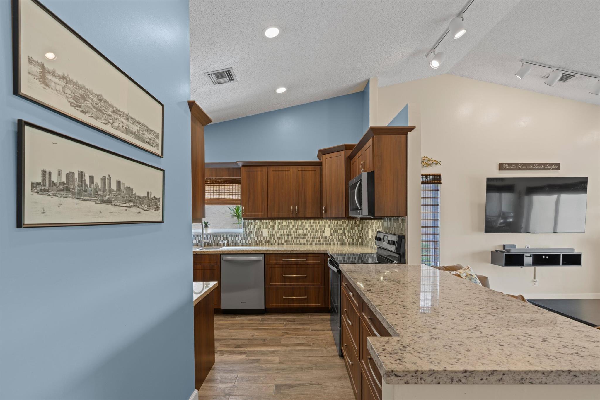 Welcome to this charming 3 bed, 2 bath single-family home in the prestigious gated community of Brentwood Estates in Boca Raton! This beautifully updated residence features vaulted ceilings, an open-concept layout, and large windows that provide natural light. Enjoy serene lake views from the spacious screened patio, perfect for relaxing or entertaining. The modern kitchen boasts granite countertops, stainless steel appliances. Located in the heart of Boca Raton, this home is zoned for A-rated schools and offers access to resort-style amenities, including two heated pools, tennis courts, a fitness center, and a clubhouse. Pet-friendly community with lush landscaping and a prime location off Lyons Road, close to shopping, dining, and top-rated schools.