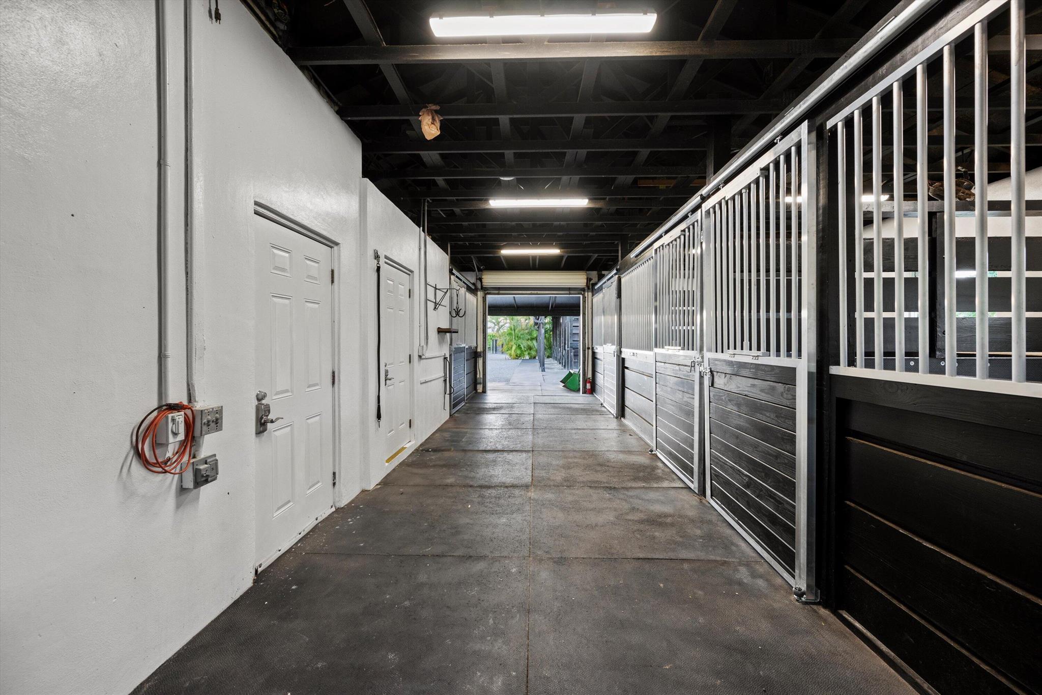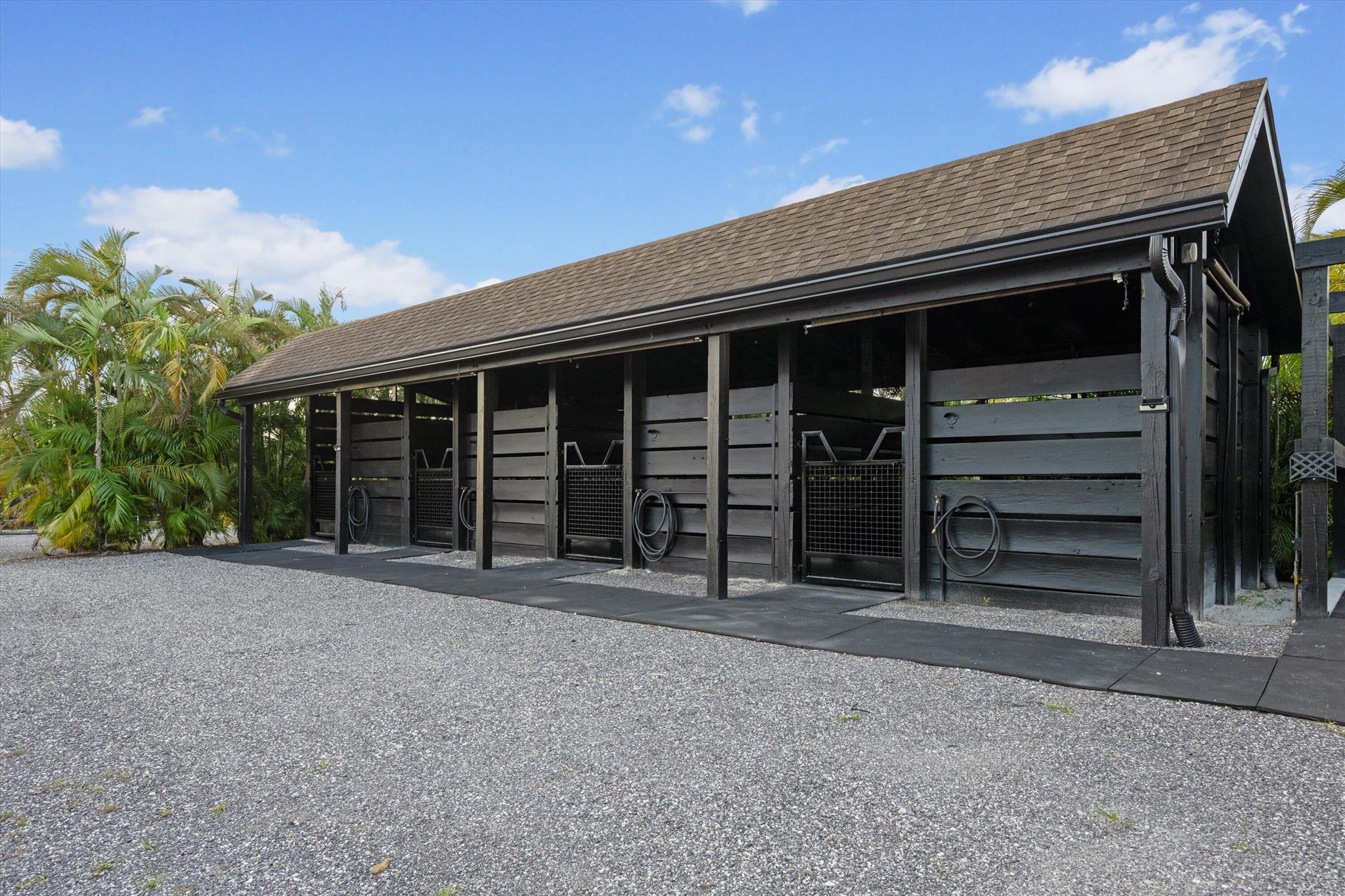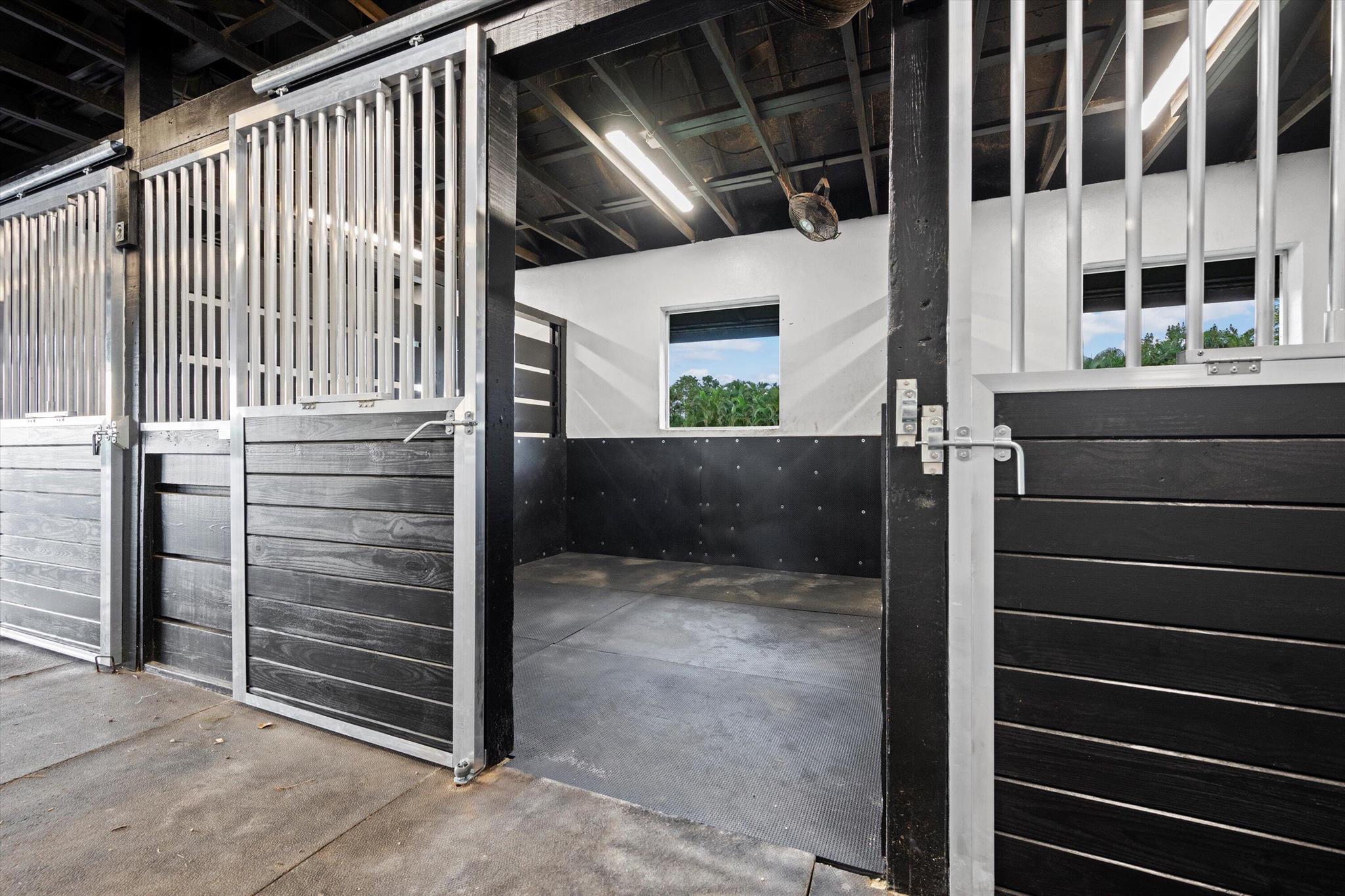 Exceptional Farm Property for sale, offered turn-key! Discover this remarkable 2.1-acre farm, now available for purchase in the prestigious Saddle Trail Park neighborhood. This property offers 8 updated stalls with new stall fronts, 5 high and dry grassy paddocks recently filled and new fencing. The newly installed arena and round pen features a premium fiber footing mix and a new irrigation system. The barn is fully equipped with modern amenities, including new stall mats, an A/C tack room, feed room, separate laundry facilities, and bathroom. There is a spacious, temperature-controlled, two-bay garage for additional storage, large enough for RV storage. The main house has been updated with high-end finishes and new furniture. It features elegant wood-plank tile flooring throughout,