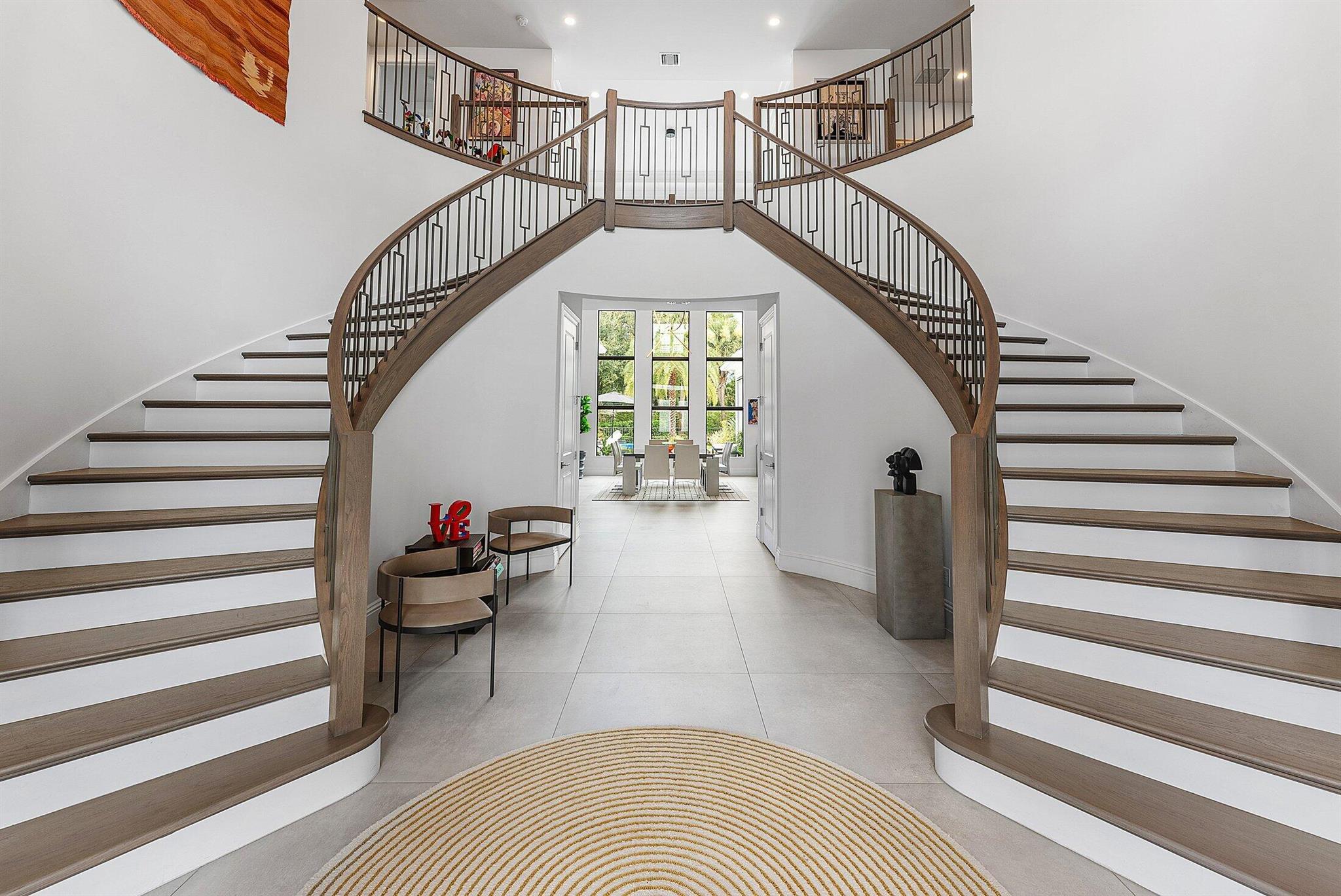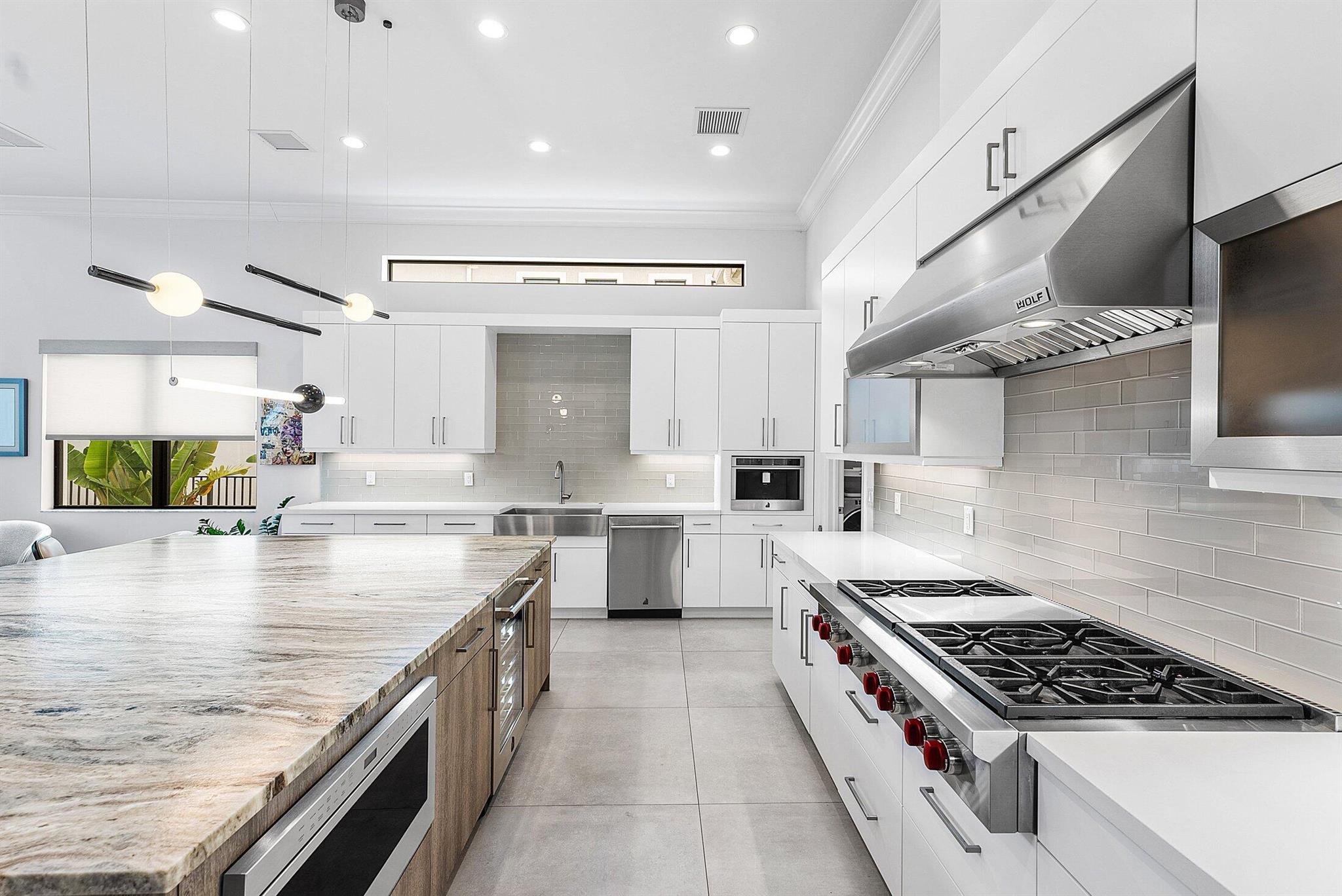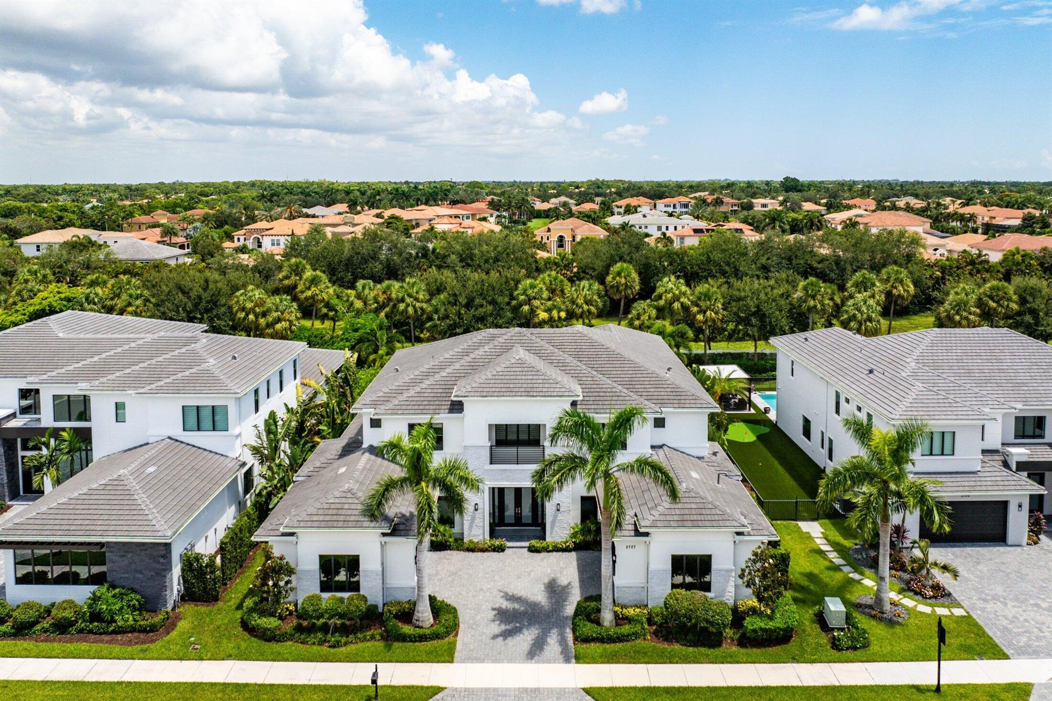 Welcome to 2707 NW 75th Street, a newly built 2022 residence, located in the heart of Boca Raton's exclusive Royal Palm Polo. This stunning home, thoughtfully crafted with high-end finishes and exceptional details, offers the ultimate in luxury living with sophisticated design and well-planned spaces both inside and out. Upon entry, a dramatic double wrought iron staircase sets the stage for the grand interior. Thirty-six-inch porcelain tile floors flow through the main living areas, complemented by custom light fixtures, impact glass, and architectural millwork.The chef's kitchen is a showpiece with leathered quartzite countertops, Wolf appliances, a Sub-Zero refrigerator, built-in coffee machine, pot filler, wine fridge, and a spacious walk-in pantry.The first floor hosts an