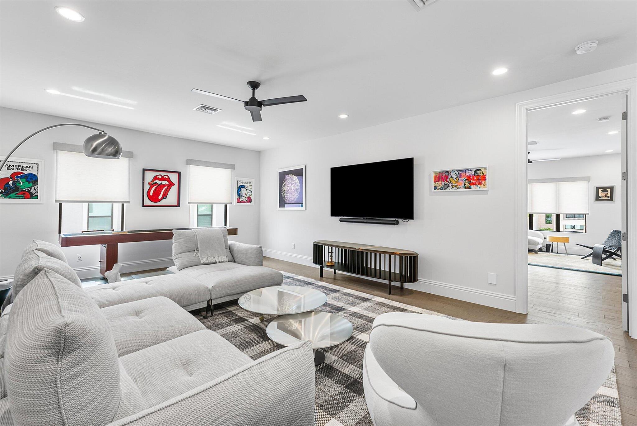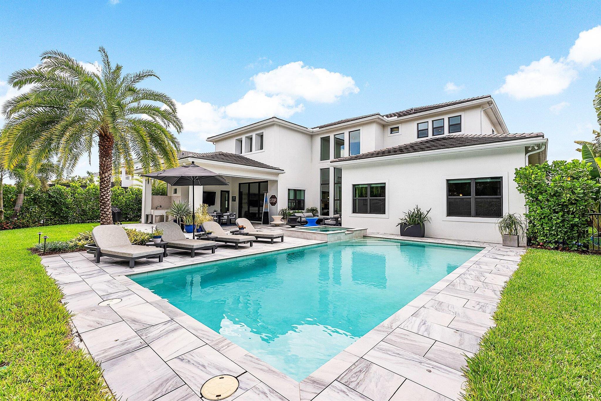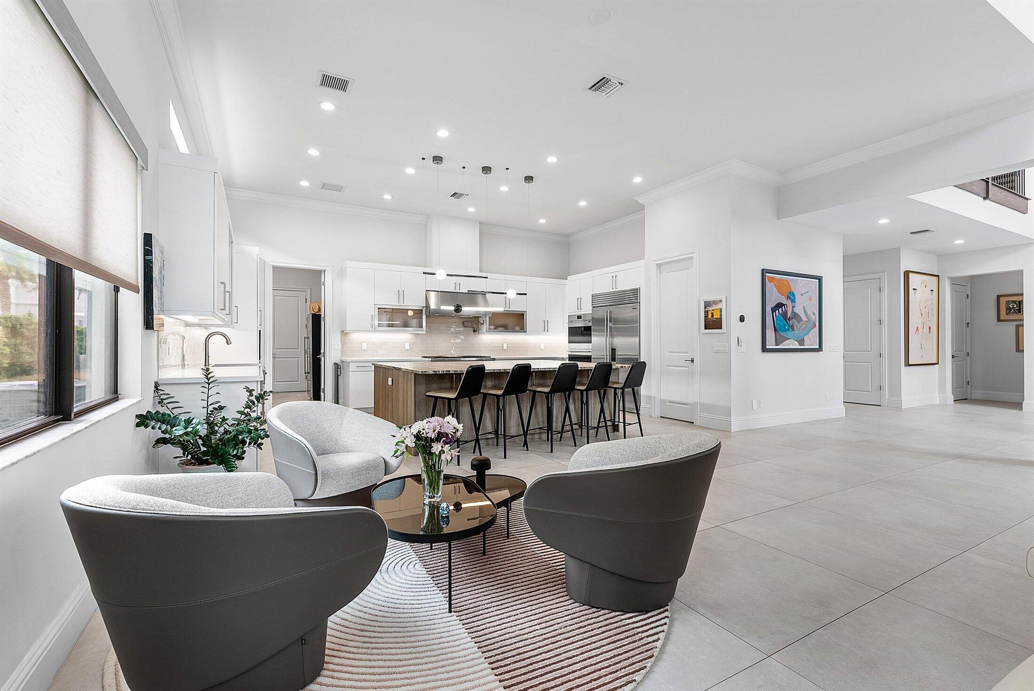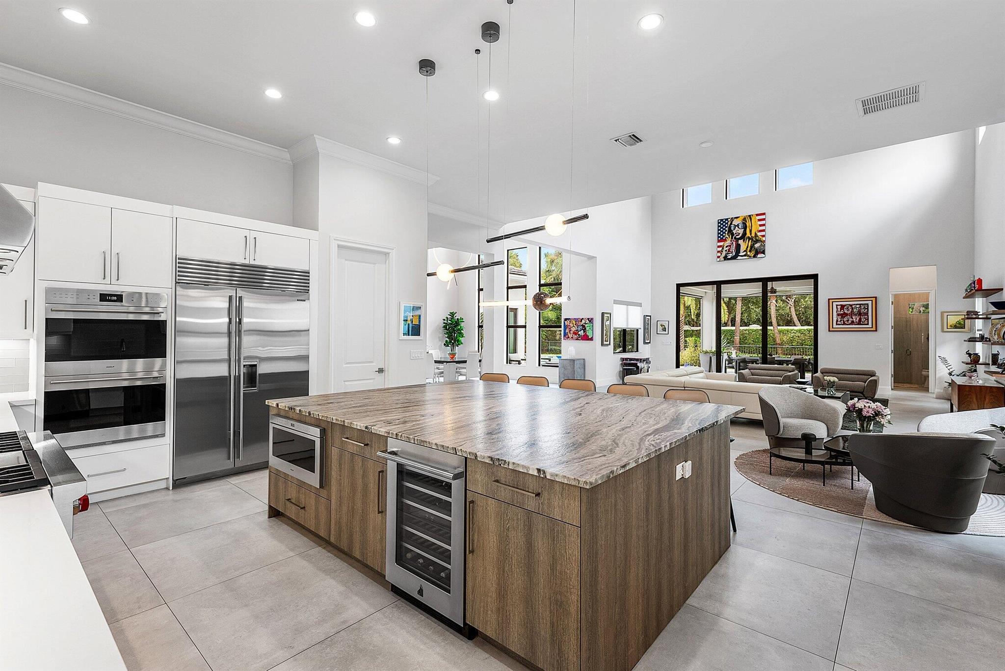 Welcome to 2707 NW 75th Street, a newly built 2022 residence, located in the heart of Boca Raton's exclusive Royal Palm Polo. This stunning home, thoughtfully crafted with high-end finishes and exceptional details, offers the ultimate in luxury living with sophisticated design and well-planned spaces both inside and out. Upon entry, a dramatic double wrought iron staircase sets the stage for the grand interior. Thirty-six-inch porcelain tile floors flow through the main living areas, complemented by custom light fixtures, impact glass, and architectural millwork.The chef's kitchen is a showpiece with leathered quartzite countertops, Wolf appliances, a Sub-Zero refrigerator, built-in coffee machine, pot filler, wine fridge, and a spacious walk-in pantry.The first floor hosts an