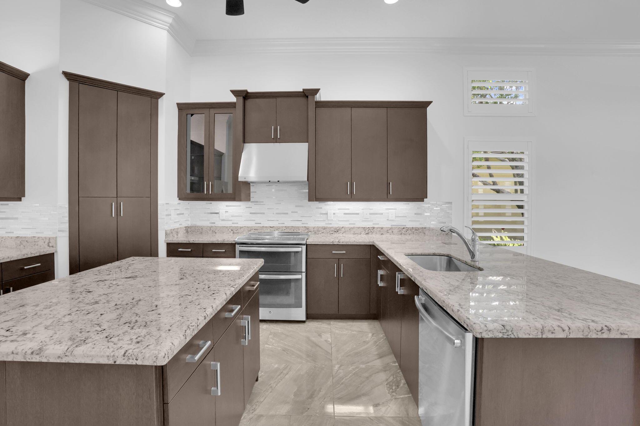 CLICK VIDEO TAB to view narrated video!4 Bedroom, 3 Bath 'Lydia' model with over $100K in Upgrades! Situated on a Builder's Premium Oversized Pie-Shaped Lakefront lot offering a widened driveway, walkway & Extended 2CG with Epoxy flooring! Boasting a Newly Painted Interior, Crown molding, Coffered ceilings, abundance of hi-hat lighting, Italian Tile flooring, Wood flooring in bedrooms, Central vacuum, Custom Plantation Shutters, French doors & Designer light fixtures! The Granite kitchen features stainless steel appliances, custom Espresso cabinetry with under cabinet Vent Hood, and center Island! An open floor plan designed for easy entertaining. The family room is open to the kitchen. Formal living and dining rooms. The master suite features custom built-out walk-in closets, upgraded