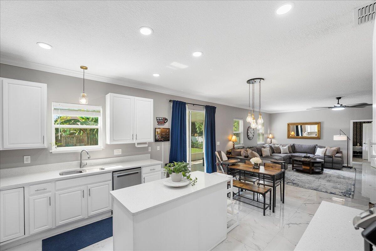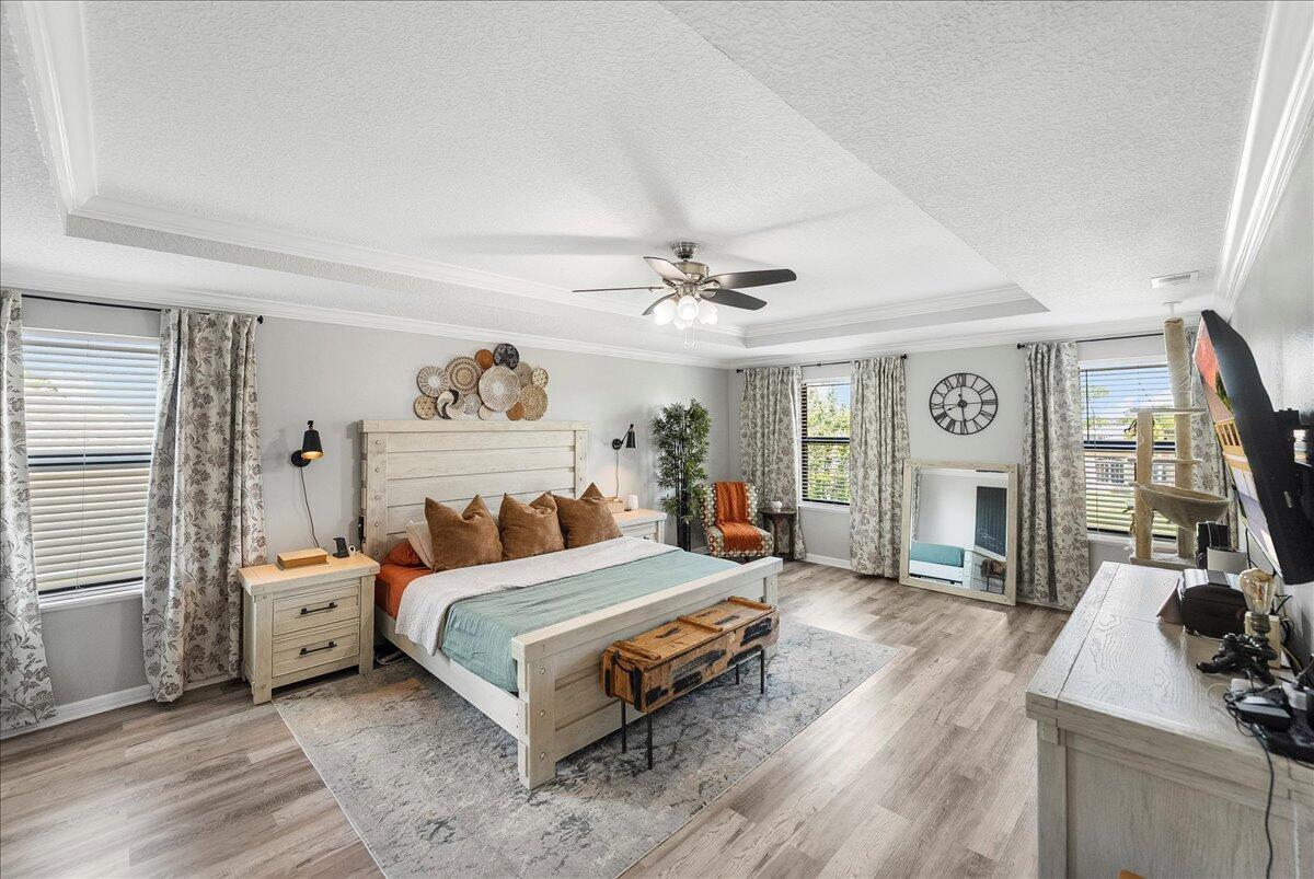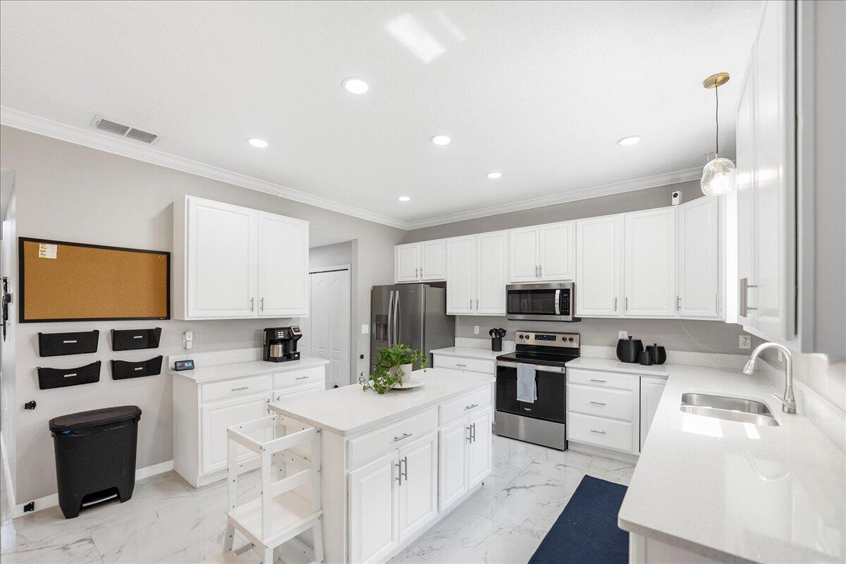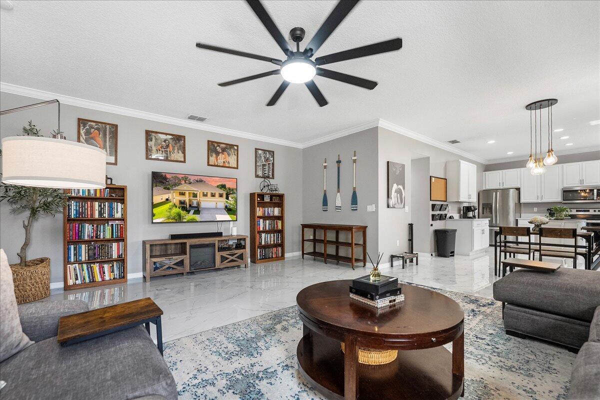 Step inside this stunning 6BR/4.5BA CBS home with 4,064 sq ft of light-filled living space! Imagine cooking in a modern kitchen with quartz counters and stainless appliances, relaxing in the luxurious primary suite with Roman tub and dual closets, or enjoying family time in the airy upstairs loft/bonus room. Crown molding, volume ceilings, and impact windows add elegance throughout. Step outside to a covered patio, fenced yard, and 3-car garage. Solar panels PAID OFF at closing! Convenient to schools, shopping, dining, and parks--your dream home awaits!