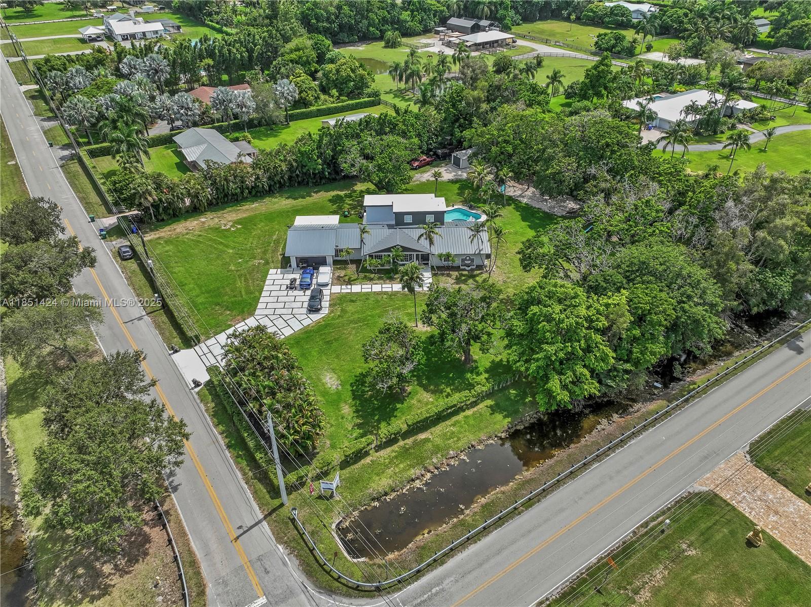 Sunshine Ranches Corner Home Estate, Situated on over 1.3 acres of manicured grounds. Experience Privacy and Luxury, Perfect for those seeking a Prime Location.Open Concept with Natural Light, Chef's Kitchen with high-end appliances, Spa-Style Bathroom and ample walking closet. New Metal Roof 2024. Resort-style Pool and Patio for indoor-outdoor living. Room for Toys, Boats, RVs and Horses. Southwest Ranches is ideal for those seeking a peaceful and private setting. Click on Virtual Tour link.