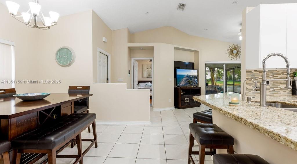 Updated, lakefront oasis in the highly sought-after Chapel Trail! This pristine one-story home offers serene water views from the moment you step inside and from the primary suite. The high vaulted ceiling and open chef's kitchen, dining options and living room flow into your screened-in patio providing a tranquil sanctuary to enjoy morning coffee or breathtaking sunsets over the lake. The light-filled layout is perfect for both relaxing and entertaining, creating the ultimate indoor-outdoor Florida lifestyle. Don't miss the chance to make this tranquil waterfront retreat your forever home. A-rated schools, amenities, and a low HOA. Roof 2016, AC 2010, 360 view cameras, accordian shutters, tankless water-heater 2016, water-filtration system.