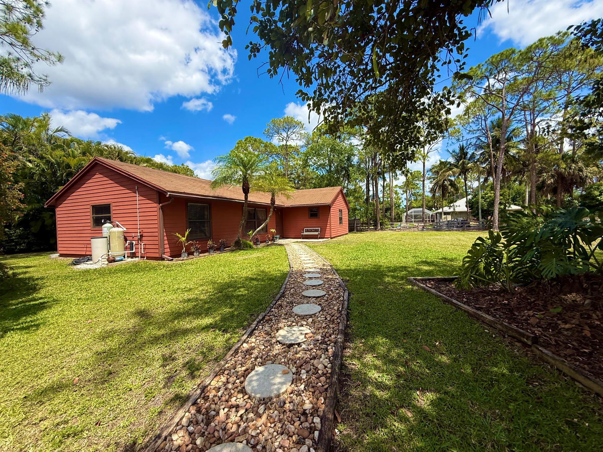 EXTREME PRIVACY- NO VIEW OF NEIGHBORS *** CALLING ALL LANDSCAPERS, BUSINESS OWNERS, CAR COLLECTORS, ***2 FOR THE PRICE OF 1 ***. SEIZE THIS RARE CHANCE TO OWN IN LOXAHATCHEE'S PEACEFUL COMMUNITY - AN OVERSIZED 1.15 ACRE FULLY CLEARED AND ZONED (AR) LOT WITH 3 BEDROOM 2 BATHROOM AND 24X30 DETACHED CBS BUILDING AND WITH 2161 TOTAL SQ FT OF ONE STORY LIVING **. WITH NO HOA AND RURAL ZONING (AR) THIS PROPERTY INVITES YOU TO DREAM BIG: POOL, GARDEN, WORKSHOP, BARN, BRING THE RV, BOAT, TRAILER, HORSES OR SIMPLY ENJOY THE OPEN SPACE **. INSIDE THE LAYOUT IS SIMPLE AND FUNCTIONAL - WHILE UPDATES WOULD ADD VALUE, THE ESTATE HAS STRONG BONES AND GREAT POTENTIAL **. OUTSIDE, THE EXPANSIVE FENCED YARD FEELS LIKE A PRIVATE RETREAT, OFFERING TRUE FLORIDA COUNTRY LIVING WITH SPACE TO ROAM,