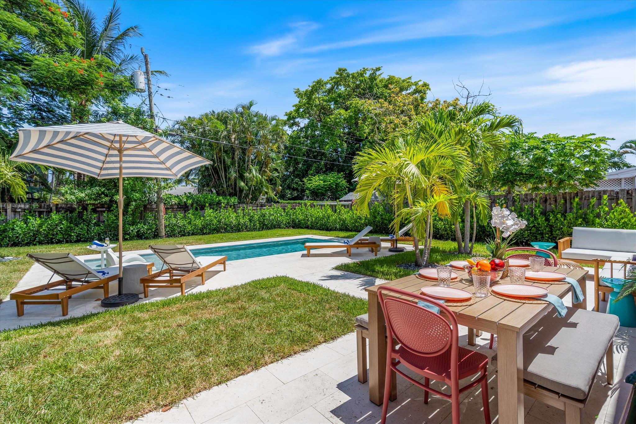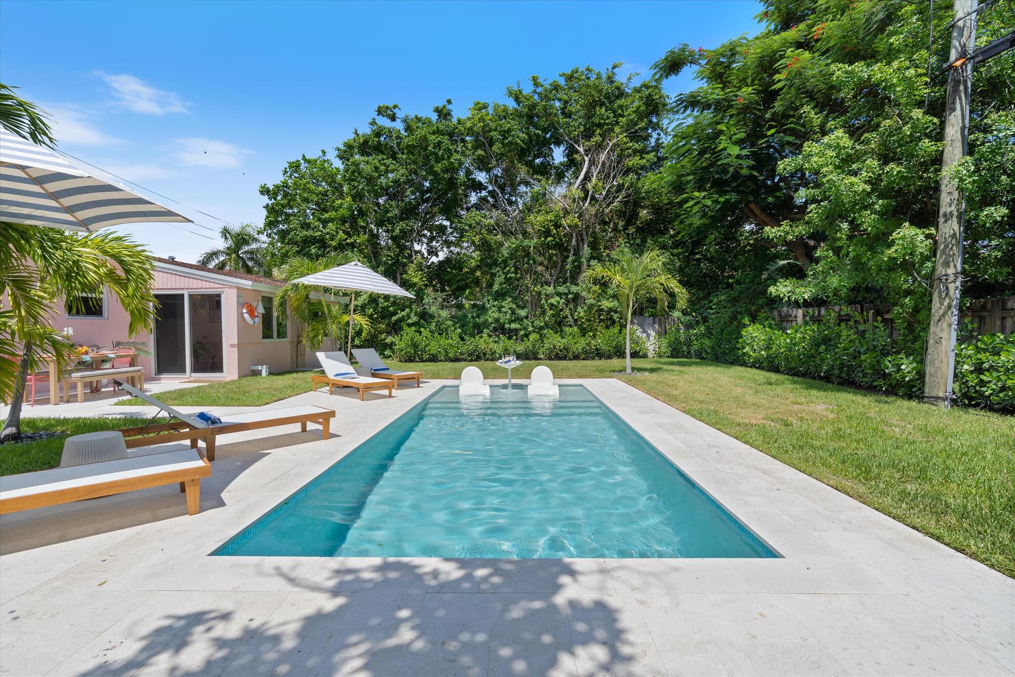 Welcome to this impeccably renovated 3-bedroom, 2-bathroom home located in the coveted SoSo neighborhood of West Palm Beach. Perfectly positioned near world-class dining, shopping, entertainment, and just a short drive from Palm Beach International Airport (PBI), this home offers both convenience and charm. Completely reimagined in 2025, it merges classic appeal with modern luxury, creating an ideal space for contemporary Florida living. The home underwent a remarkable transformation, including the conversion of a former garage into a spacious primary suite. Every detail has been thoughtfully considered to ensure the perfect balance of fine craftsmanship, functionality, and comfort. The open-concept floor plan is complemented by a brand-new pool, making it an ideal setting for