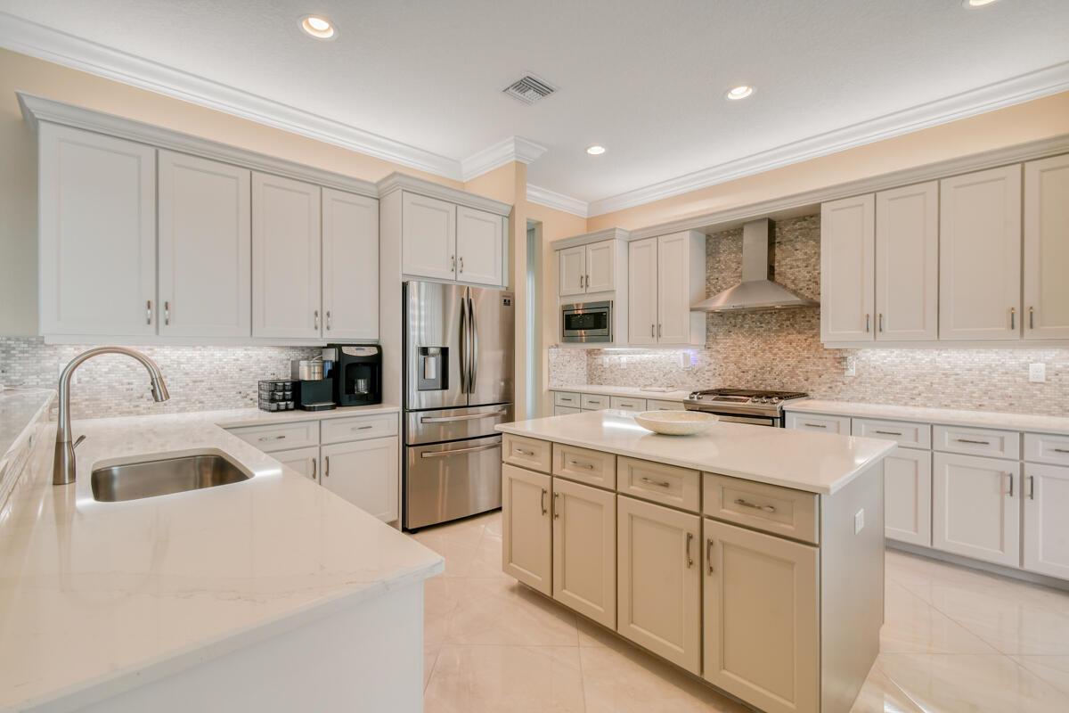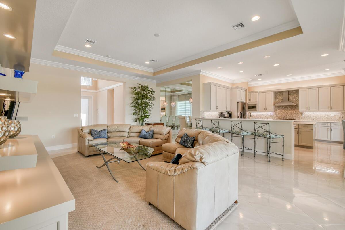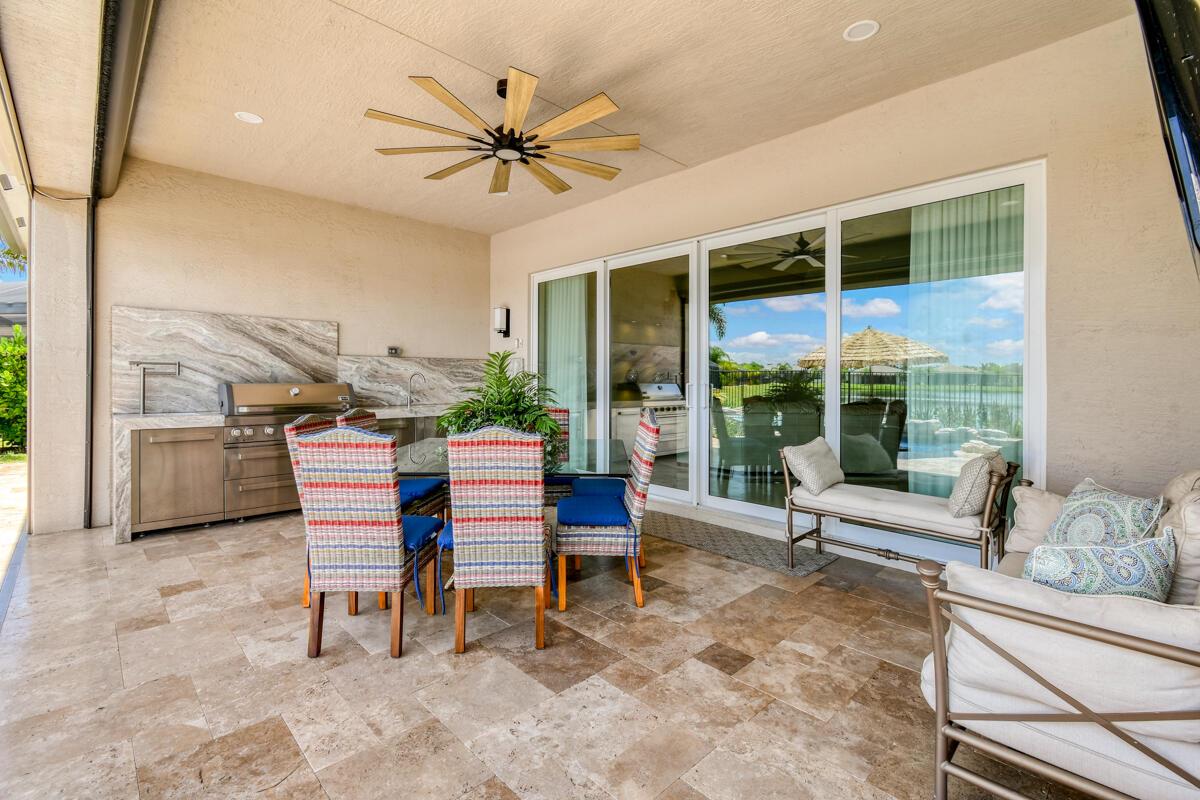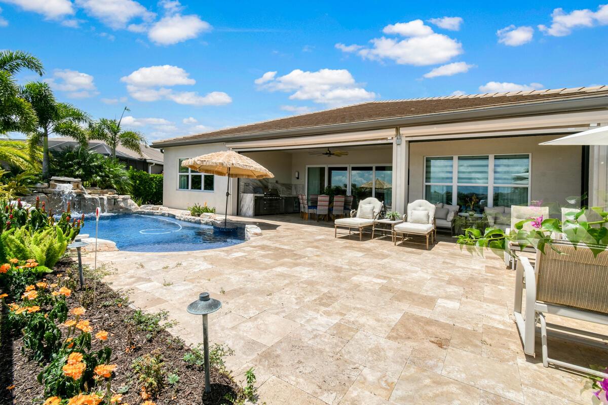Riverland's ONLY long lake southern view pool home in the Vintage and Crown collections for sale delivering breathtaking sunrise-to-sunset vistas and sits on a premium pie-shaped lot with extra yard space on both sides with lush exquisite landscaping. This home has countless upgrades Your private backyard retreat features a heated and chilled saltwater pool and spa with a natural boulder rock waterfall, in-water umbrella table with seating, sealed travertine decking, extended lanai, quartzite outdoor kitchen, built-in stainless grill, 2 electric outdoor retractable screens (1 hurricane-rated), and a cozy firepit. All surrounded by picture-perfect lake views. Inside is a chef's kitchen with level 5 cabinetry, smart-home that controls for pool, screens, and window